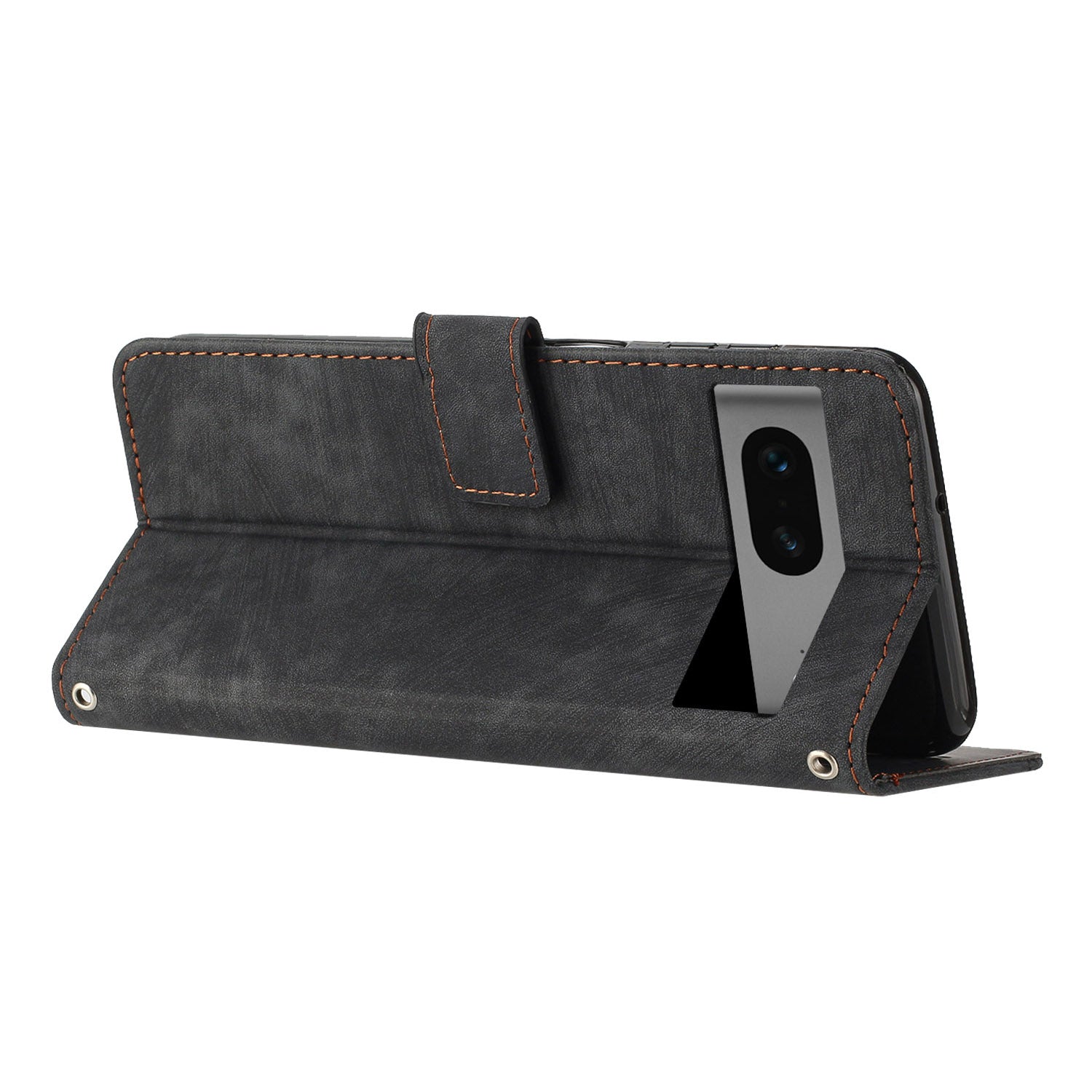 For Google Pixel 7 5G Lines Imprinted Shockproof Phone Case PU Leather Wallet Phone Cover with Stand