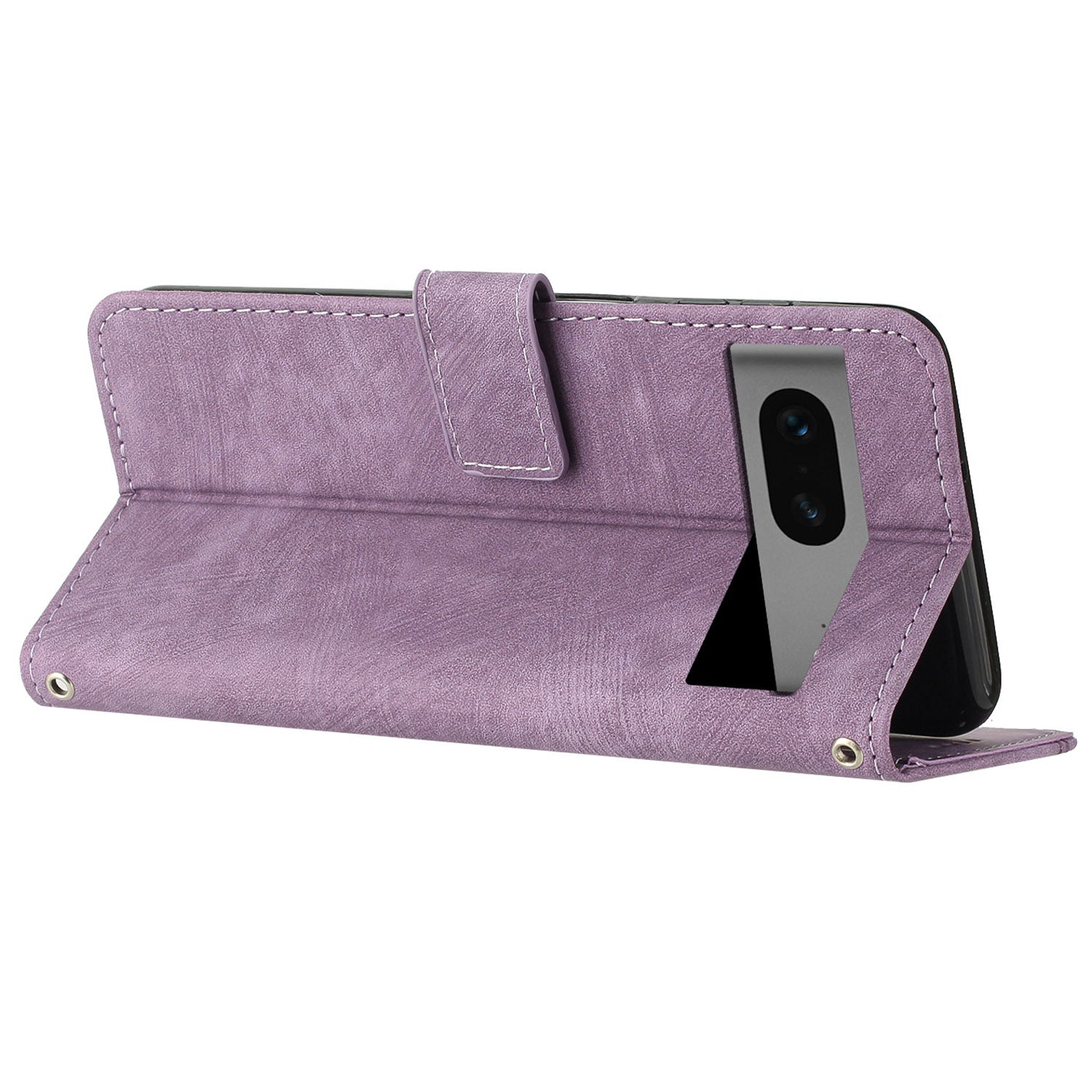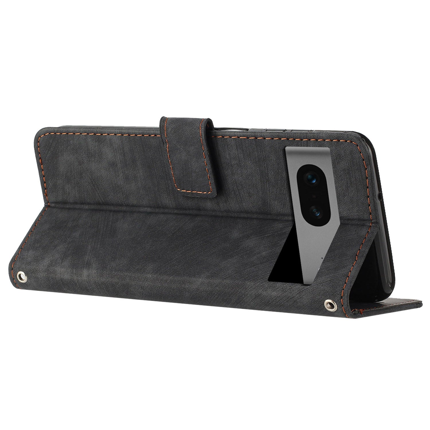 For Google Pixel 7 5G PU Leather Phone Case Lines Imprinted Stand Wallet Cover with 2 Straps
