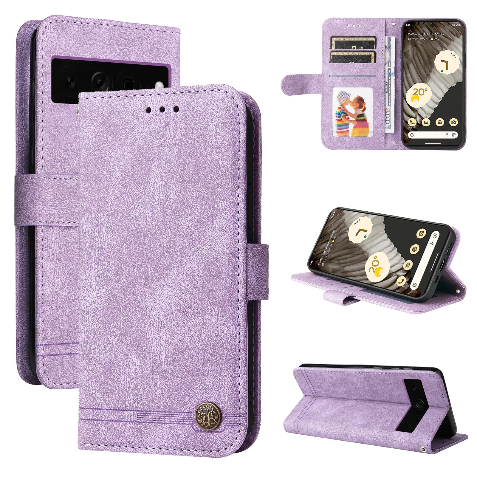 For Google Pixel 7 Pro 5G Dustproof Wallet Phone Case Imprinted Lines Stand Skin-touch PU Leather+TPU Cover