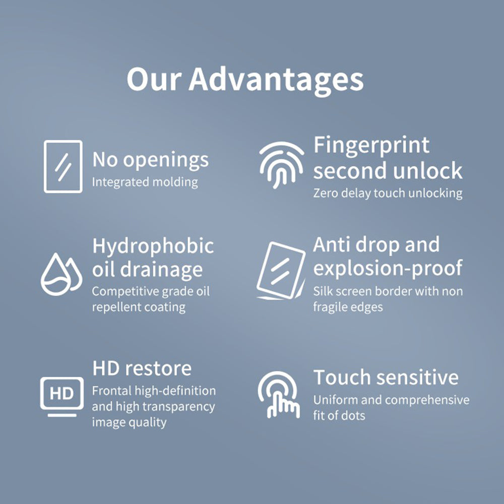 This screen protector is made by premium tempered glass with strong hardness, scratch-resistant and anti-explosion. It can resist sharp objects and absorb impact force from accidental fall. Super high light transmittance delivers HD ultra-clear display.