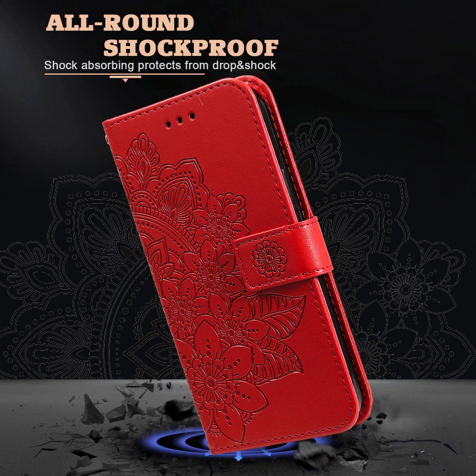 - Premium PU leather+TPU material, with a distinctive flower pattern imprinting, stylish and durable