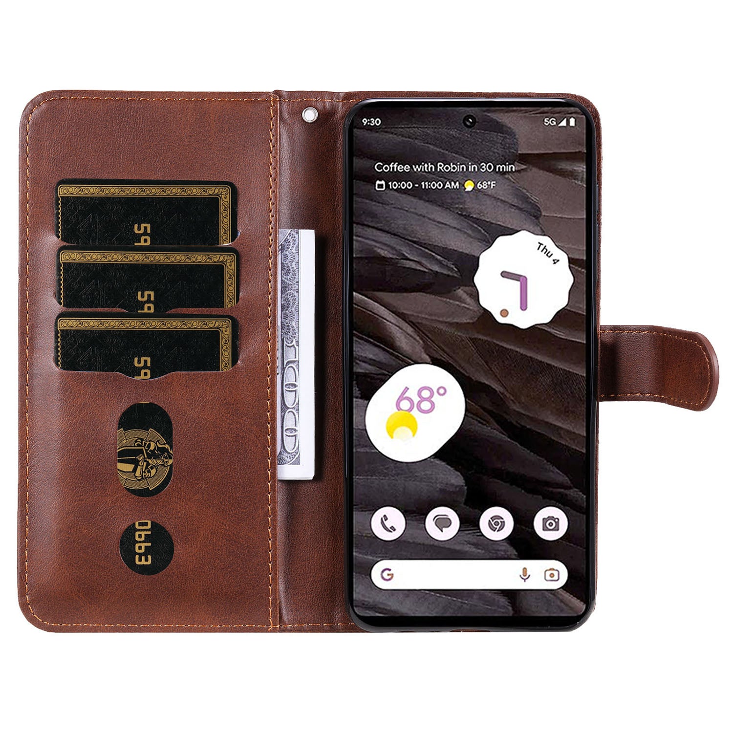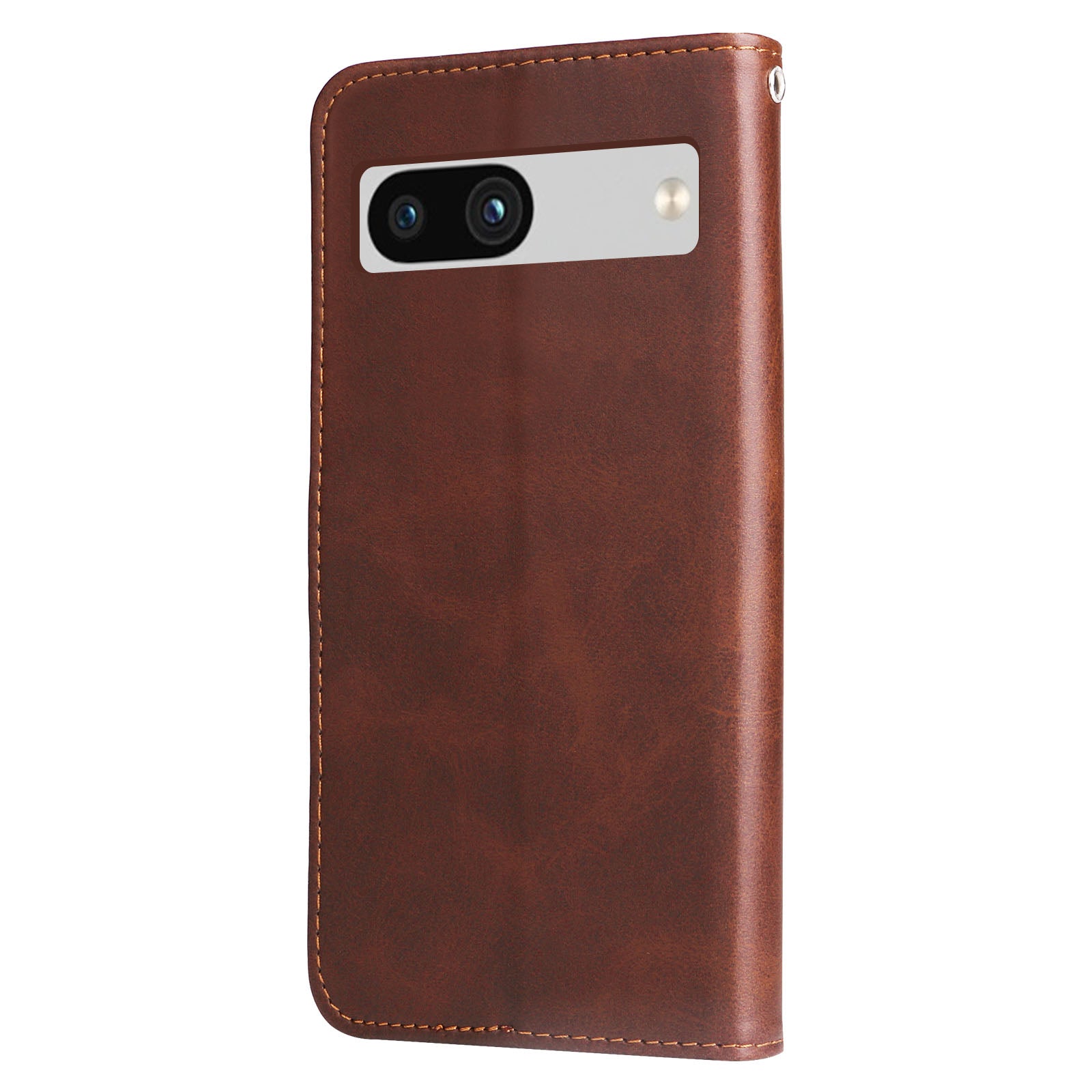 For Google Pixel 7a Calf Texture Leather Phone Case Zipper Pocket Wallet Flip Stand Cover