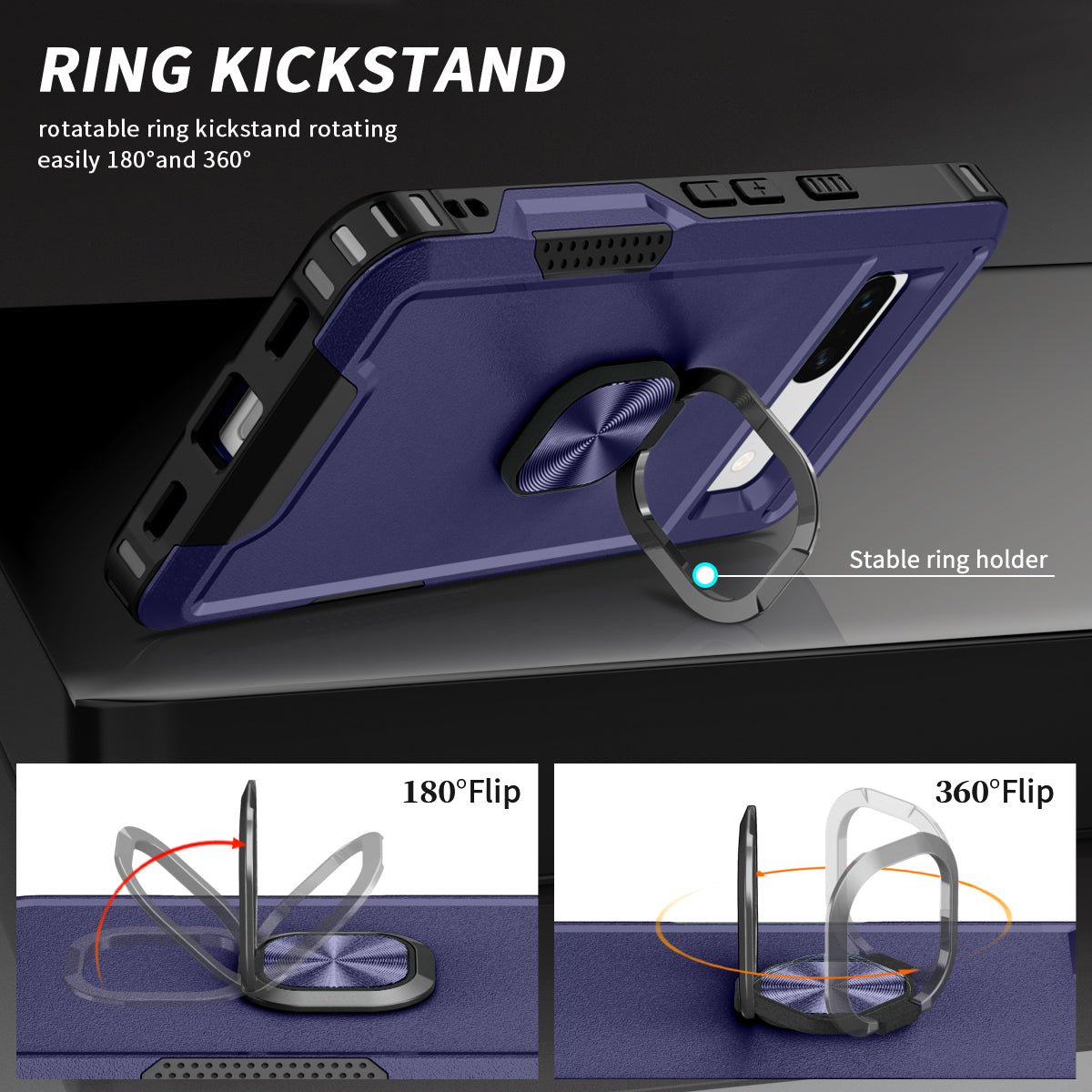 For Google Pixel 7a Hybrid Hard PC Soft TPU Phone Case Ring Car Mount Kickstand Shockproof Cover