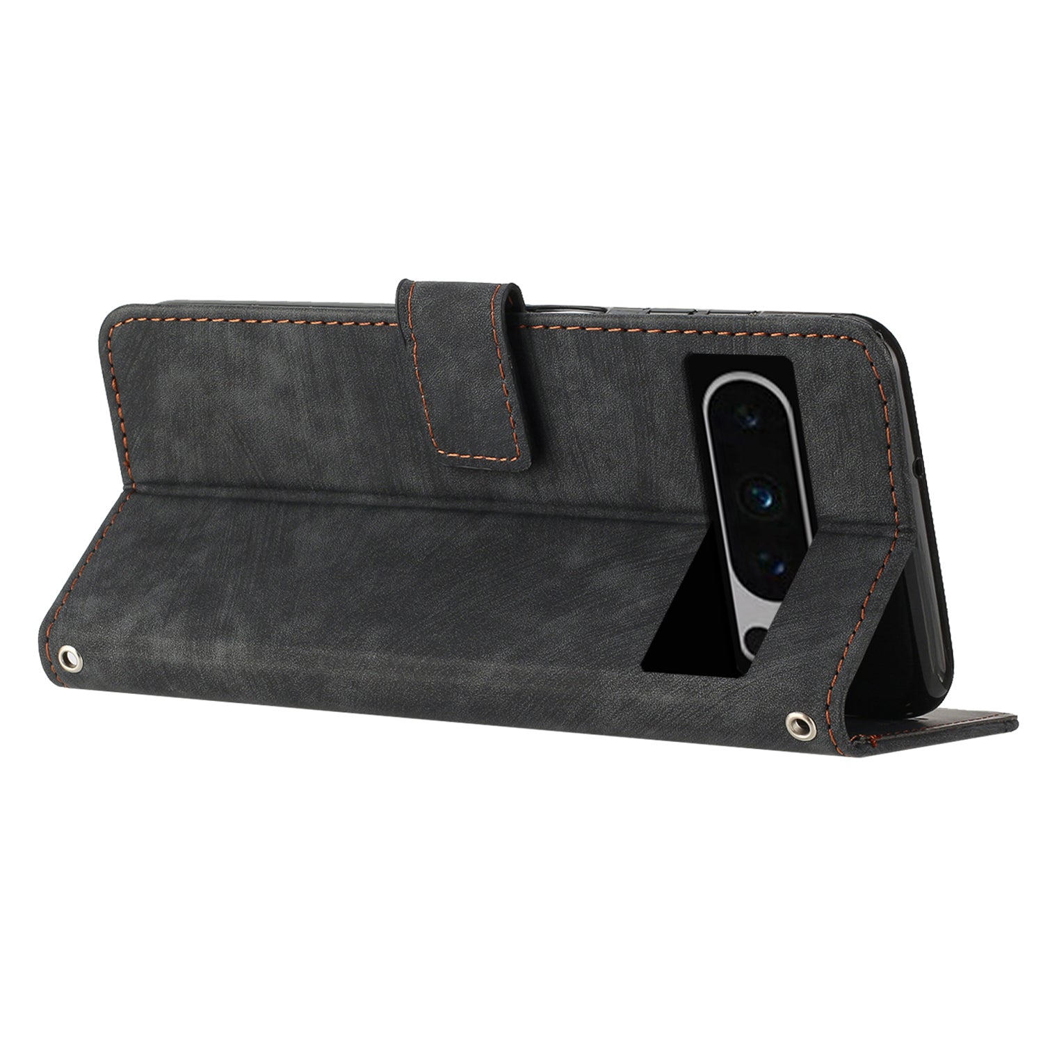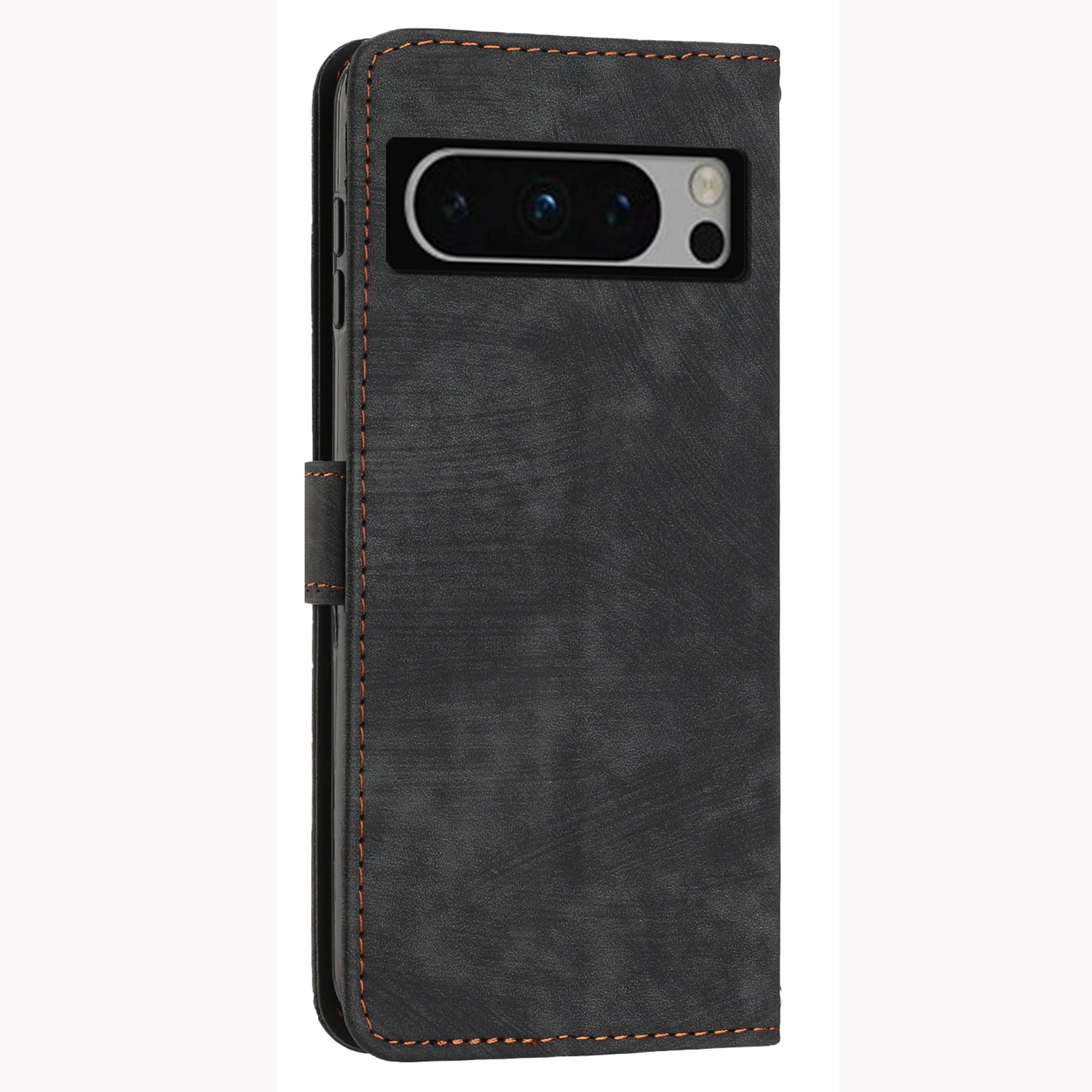 For Google Pixel 8 Pro Imprinted Lines Flip Case Skin-touch PU Leather Stand Wallet Phone Cover