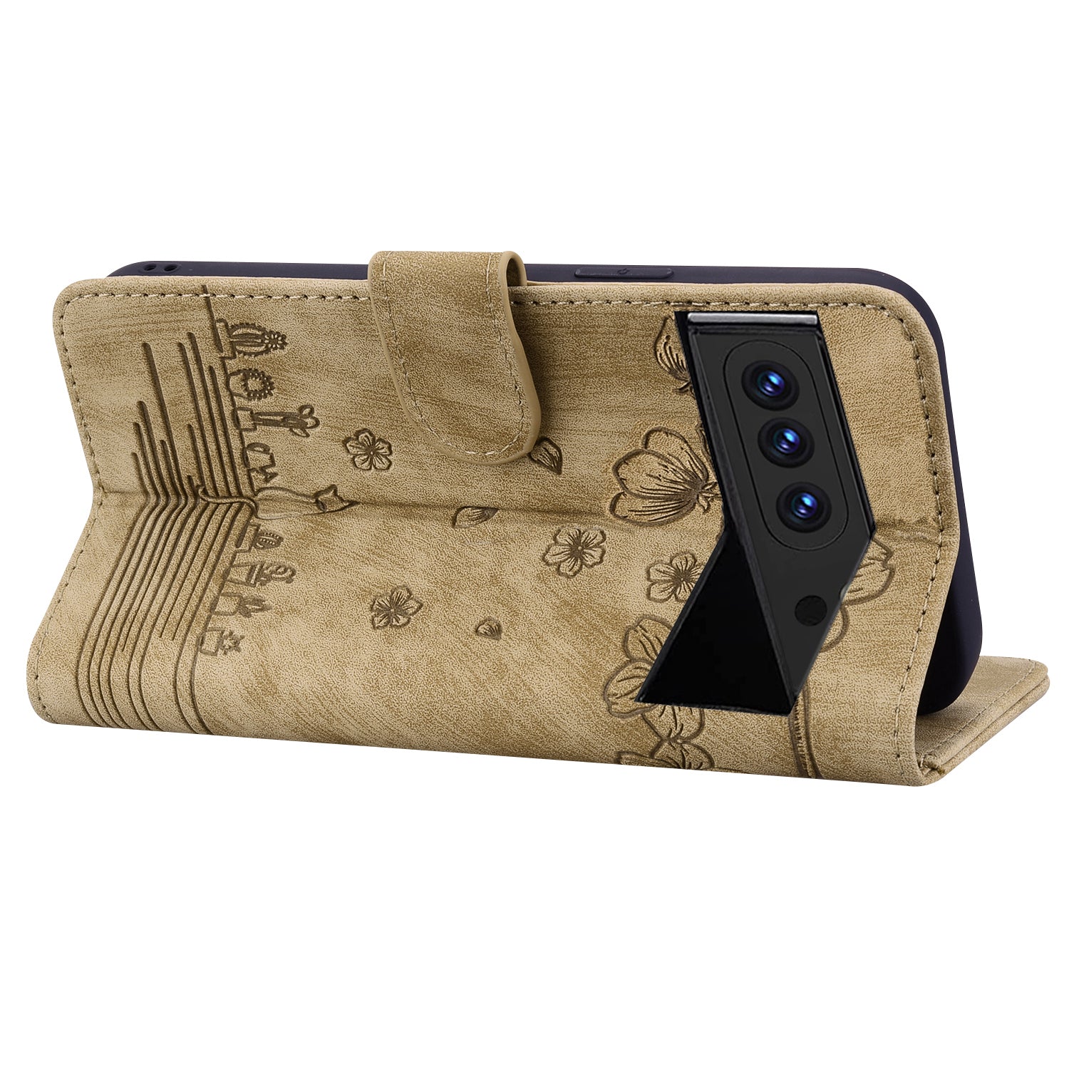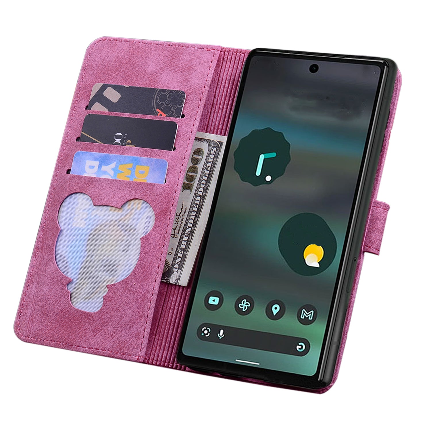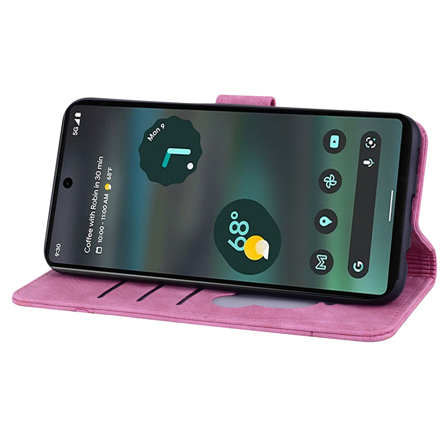 For Google Pixel 8 Pro PU Leather Wallet Stand Case Imprinted Flower Cat Phone Cover with Strap