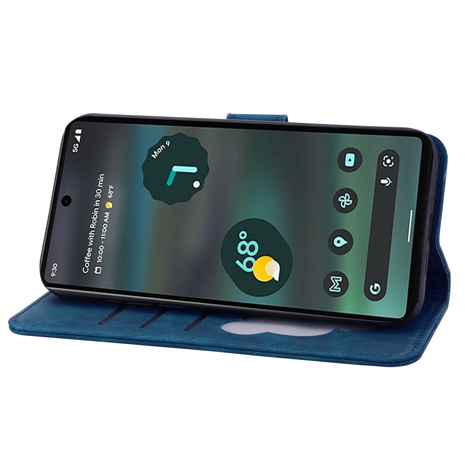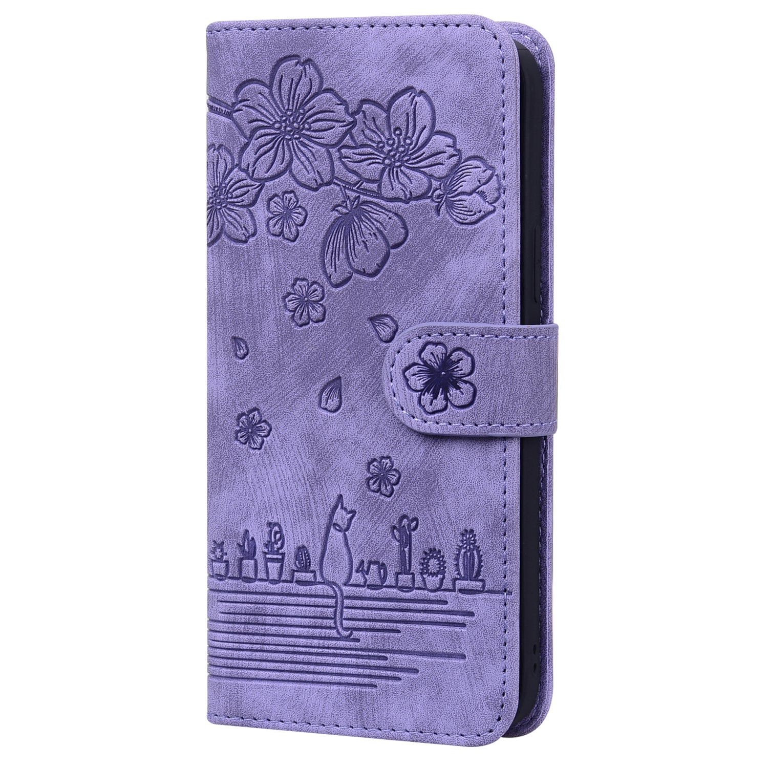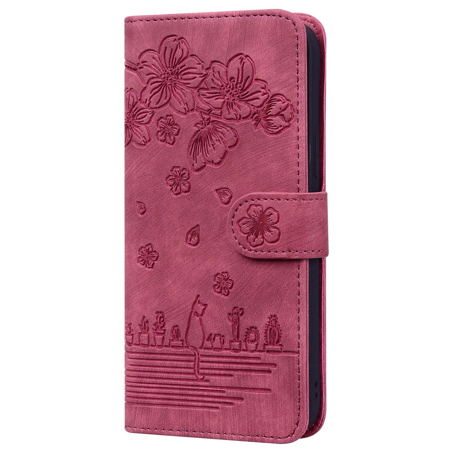For Google Pixel 8 PU Leather Wallet Case Imprinted Flower Cat Stand Phone Cover with Strap