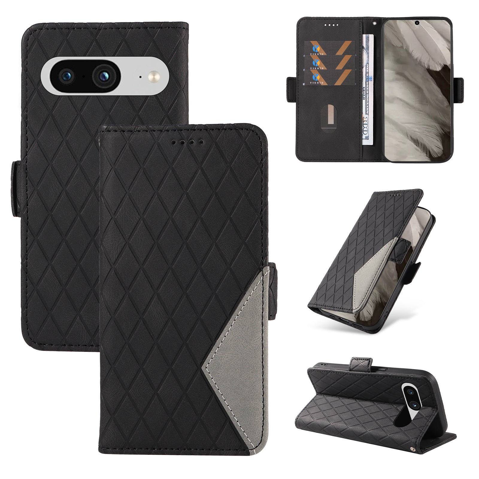 For Google Pixel 8 Rhombus Imprinted Phone Wallet Case PU Leather Stand Phone Cover