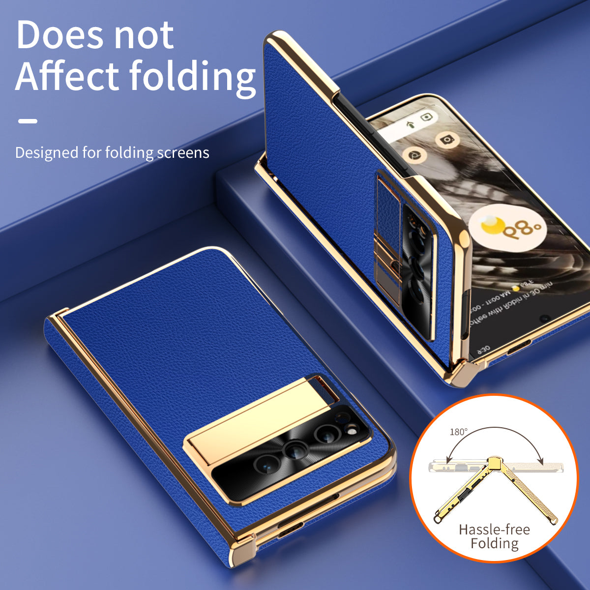 For Google Pixel Fold Litchi Texture Kickstand Phone Cover PU Leather+PC Magnetic Hinge Protection Case with Tempered Glass Screen Film