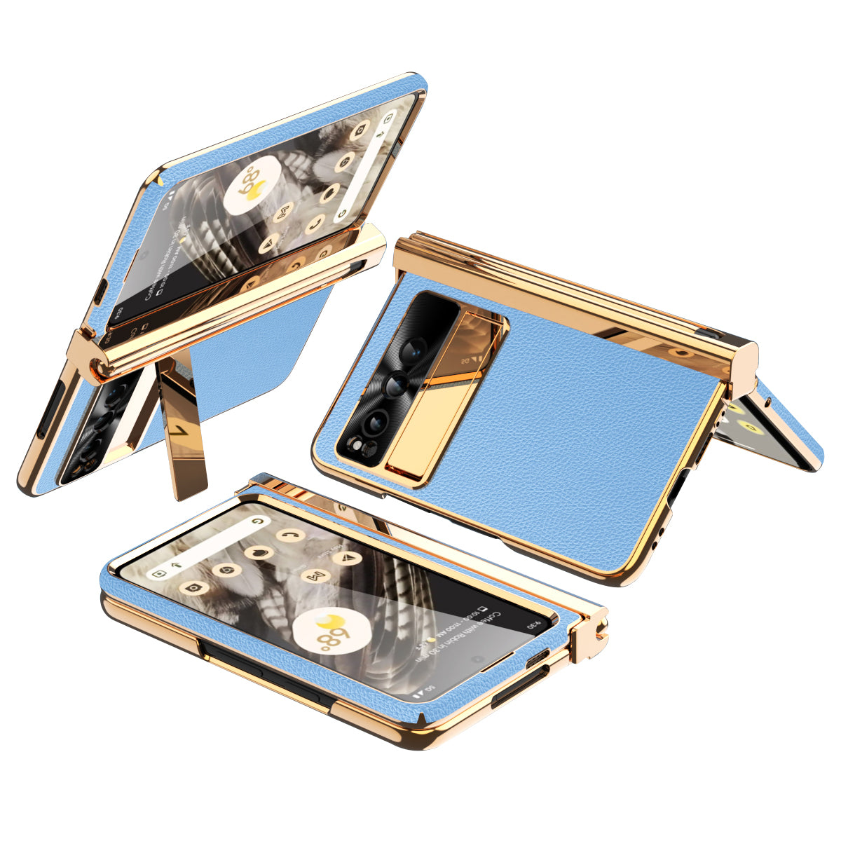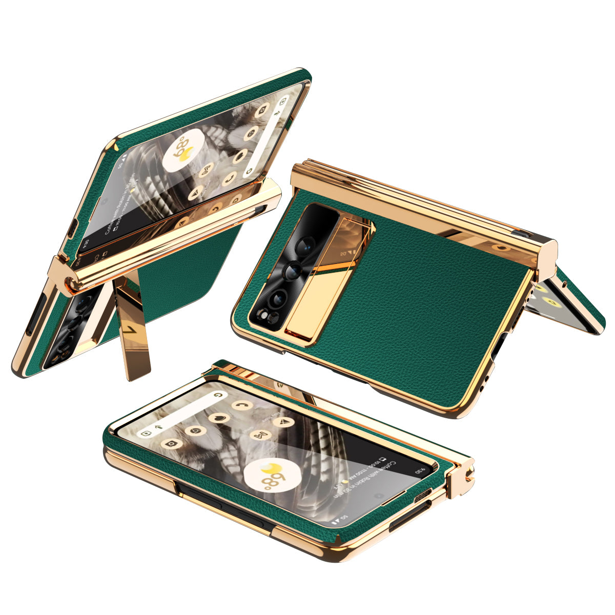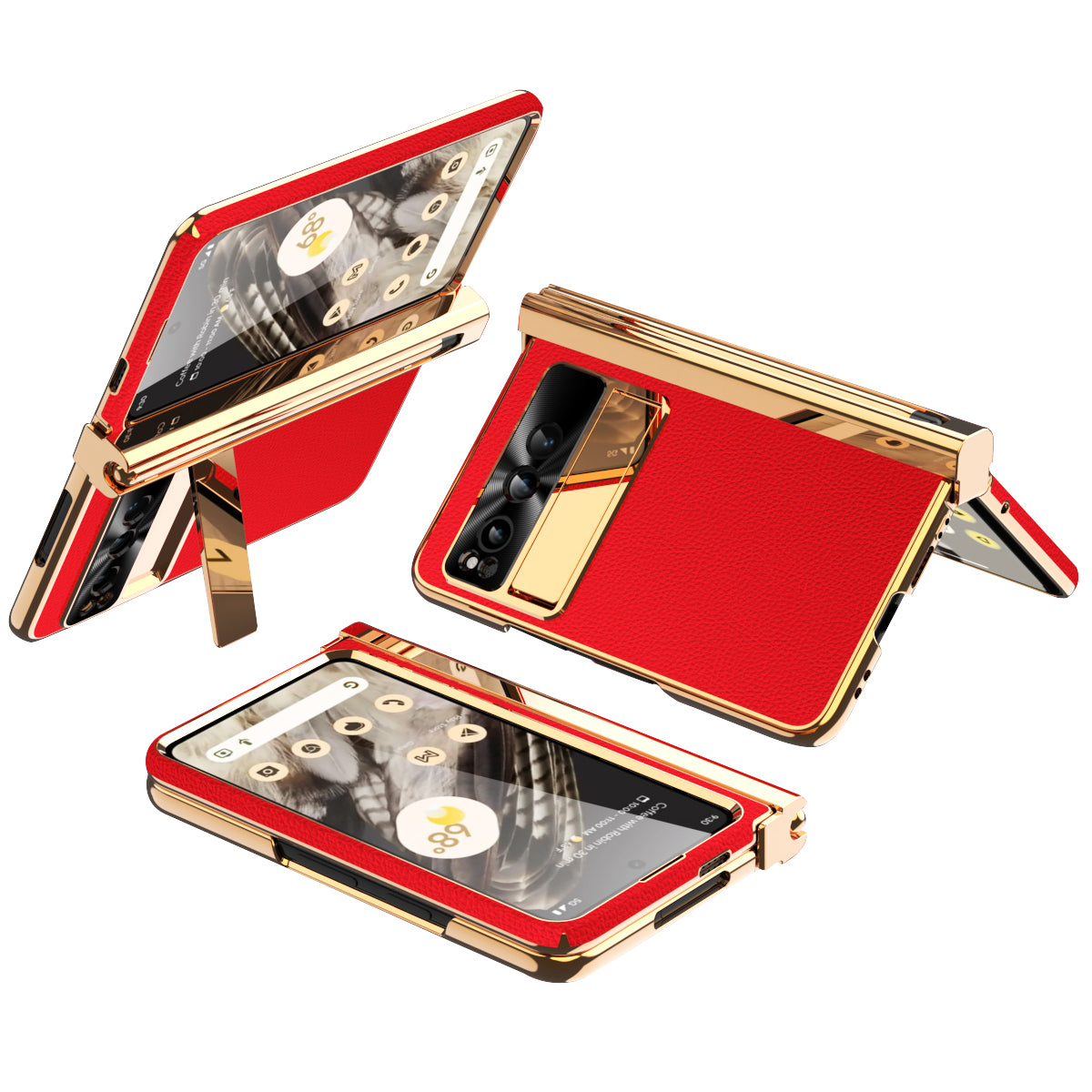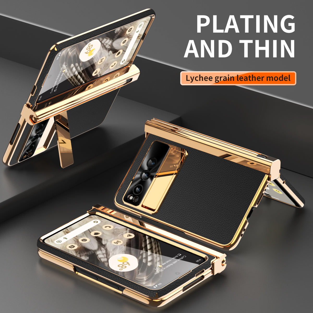 For Google Pixel Fold PU Leather+PC Kickstand Phone Case Magnetic Folding Hinge Litchi Texture Cover with Tempered Glass Screen Film+Stylus