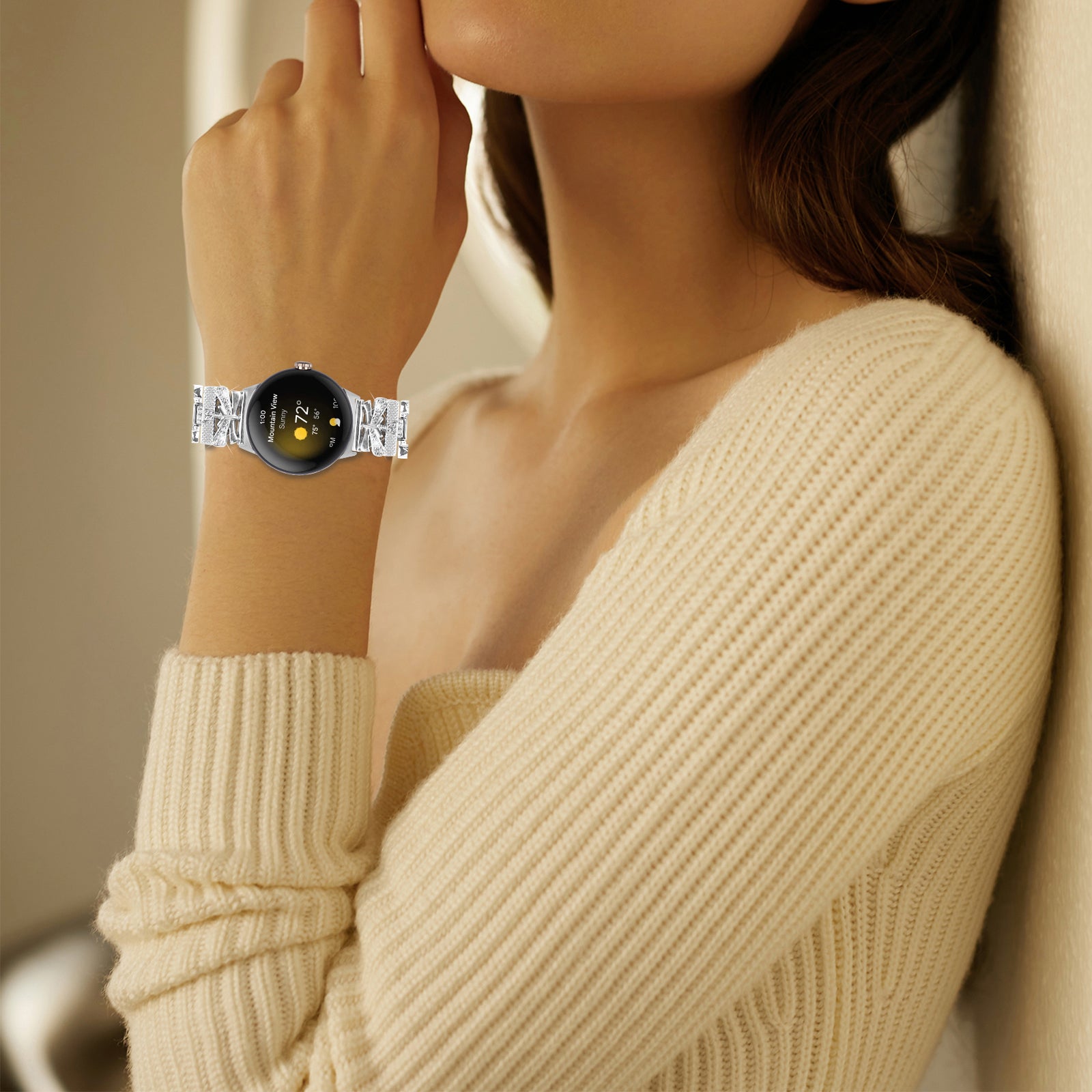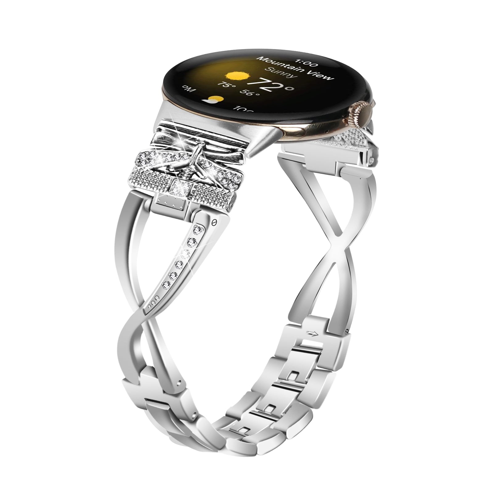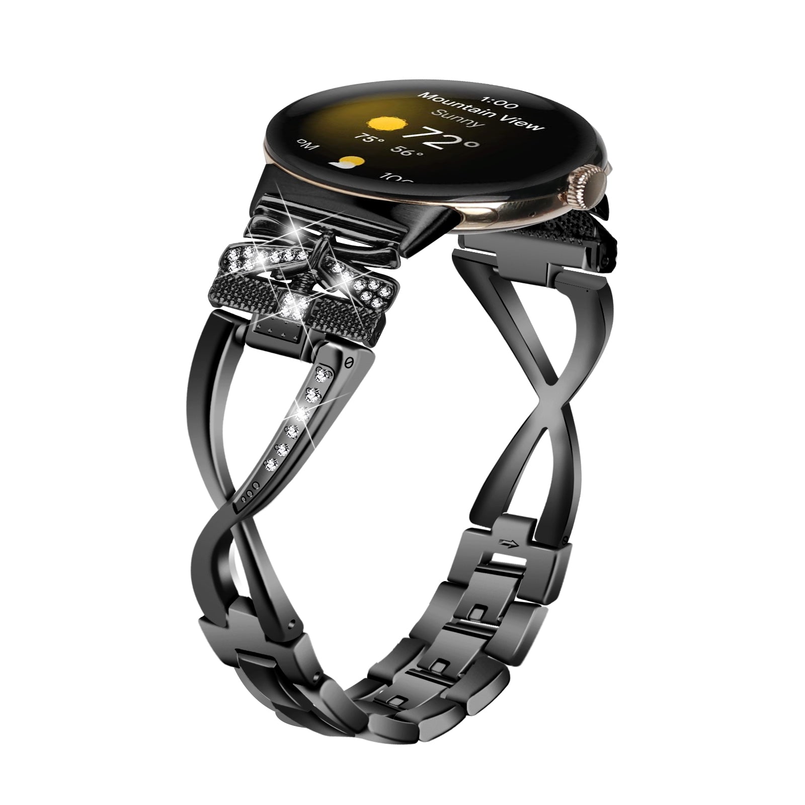 For Google Pixel Watch 2 / Pixel Watch Crown X-shape Rhinestones Decor Watch Strap Zinc Alloy Wrist Band