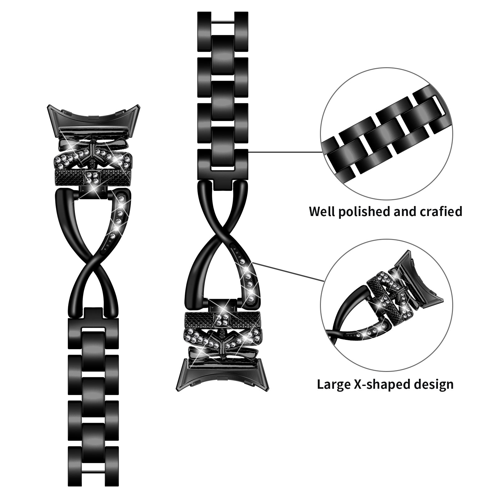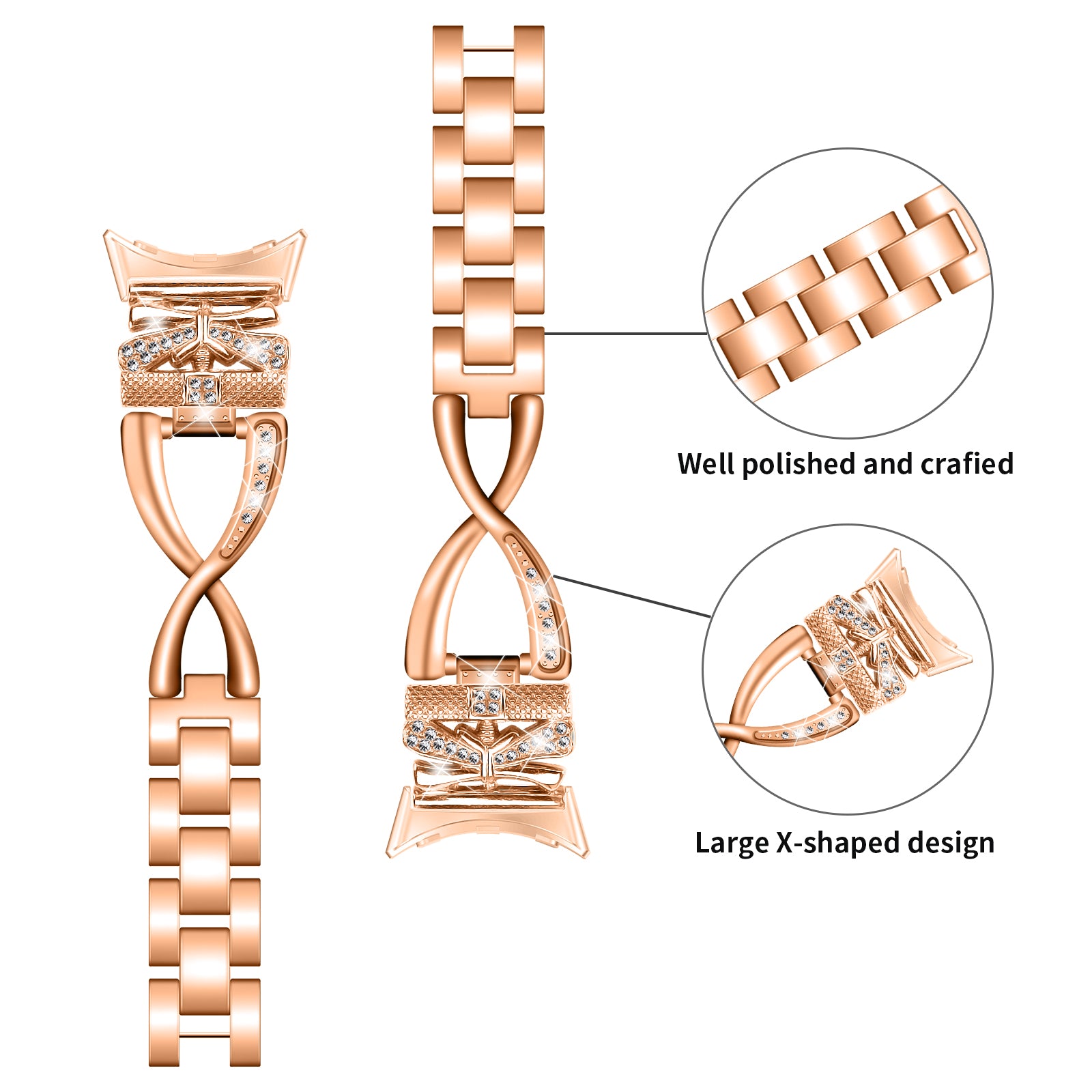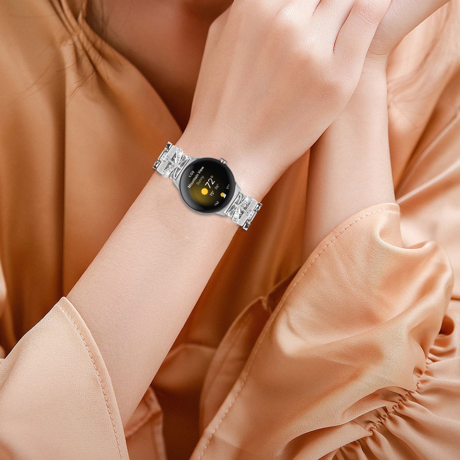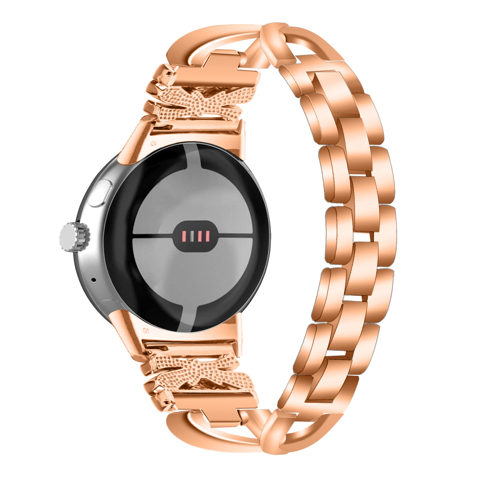 For Google Pixel Watch 2 / Pixel Watch Crown X-shape Rhinestones Decor Watch Strap Zinc Alloy Wrist Band