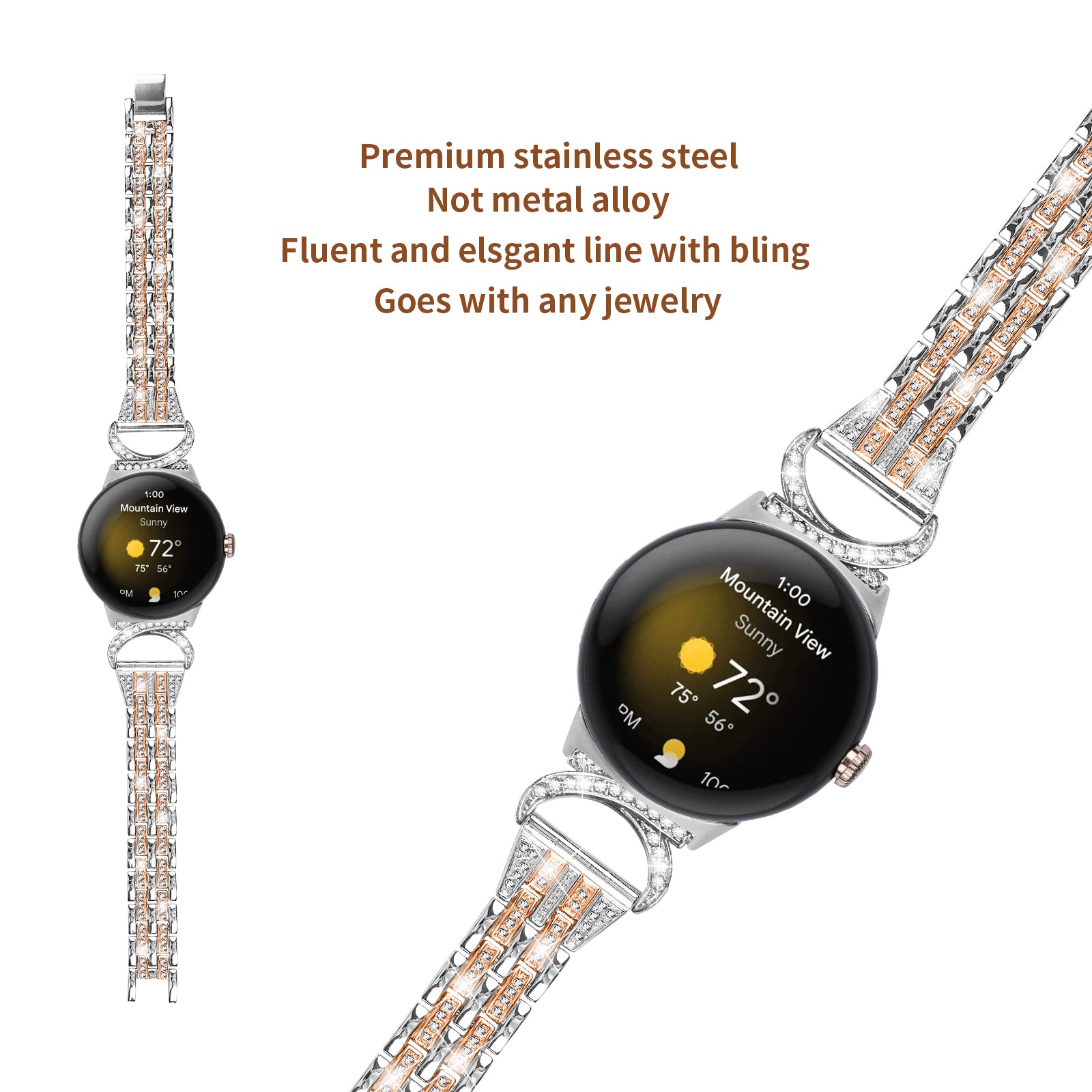 - With 2-row shiny rhinestones decorated, unique and stylish, personalized your smartwatch