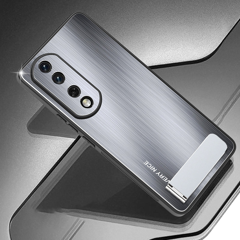 For Honor 90 Brushed Armor Case Aluminium Alloy Back TPU Frame Kickstand Phone Cover