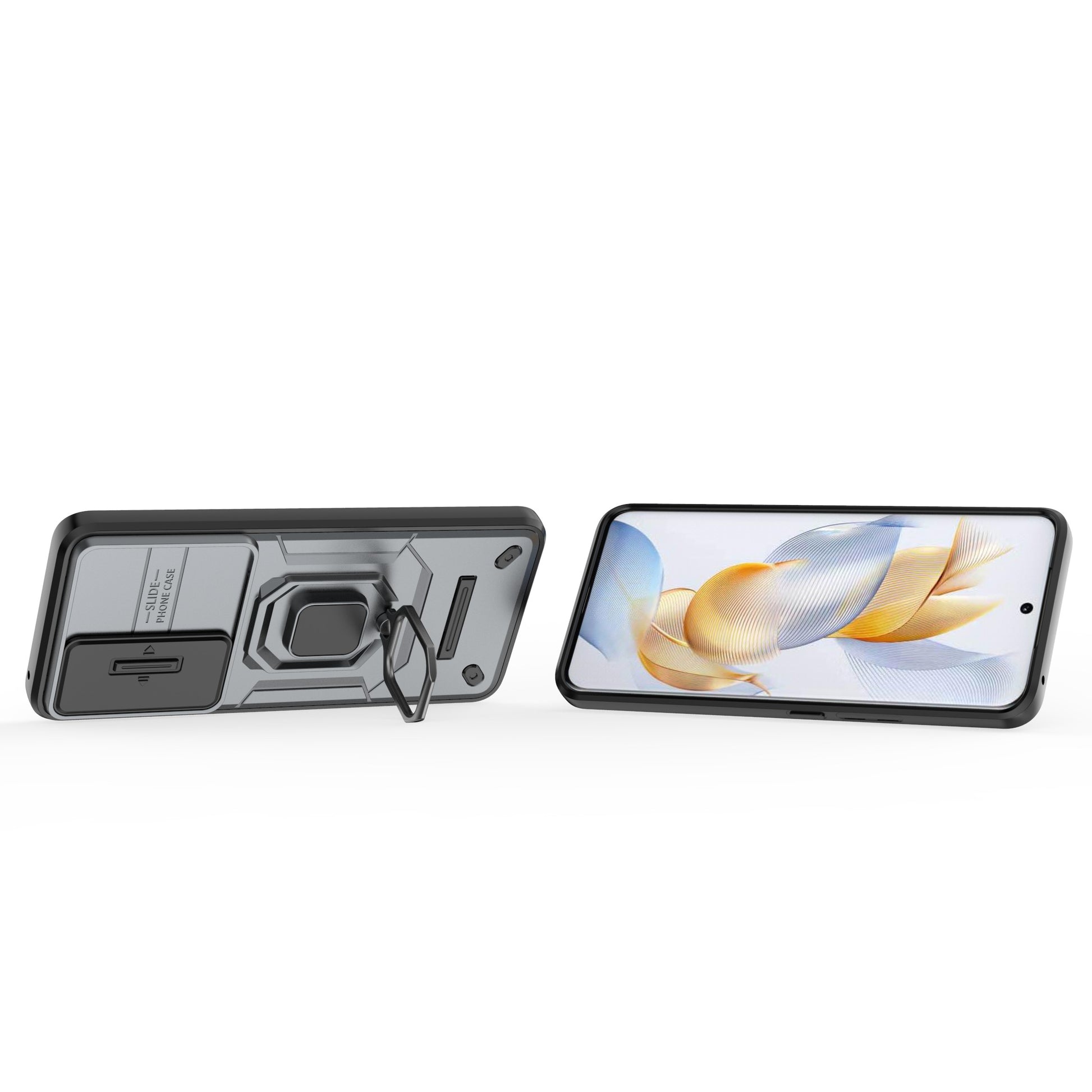 For Honor 90 Case PC+TPU Ring Kickstand Cellphone Cover with Slide Lens Guard