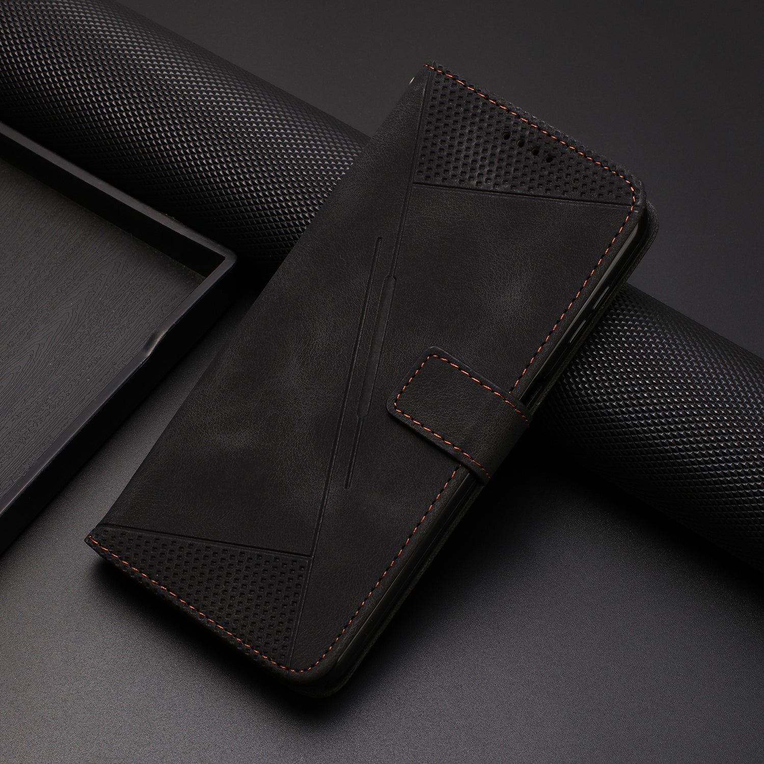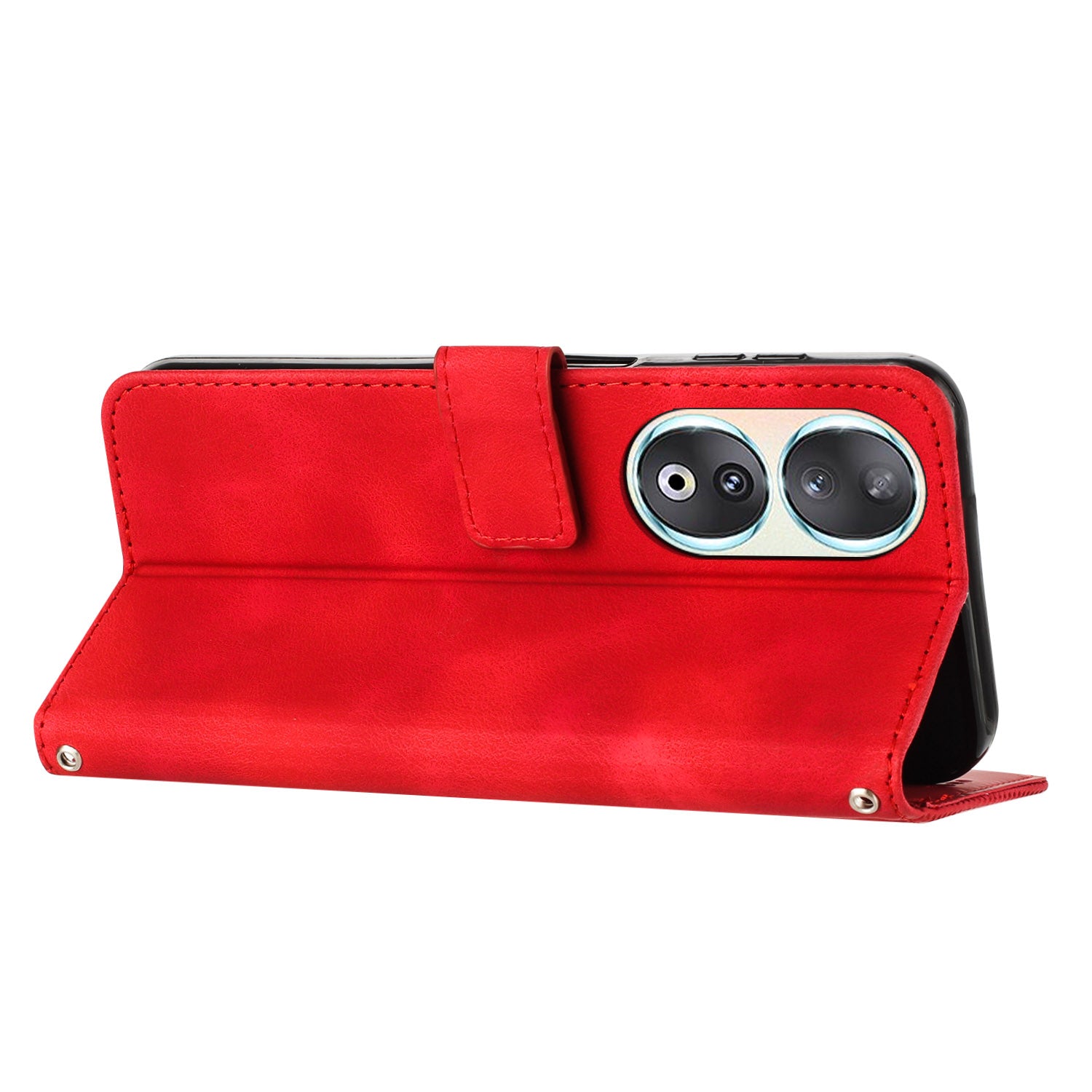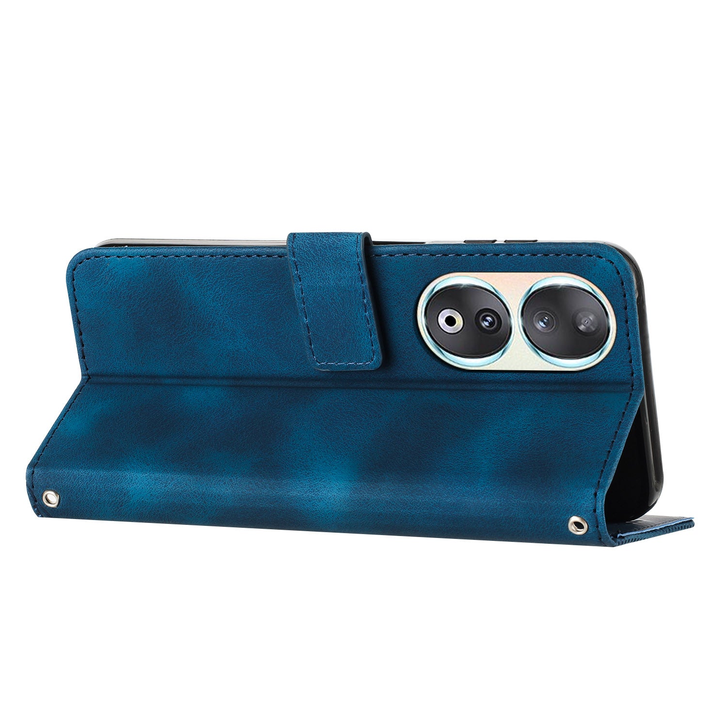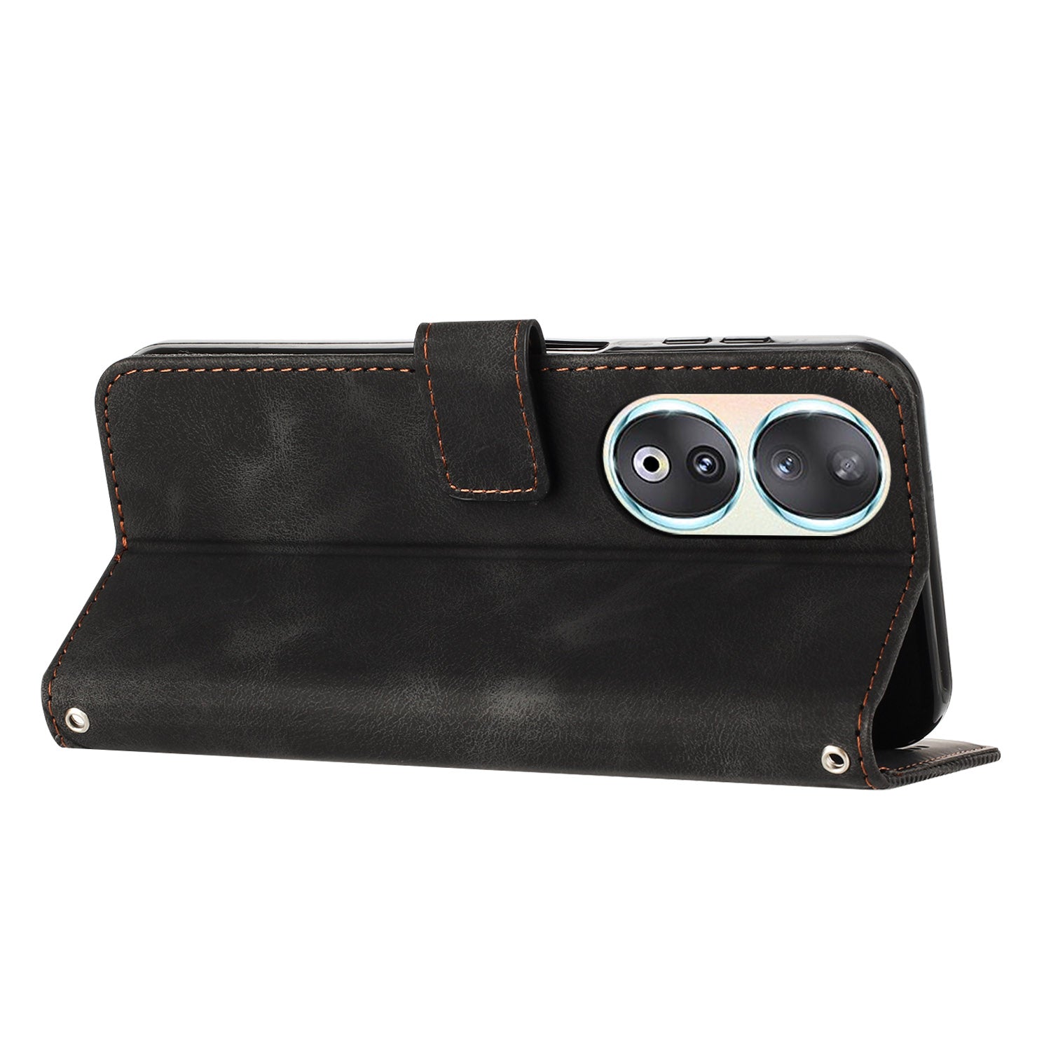 For Honor 90 Leather Wallet Anti-drop Phone Cover Triangle Imprint Folding Stand Shell with Strap