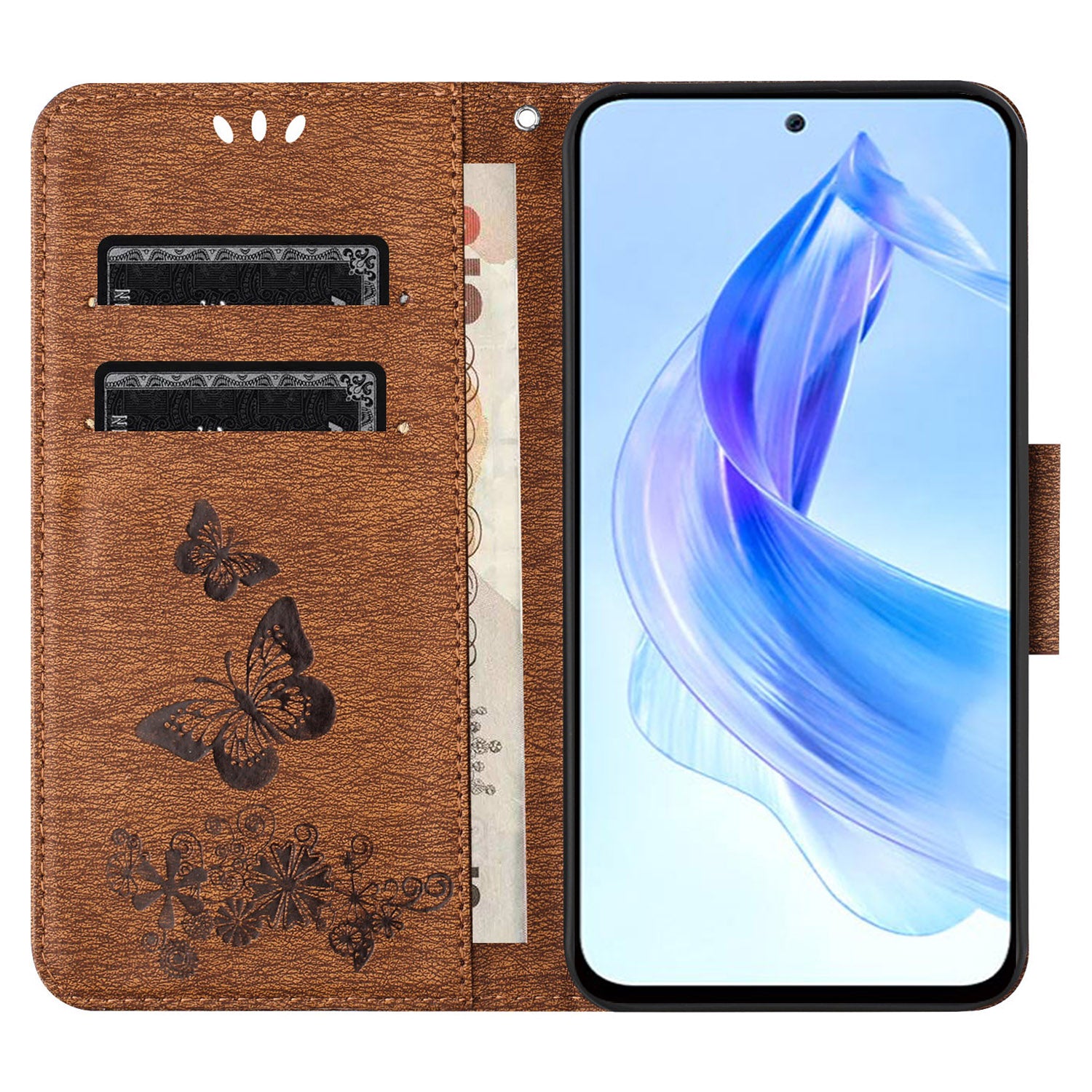 For Honor 90 Lite 5G / X50i 5G Butterflies Flower Imprinting Stand Phone Cover Leather Wallet Case