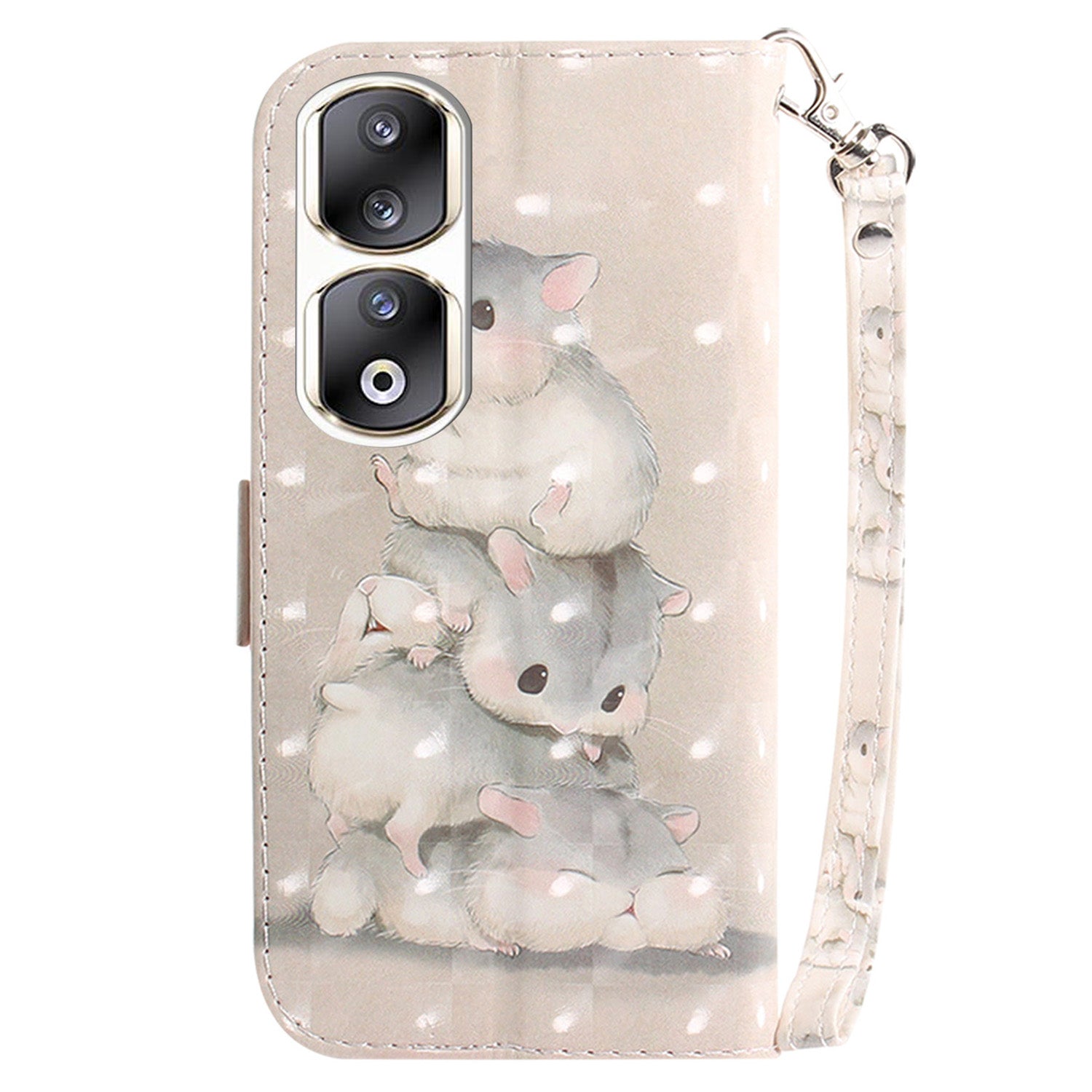 For Honor 90 Pro 3D Pattern Printed Case PU Leather Stand Wallet Phone Cover with Strap