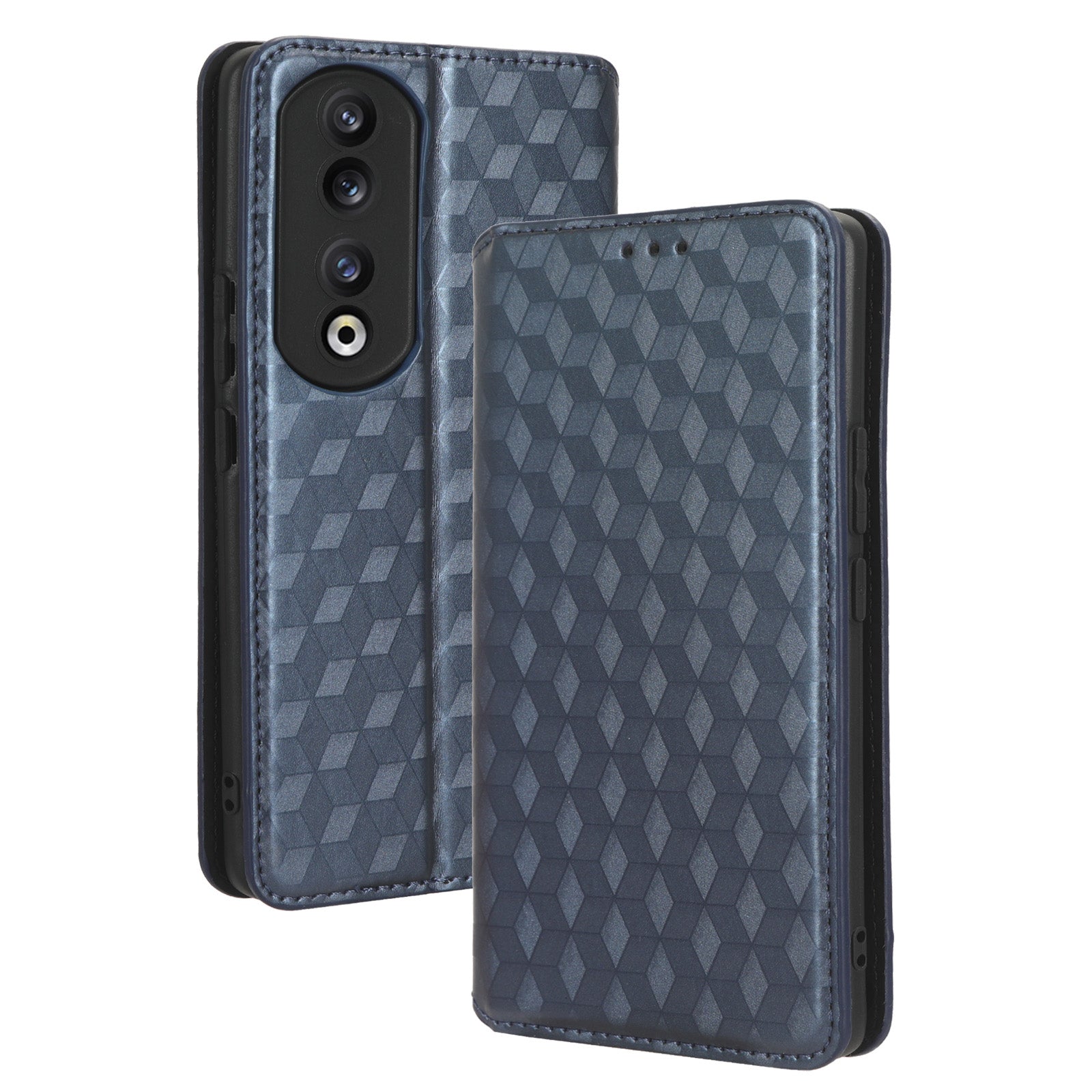 For Honor 90 Pro Anti-Scratch PU Leather Stand Case Shockproof Imprinted Rhombus Phone Cover