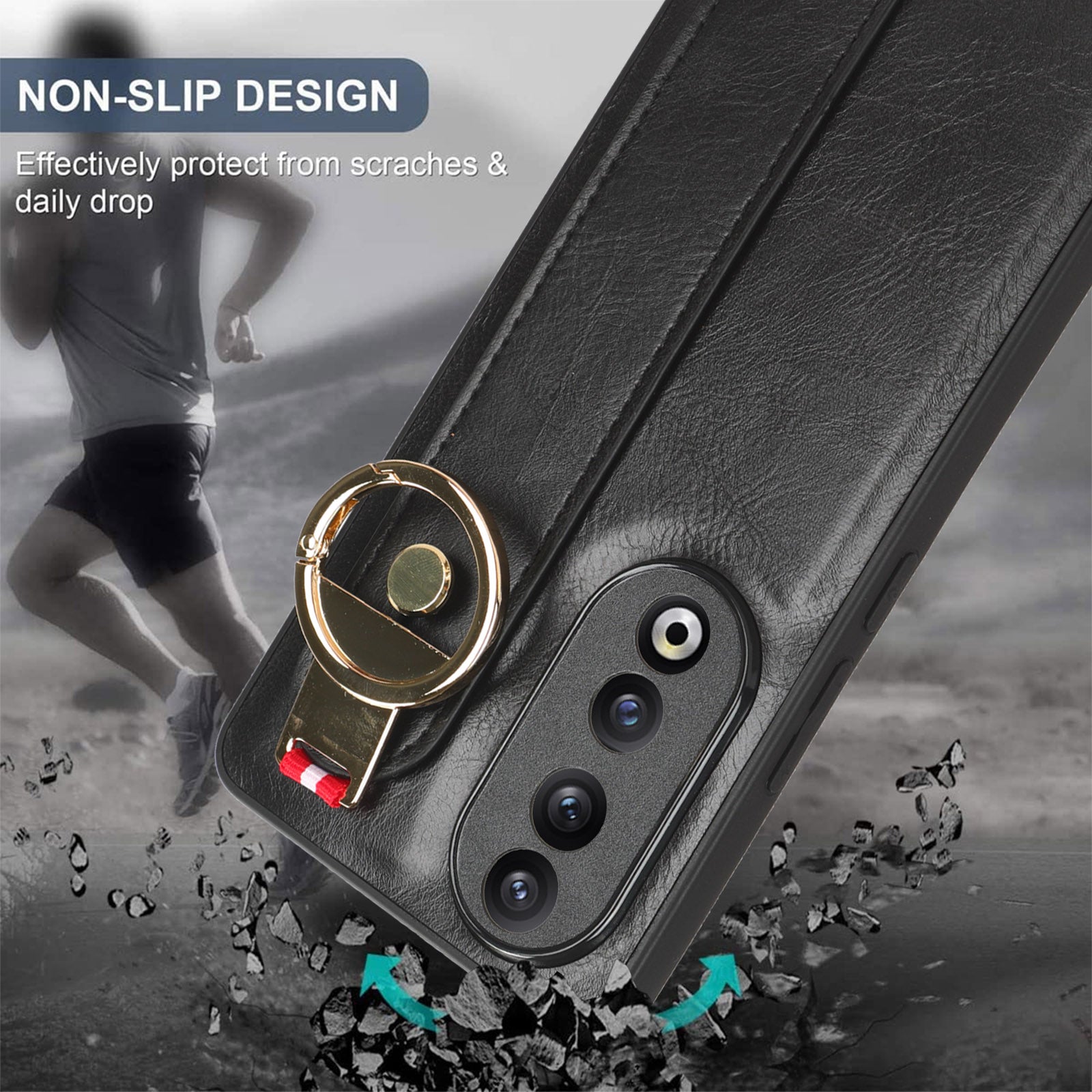 For Honor 90 Pro Wristband Kickstand Protective Case Bottle Opener Design PU Leather+PC+TPU Phone Cover