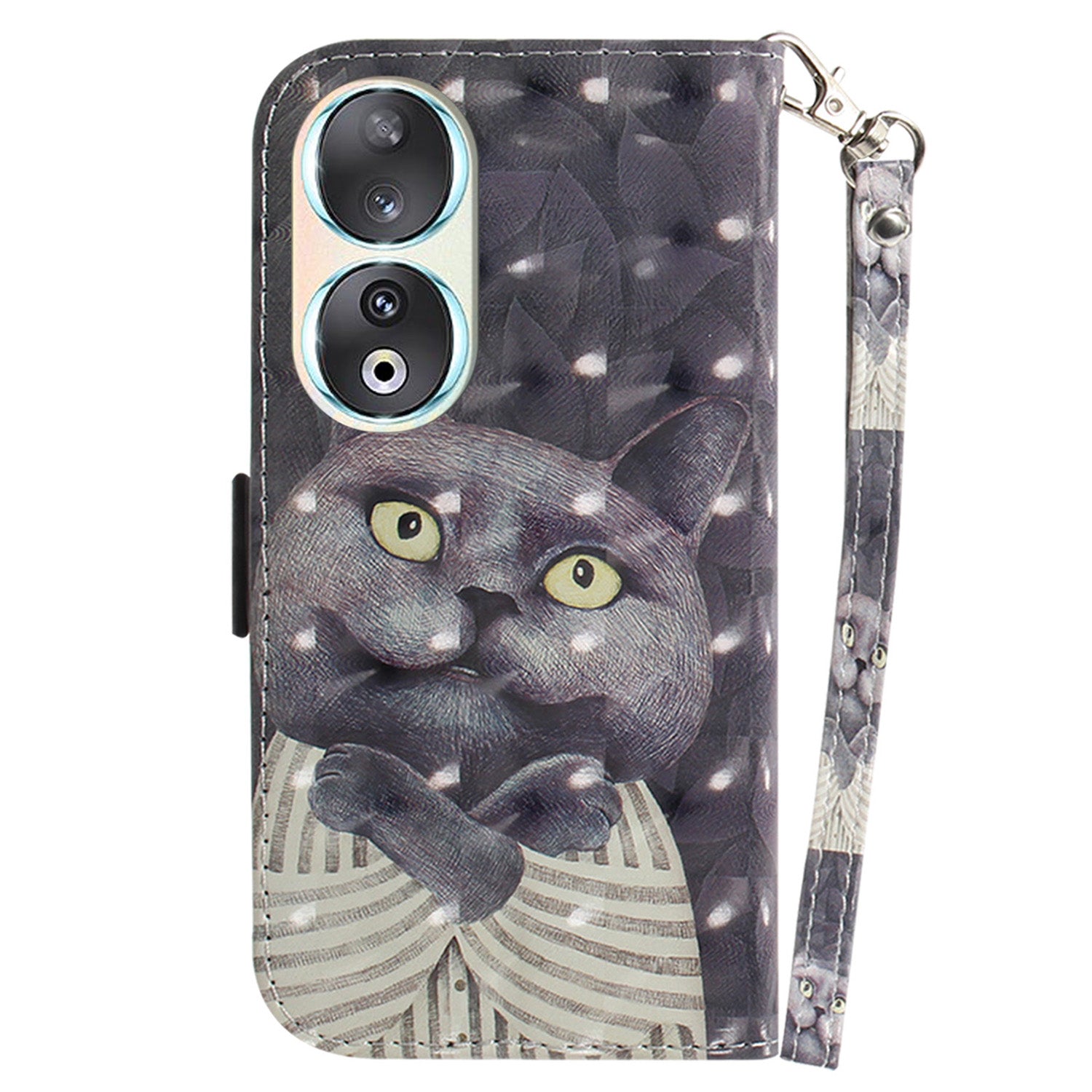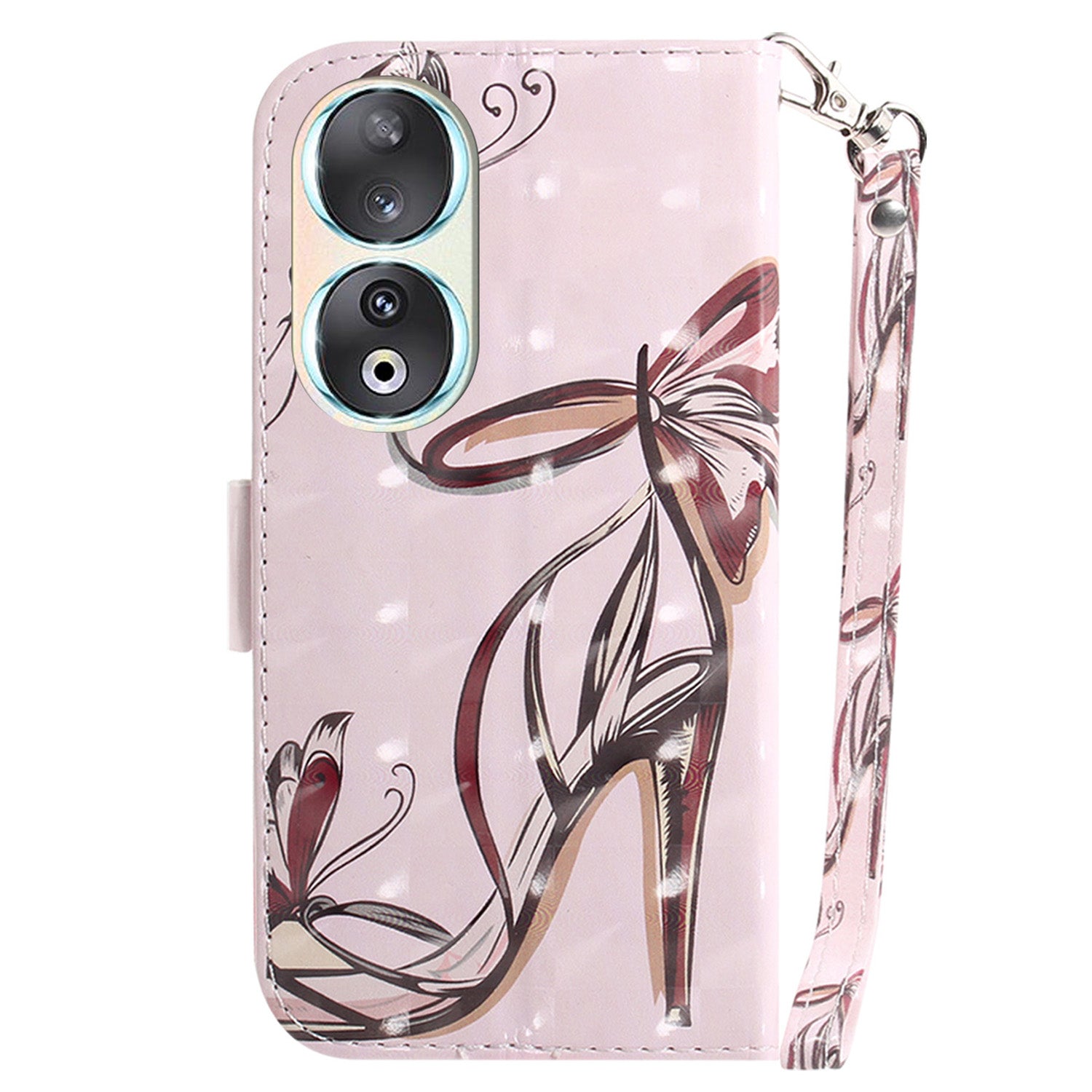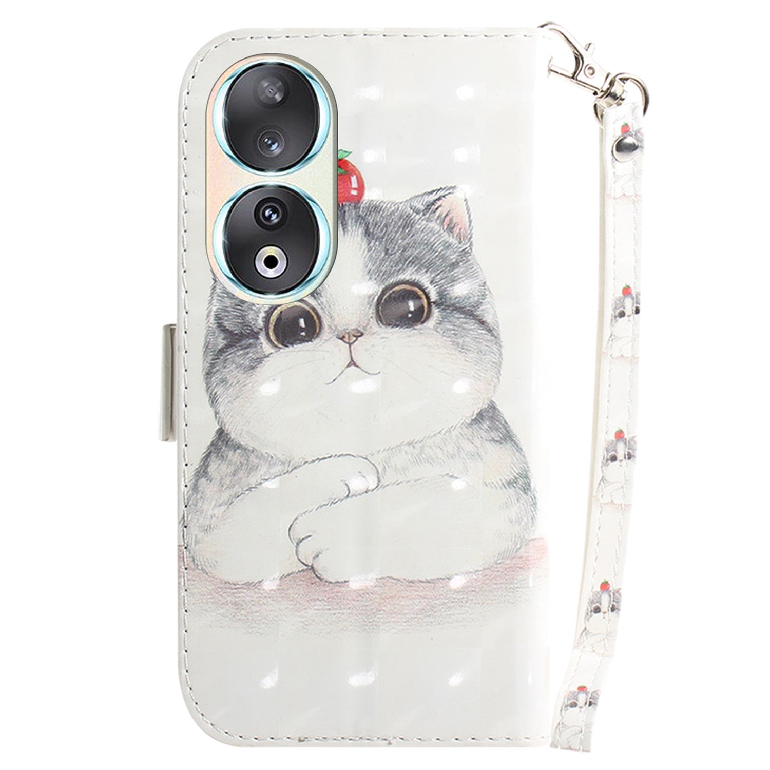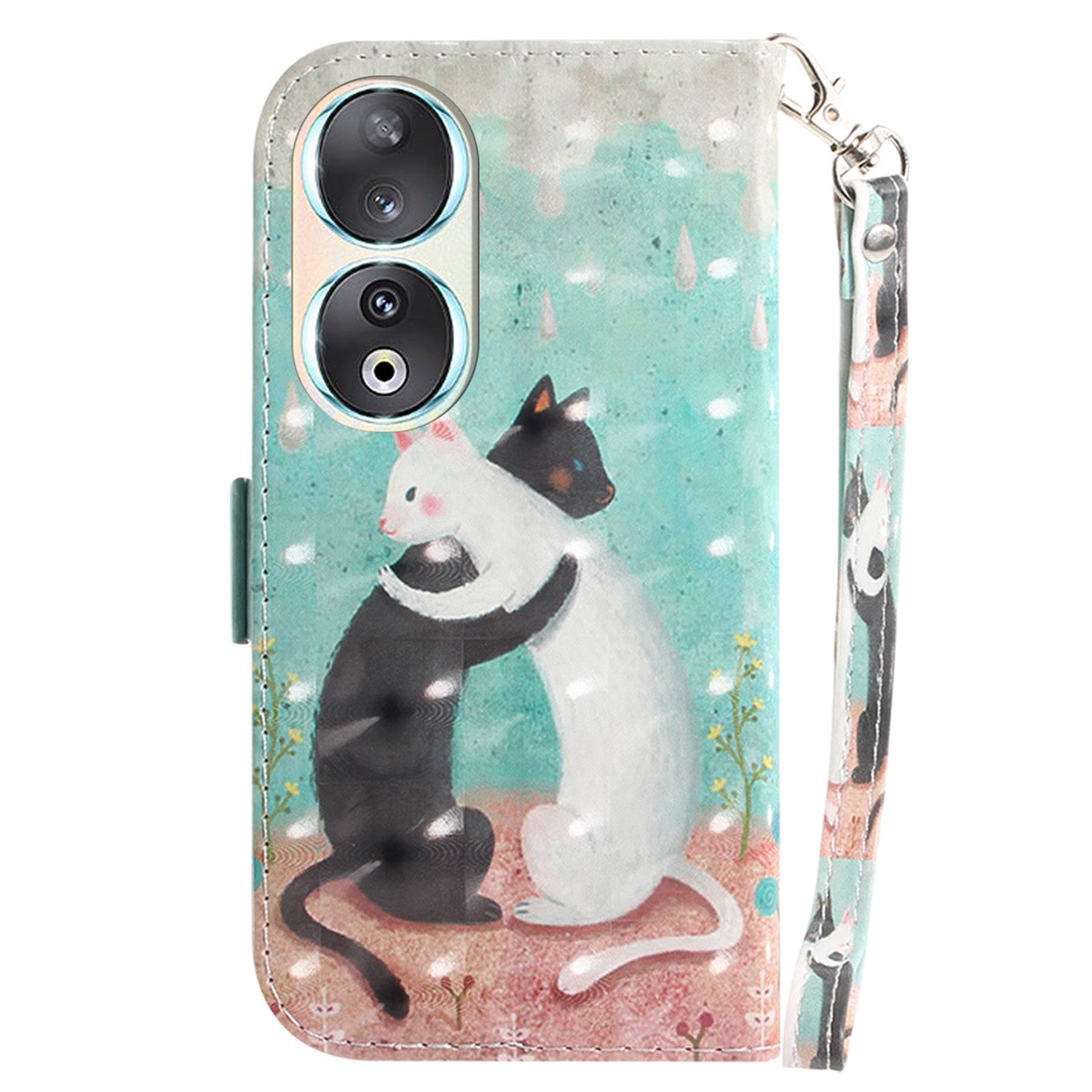 For Honor 90 PU Leather 3D Pattern Printed Phone Case Stand Wallet Drop-proof Cover with Strap