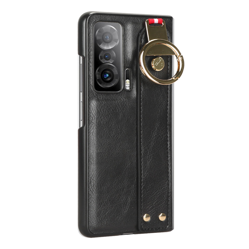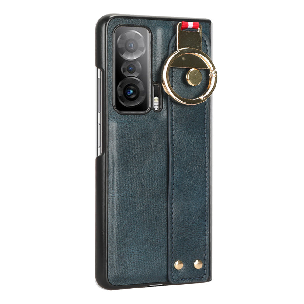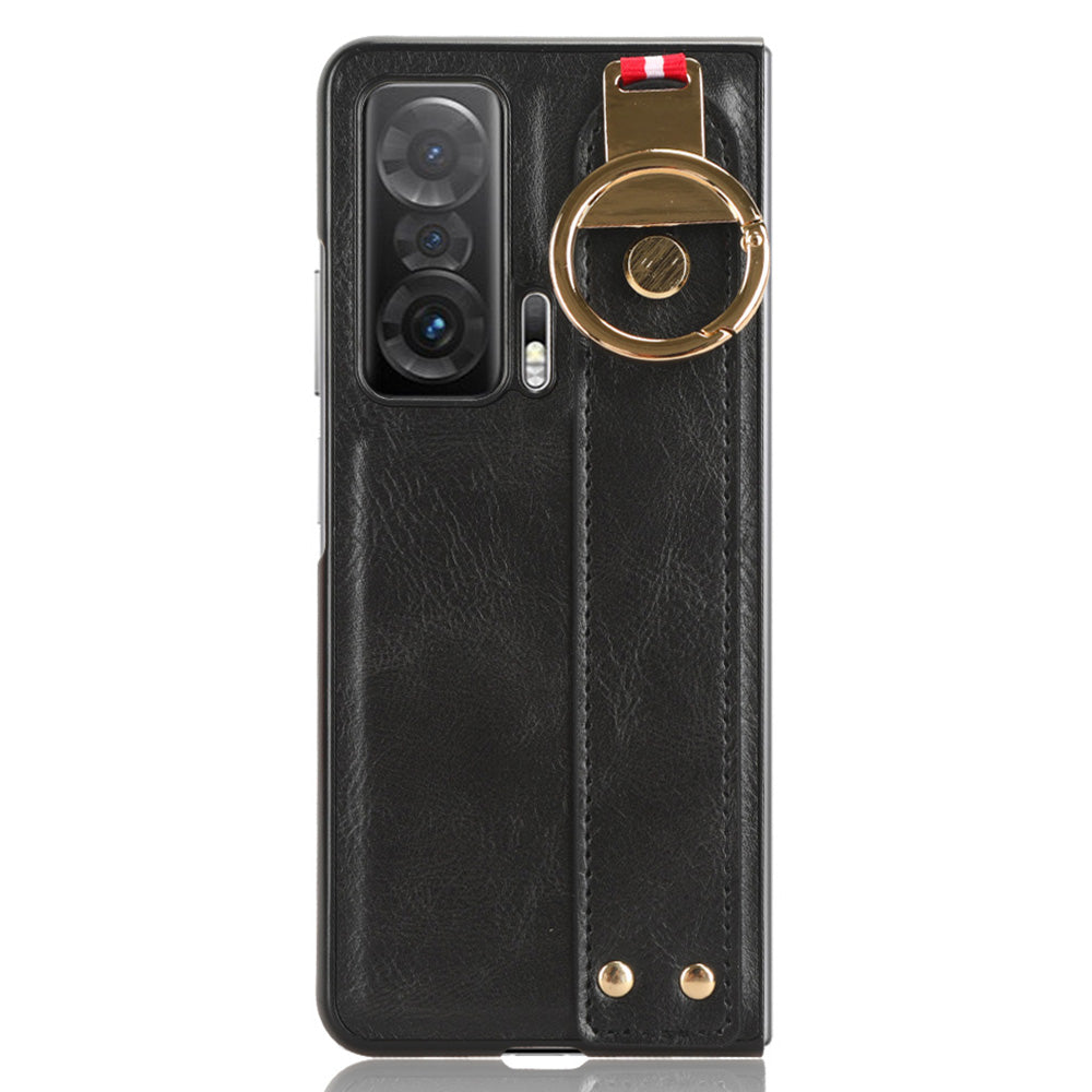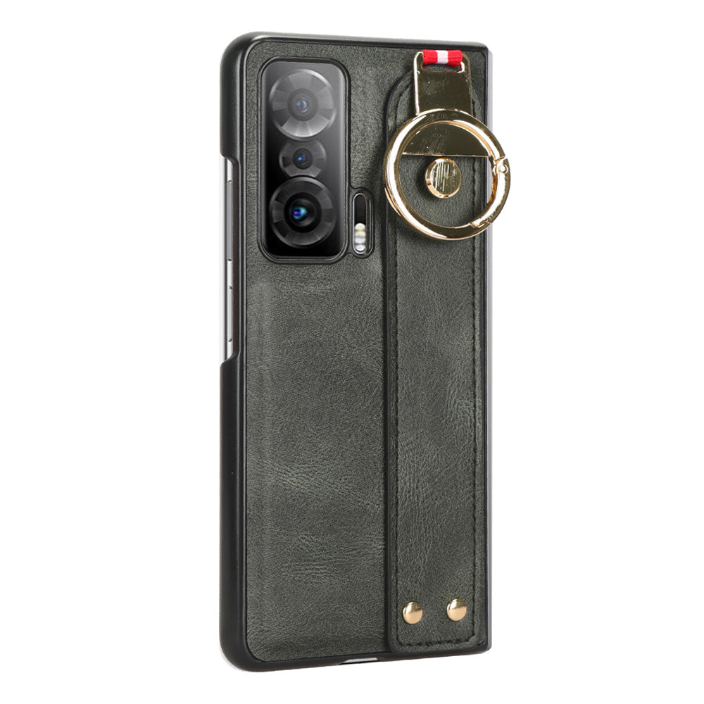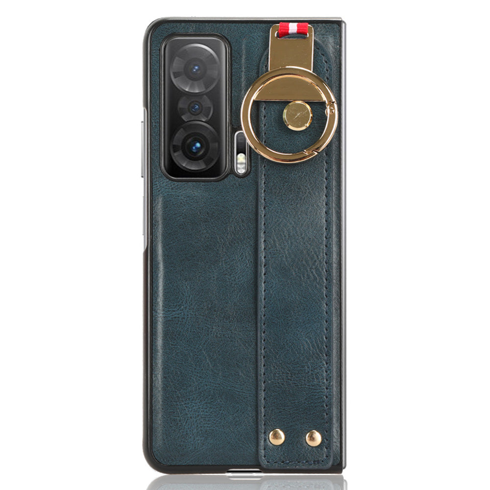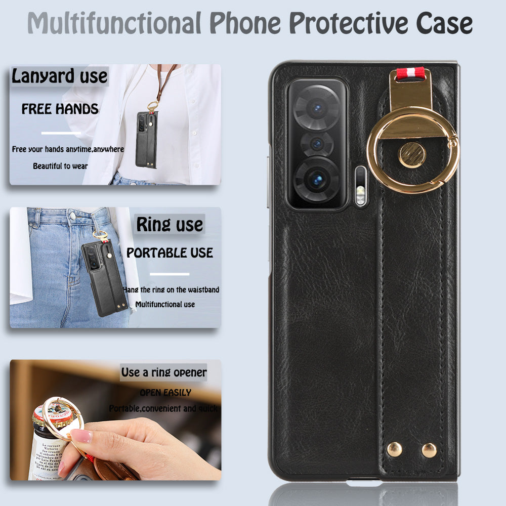 For Honor Magic V Wristband Phone Cover Leather Coating PC+TPU Case with Neck Strap