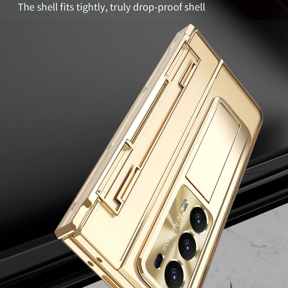 For Honor Magic V2 5G Hard PC Phone Case Folding Kickstand Full Body Protection Cover with Tempered Glass Film