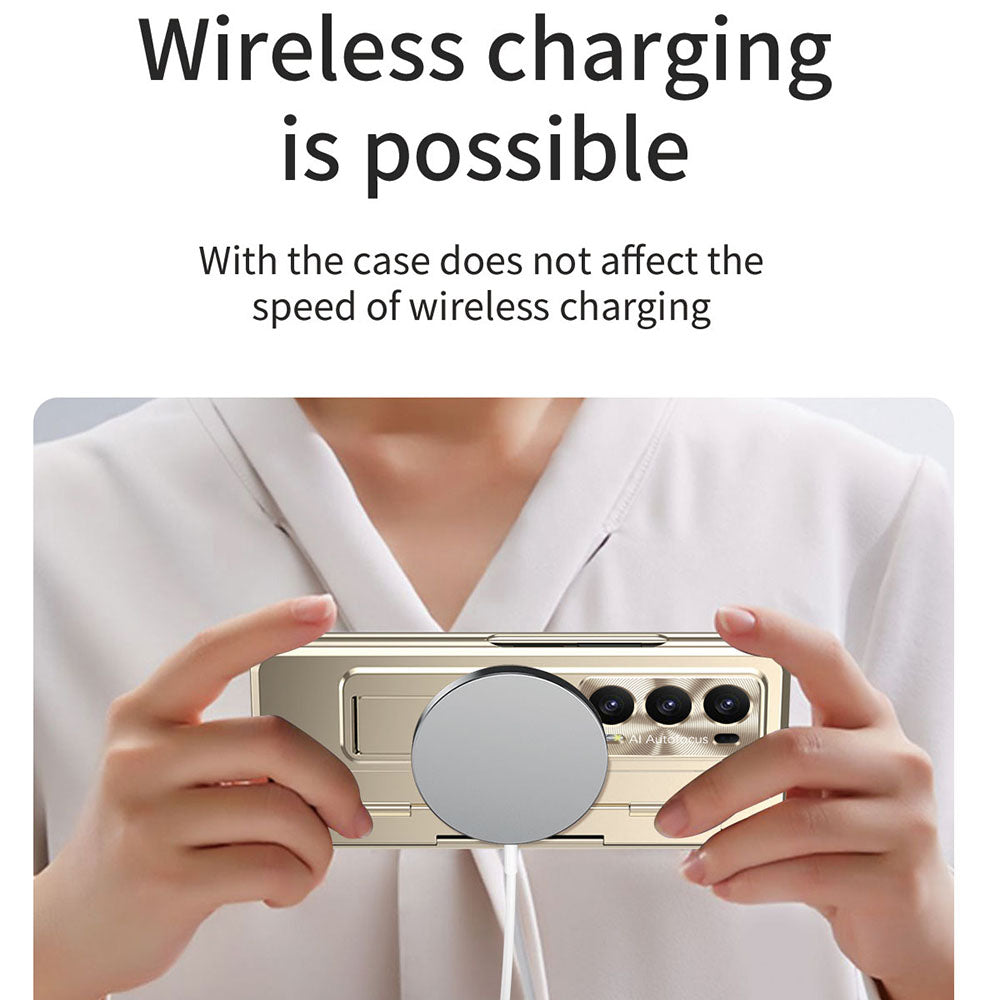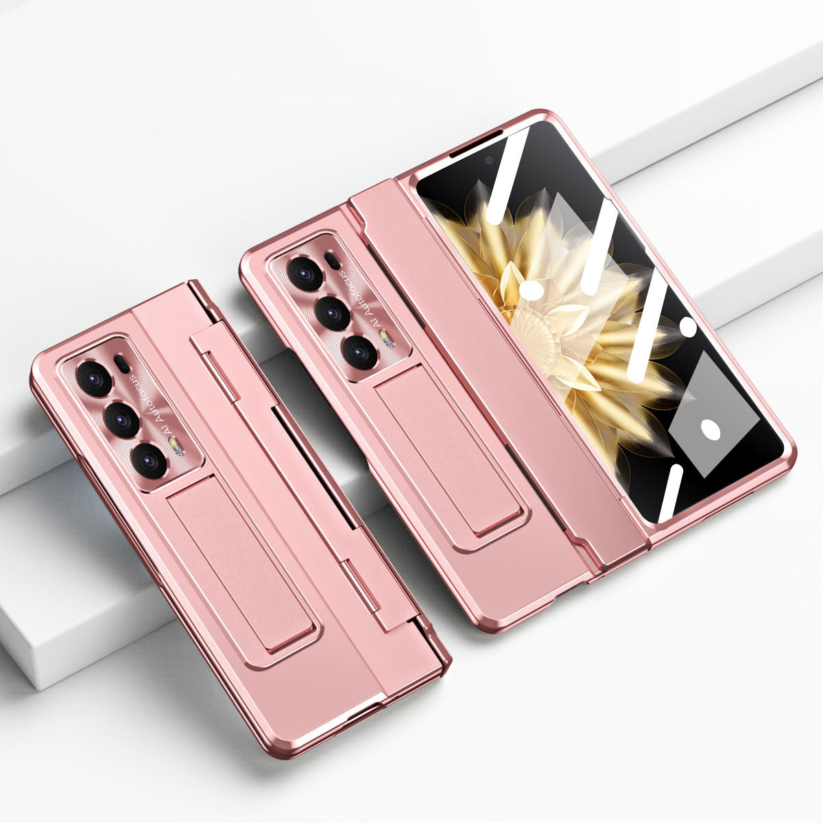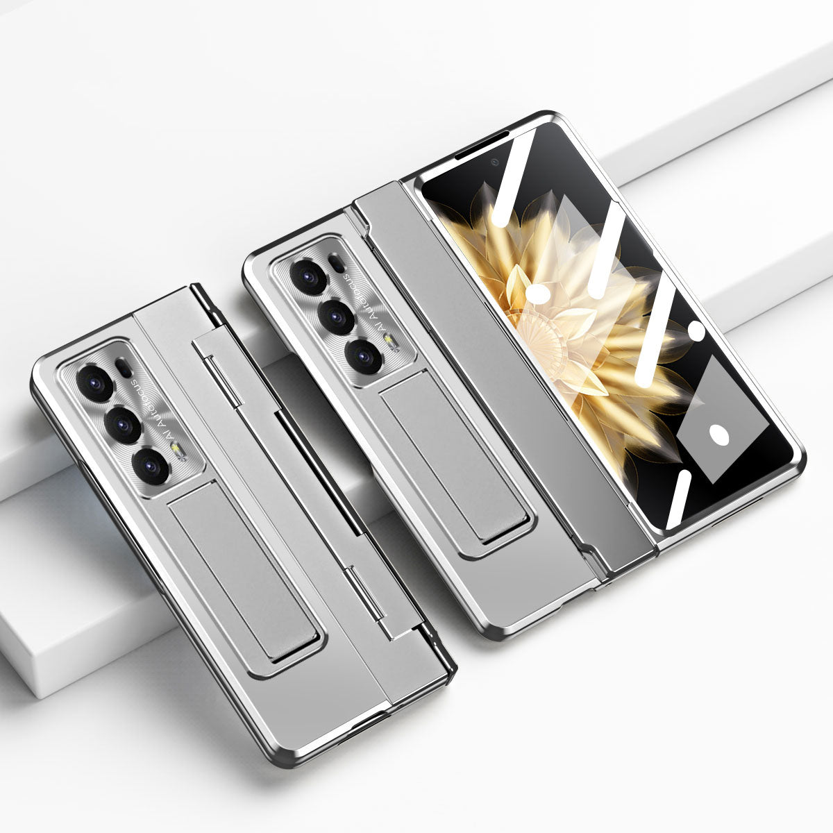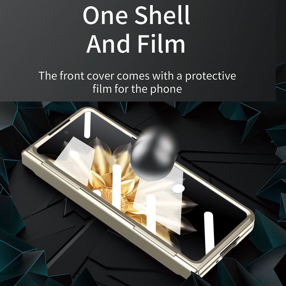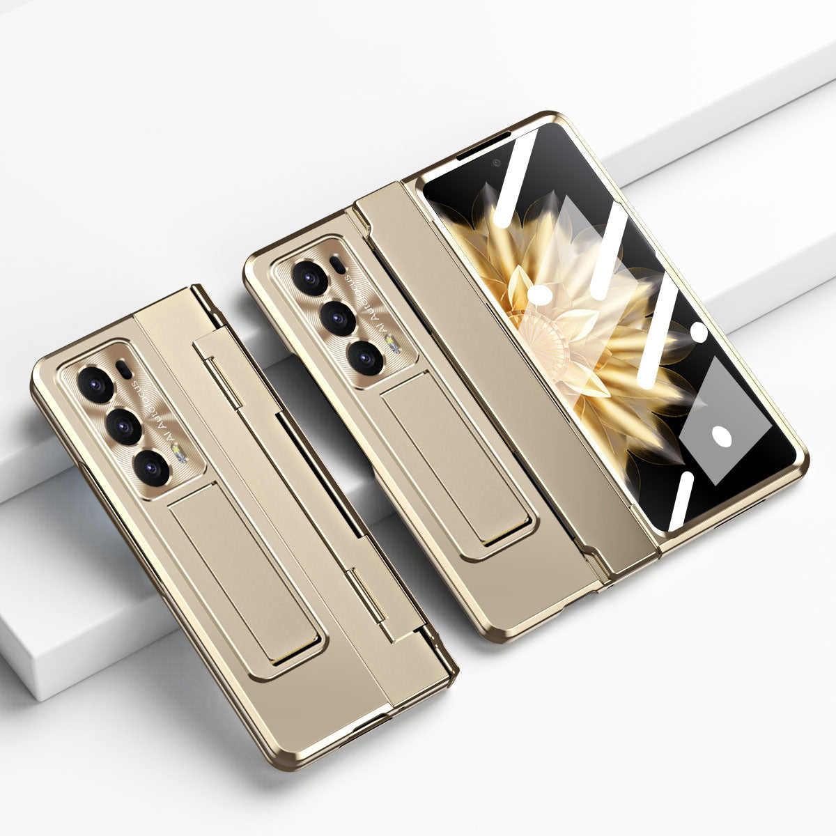 For Honor Magic V2 5G Hinge Protection Hard PC Case Kickstand Phone Cover with Tempered Glass Screen Film