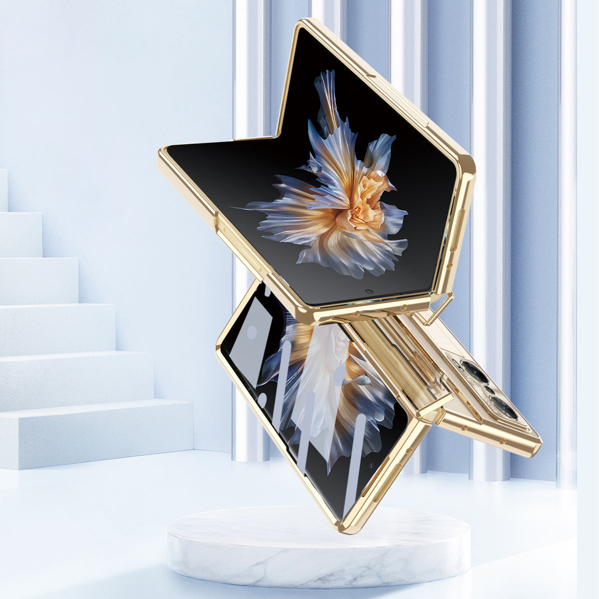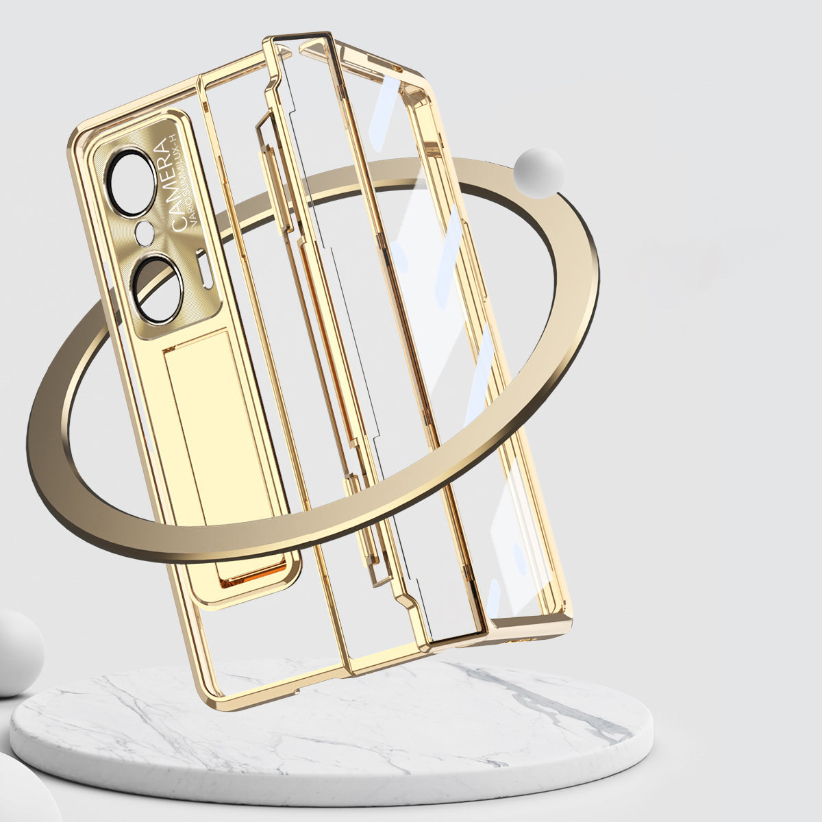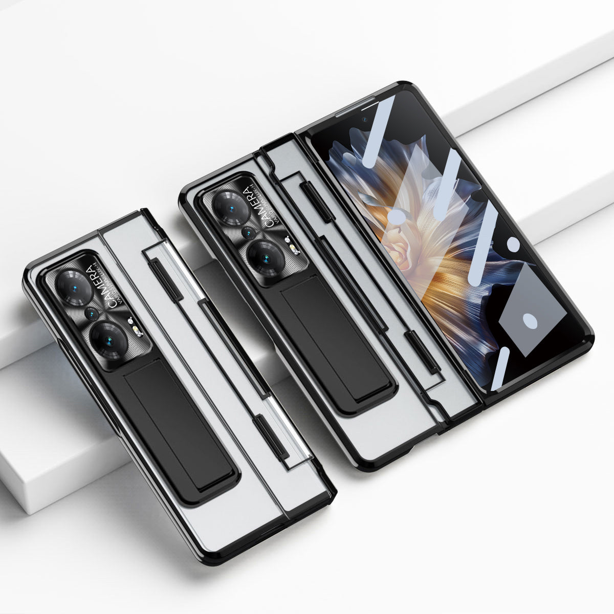 For Honor Magic Vs Ultimate 5G / Magic Vs 5G Anti-fall Transparent Phone Case Electroplating PC Folding Back Cover Kickstand with Tempered Glass Film