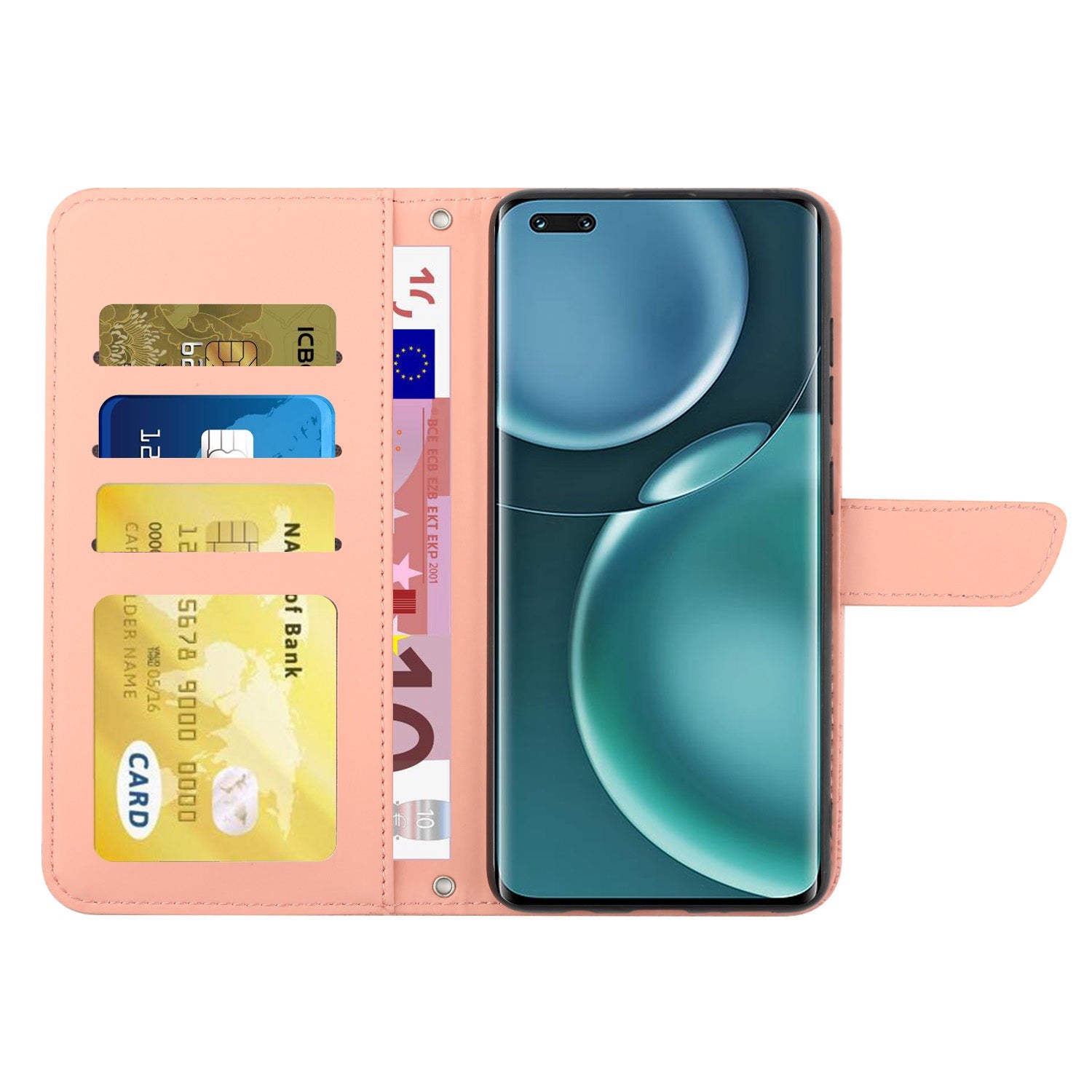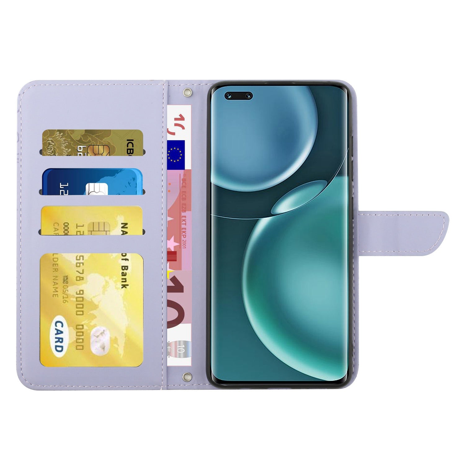 For Honor Magic4 Pro 5G Anti-fall Shockproof Flip Leather Case Butterfly Flowers Pattern Imprinted Wallet Scratch-proof Phone Cover Stand with Shoulder Strap