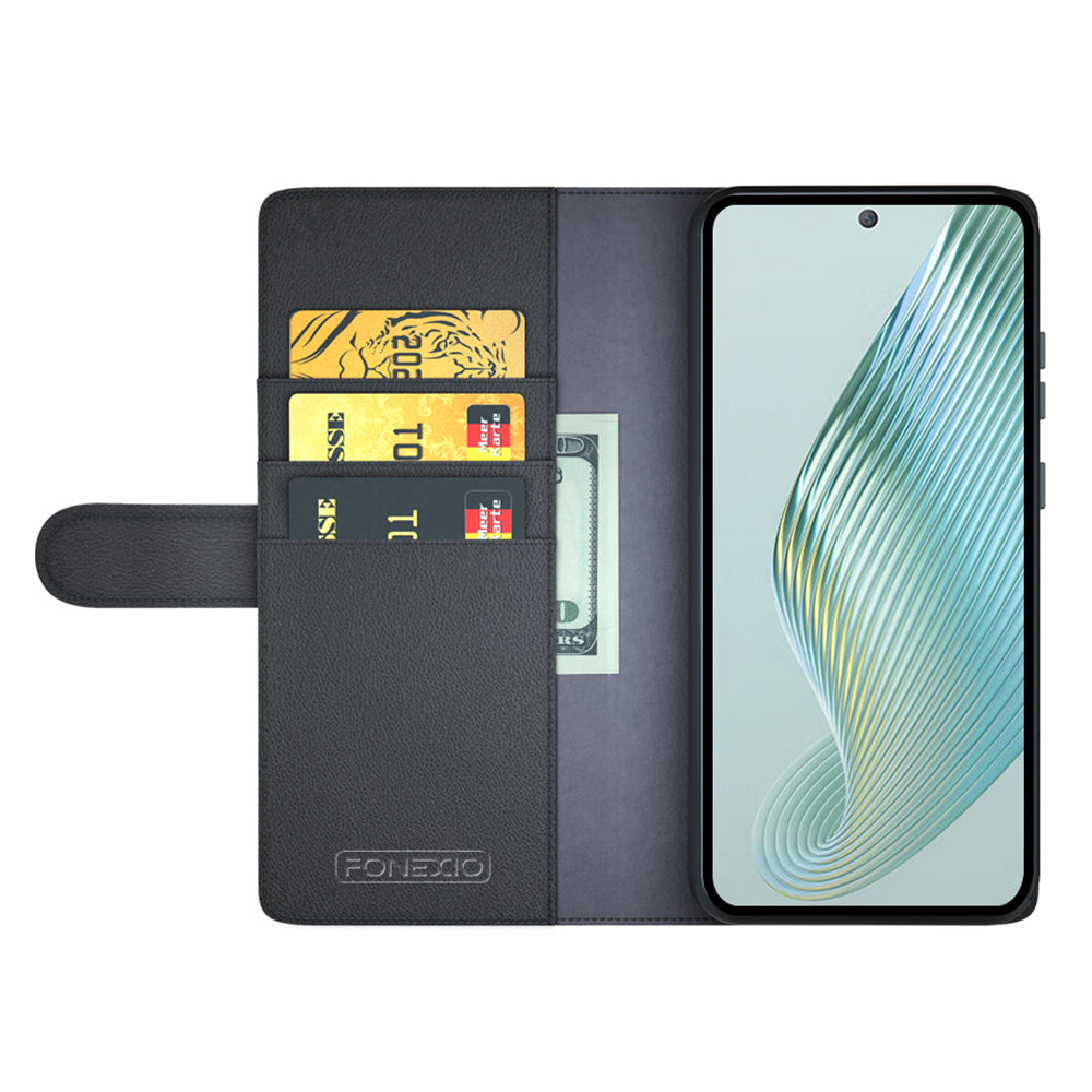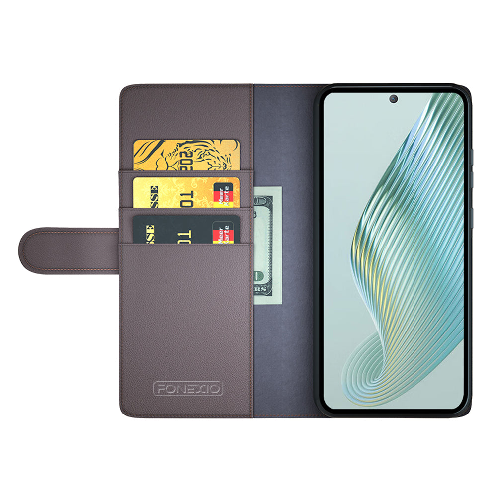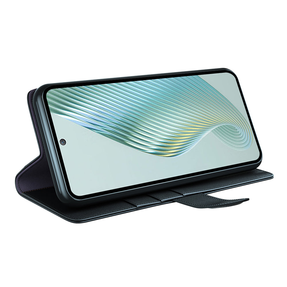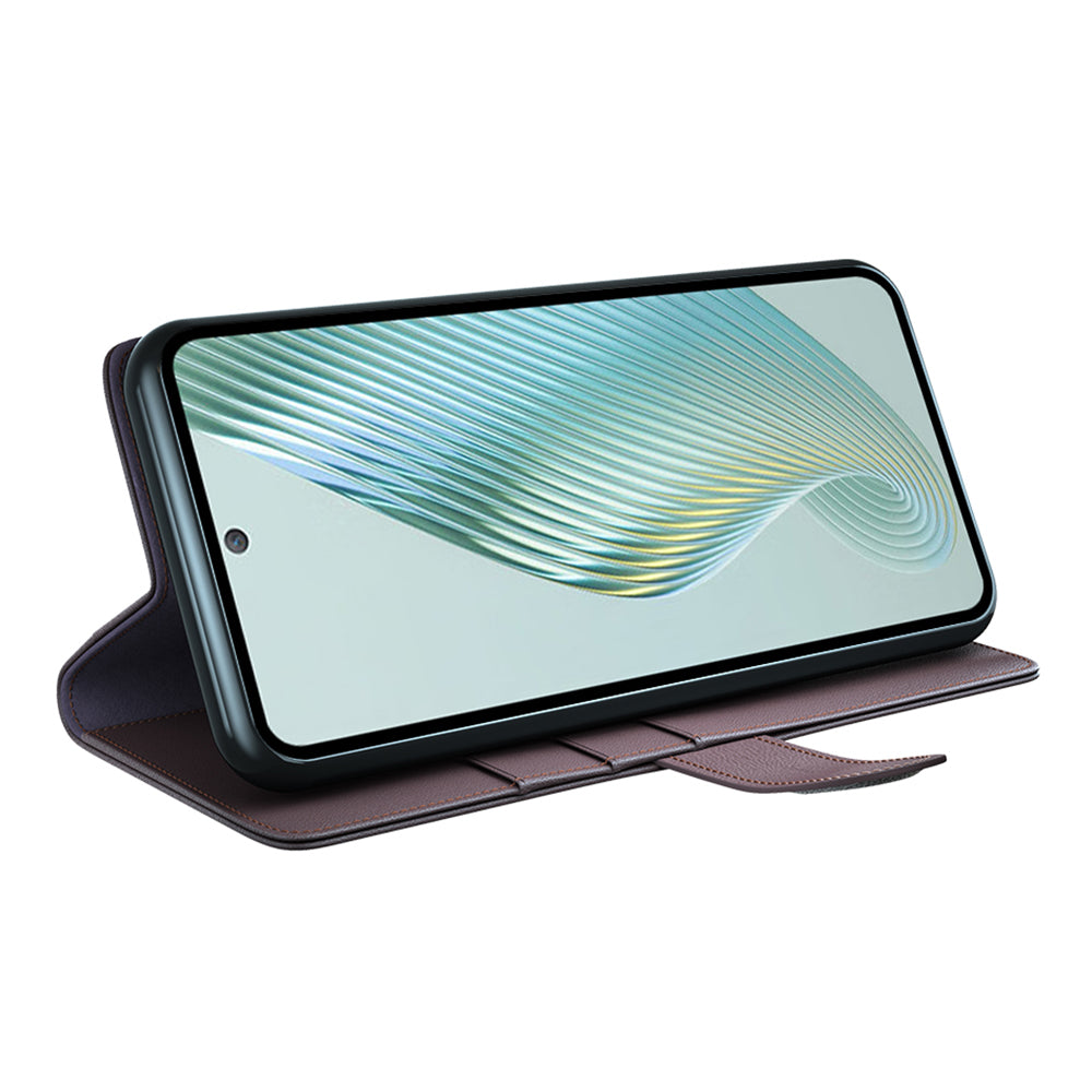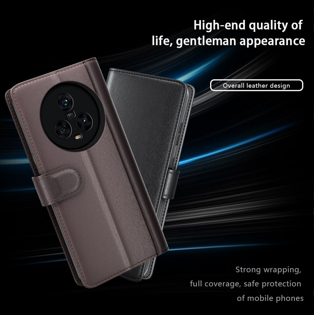 For Honor Magic5 Genuine Cow Leather Flip Cover Shockproof Wallet Phone Case with Stand
