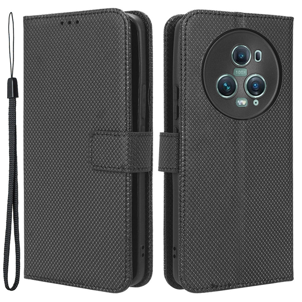 For Honor Magic5 Pro 5G Diamond Texture PU Leather Wallet Phone Case Support Stand Anti-drop Cover