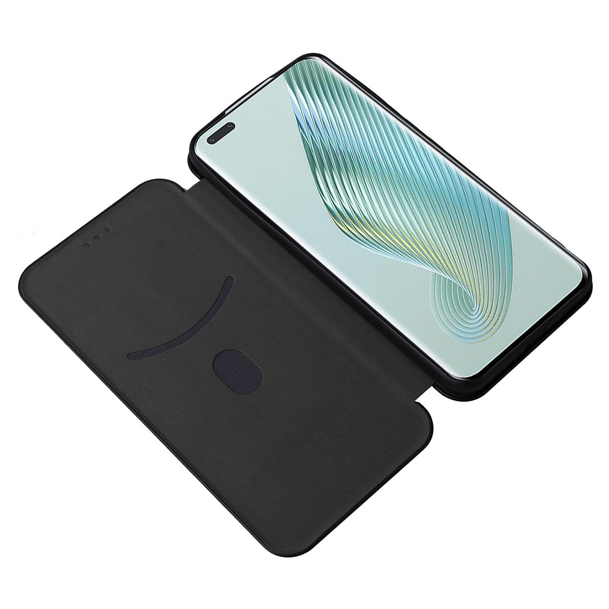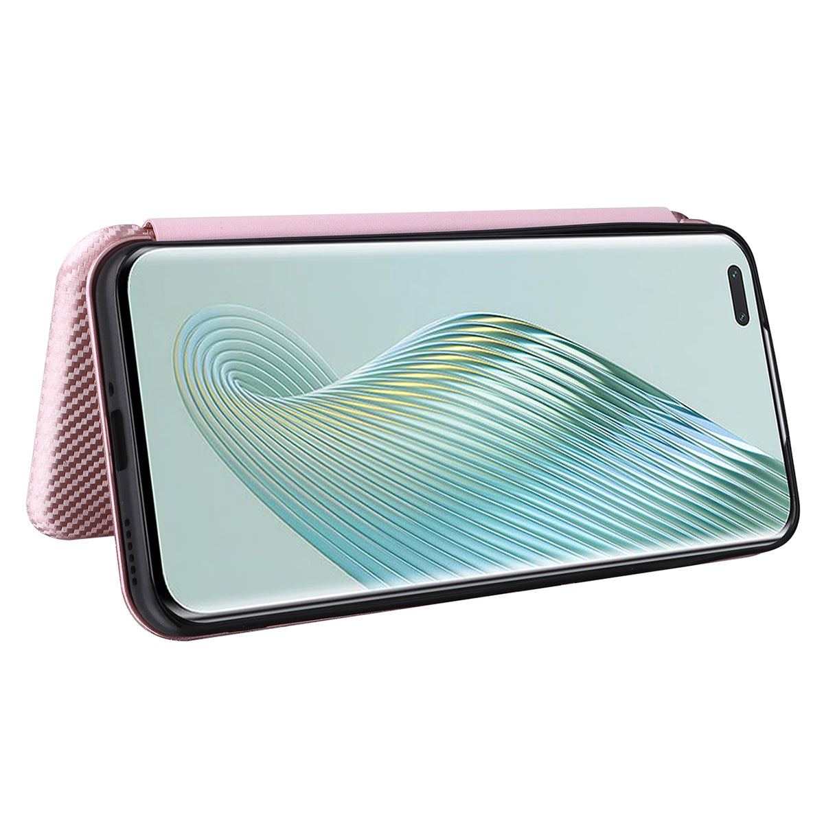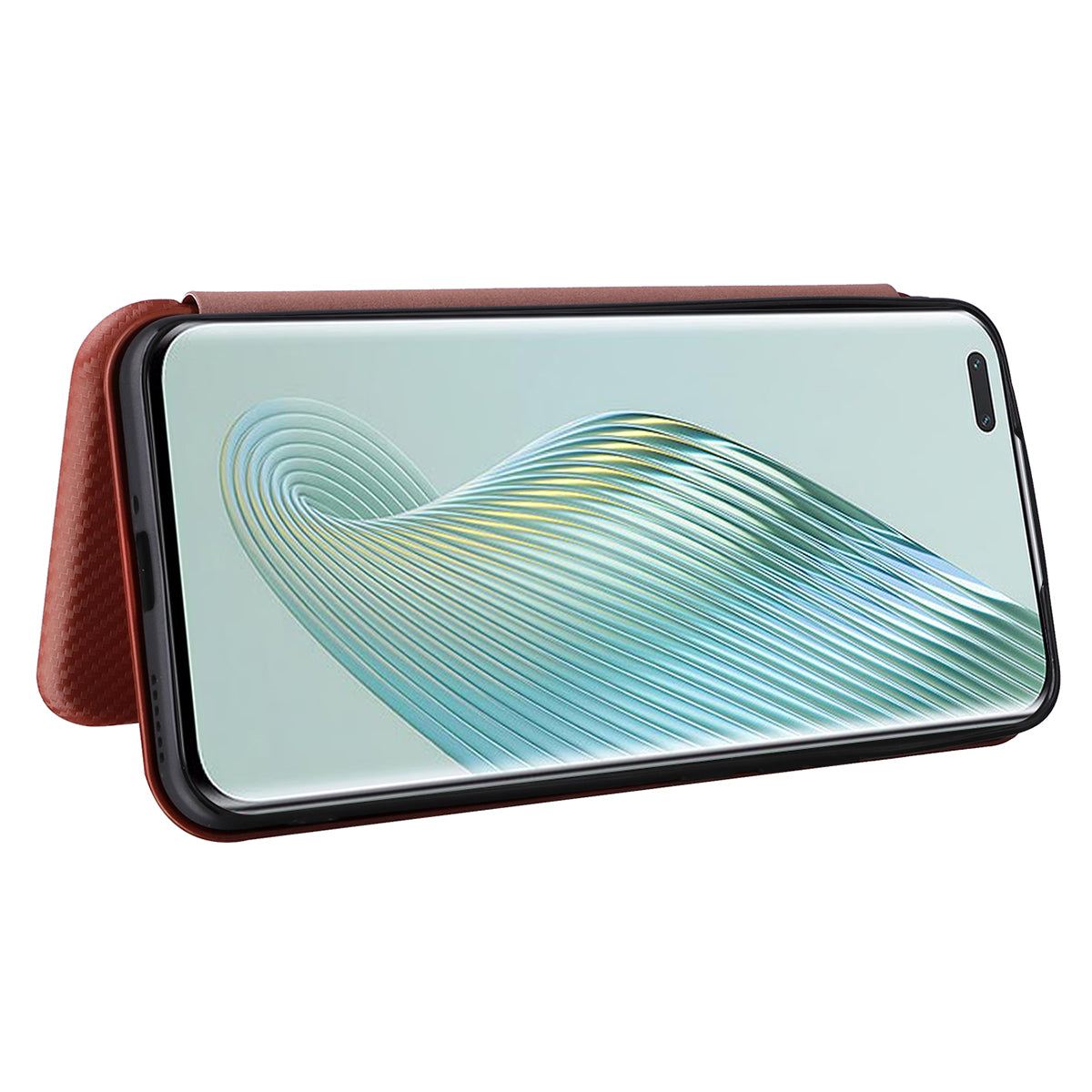 For Honor Magic5 Pro Carbon Fiber Texture Phone Case Leather Stand Cover with Card Slot