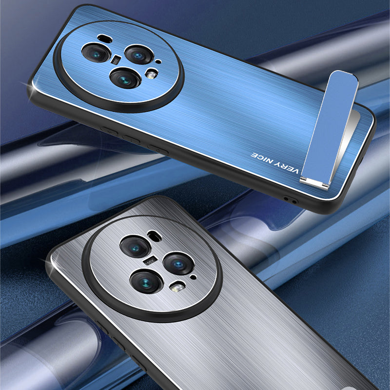 For Honor Magic5 Pro Kickstand Phone Case TPU + Aluminium Alloy Brushed Back Cover