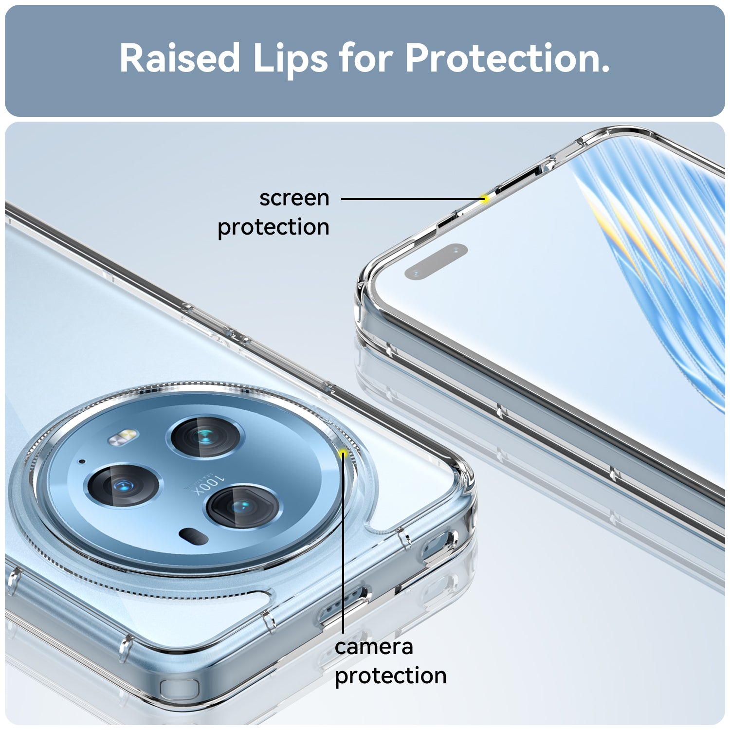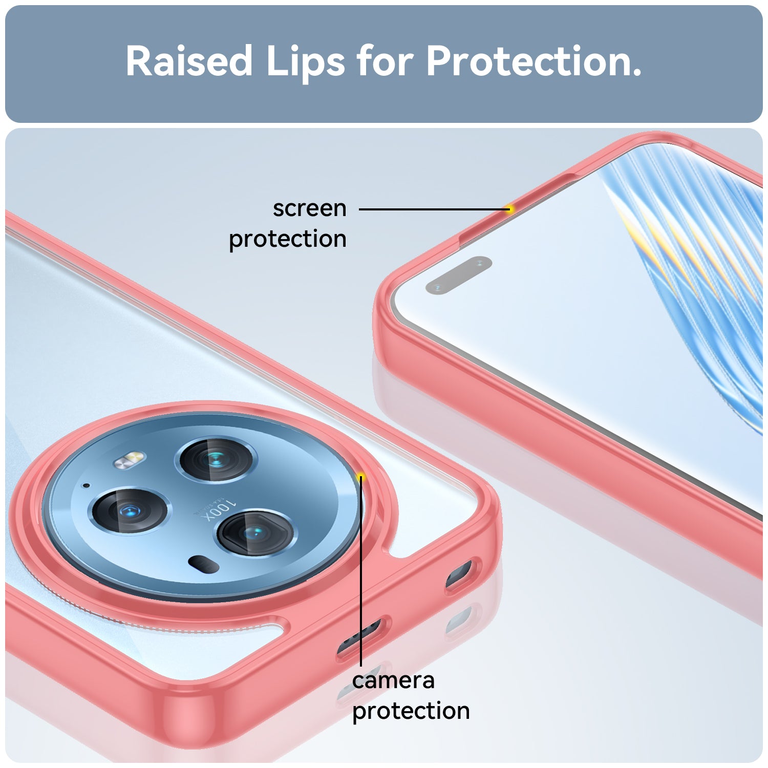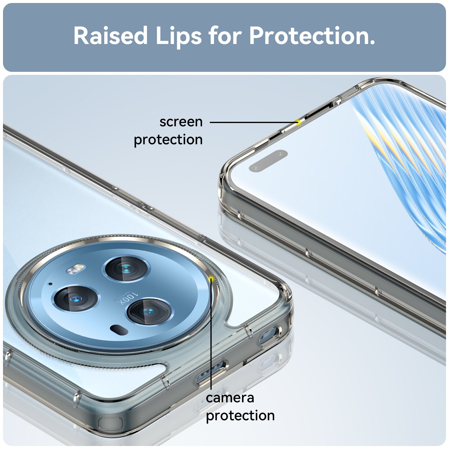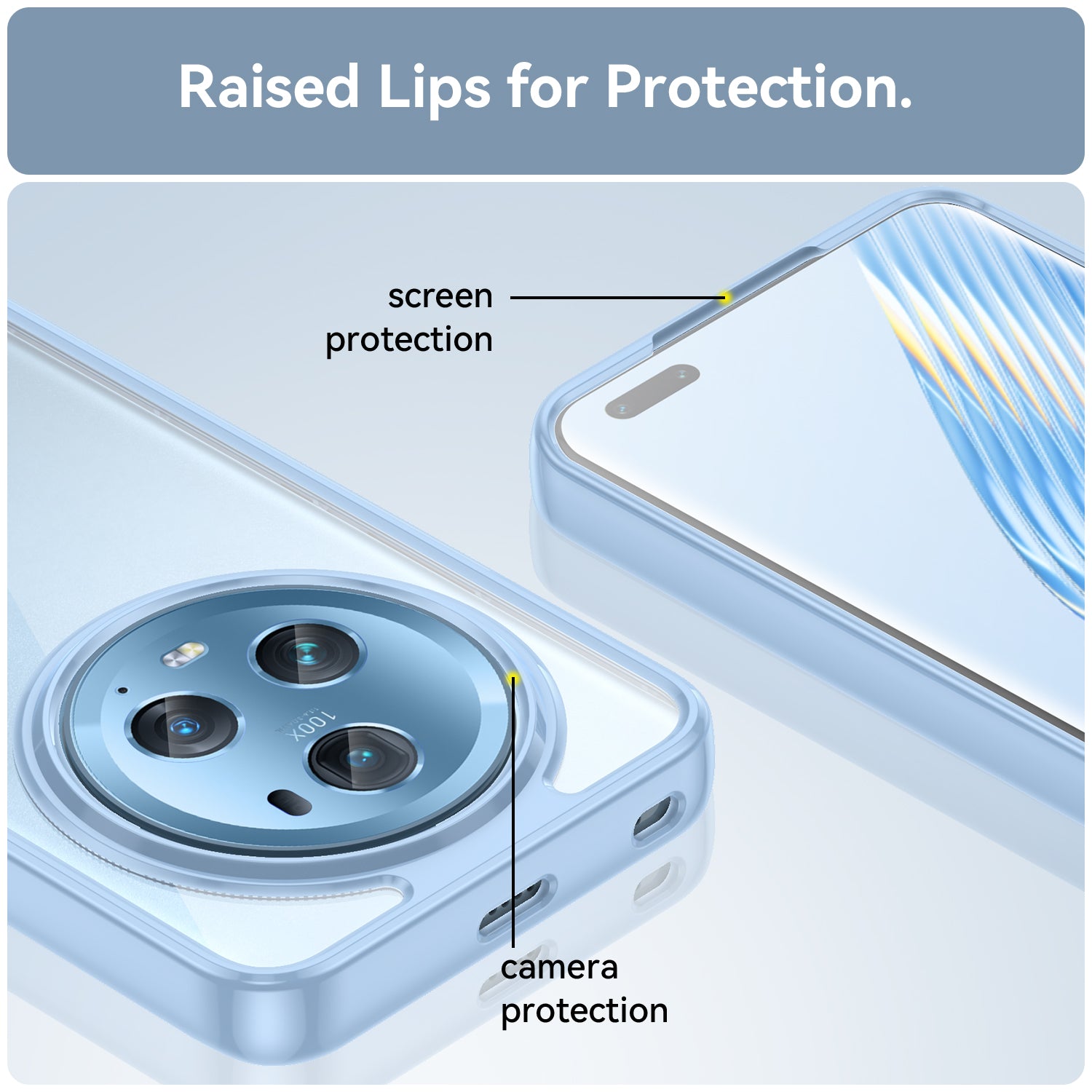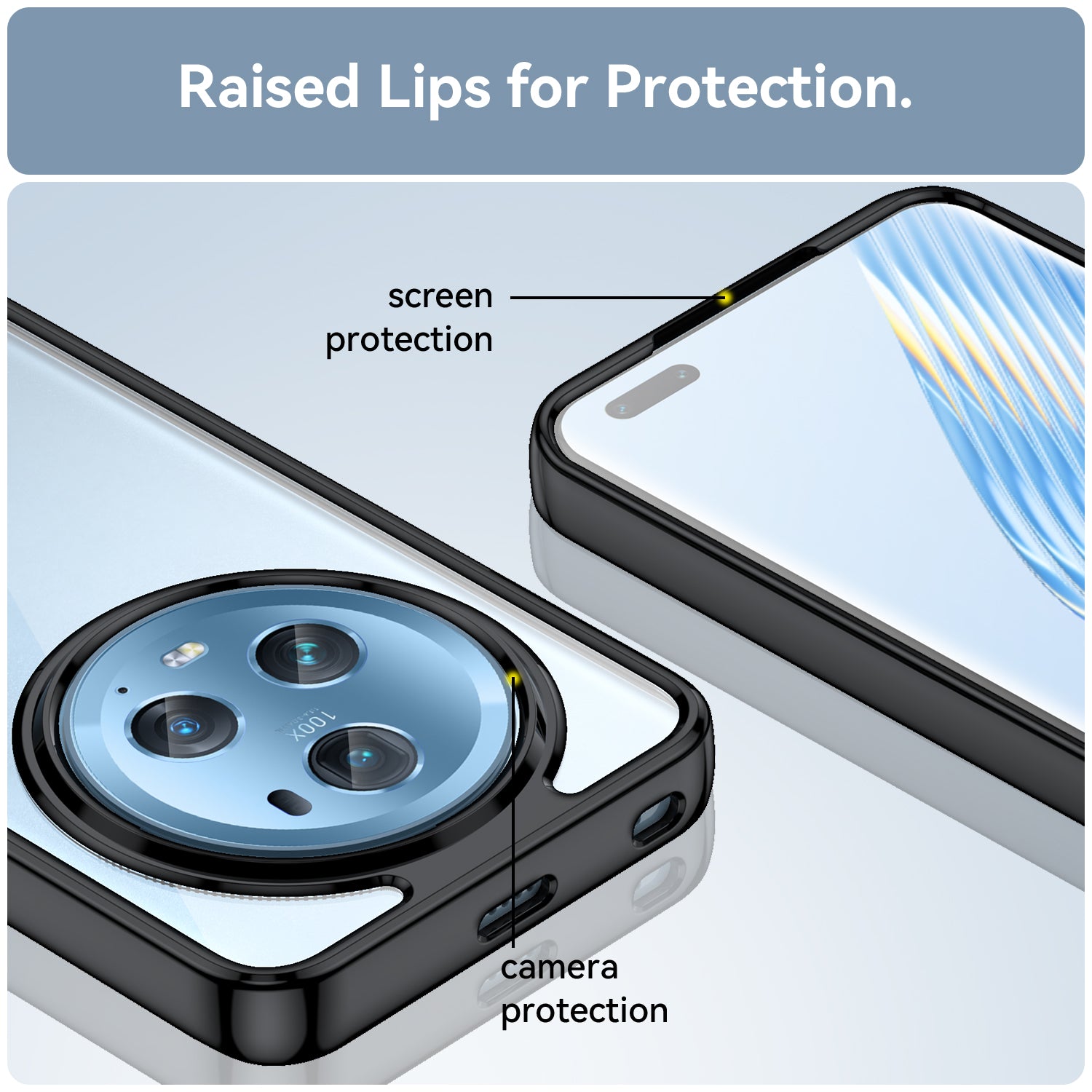 - Raised lip at back higher than the phone camera offers better protection