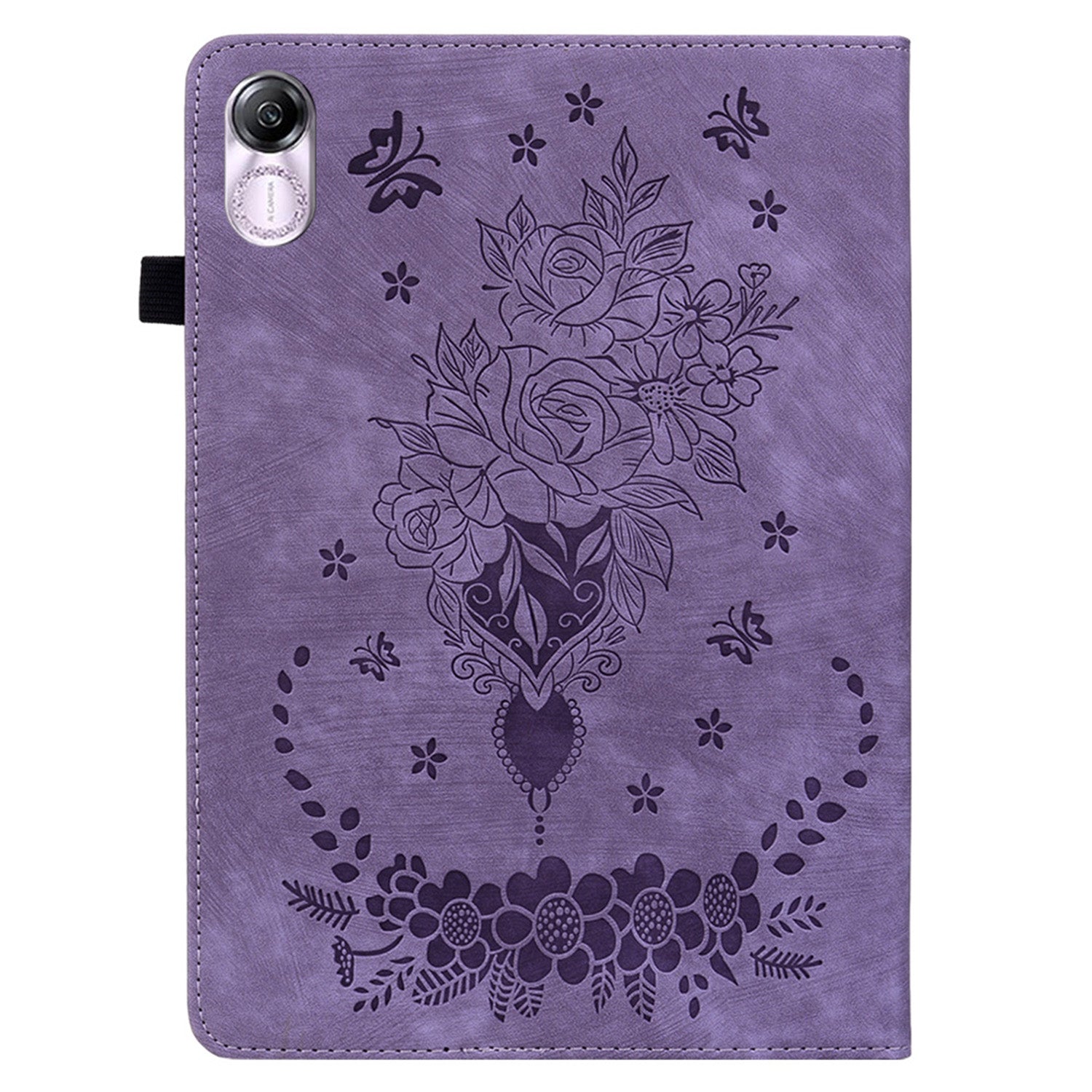 For Honor Pad X8 Pro / Pad X9 Cover Butterfly Rose Imprint PU Leather Tablet Case