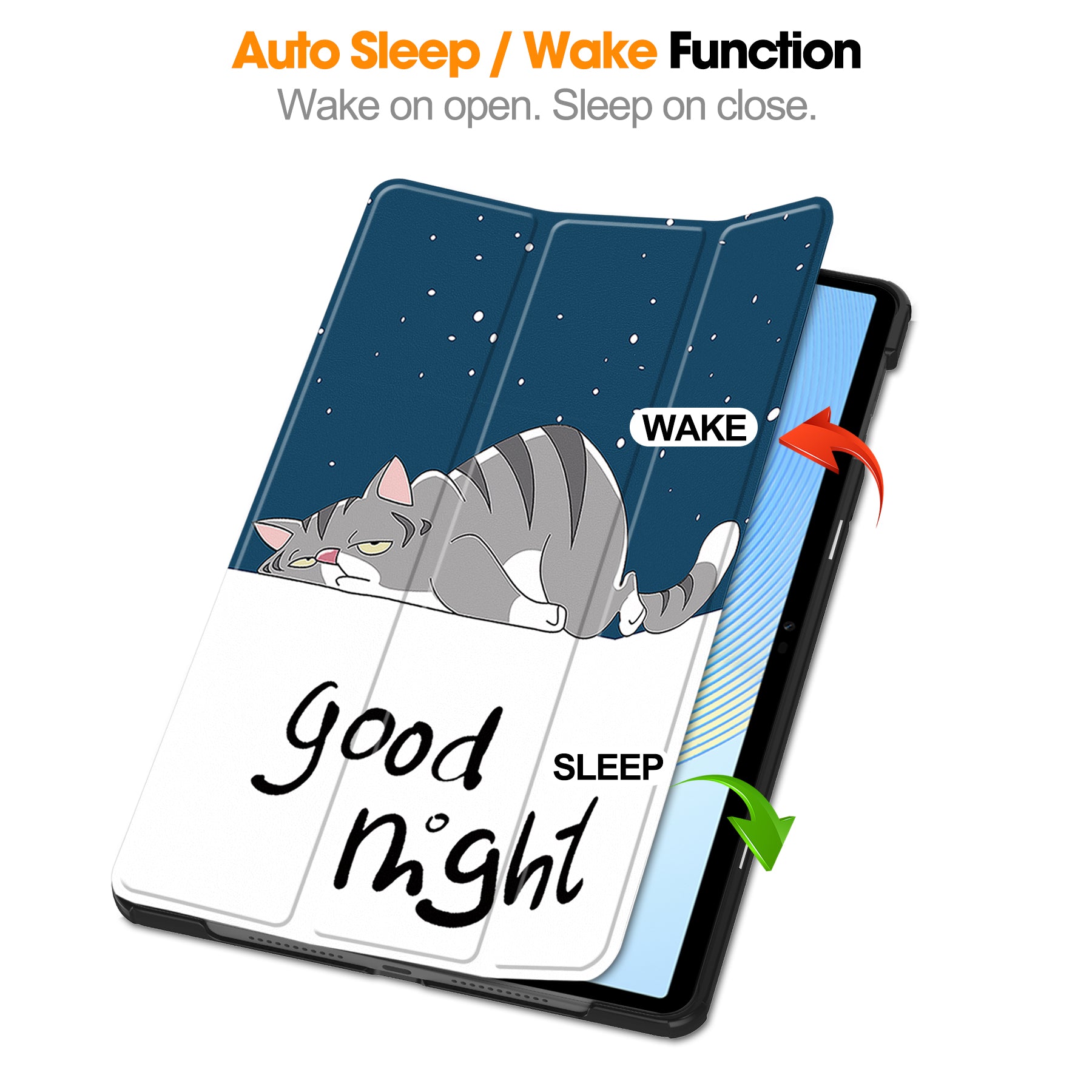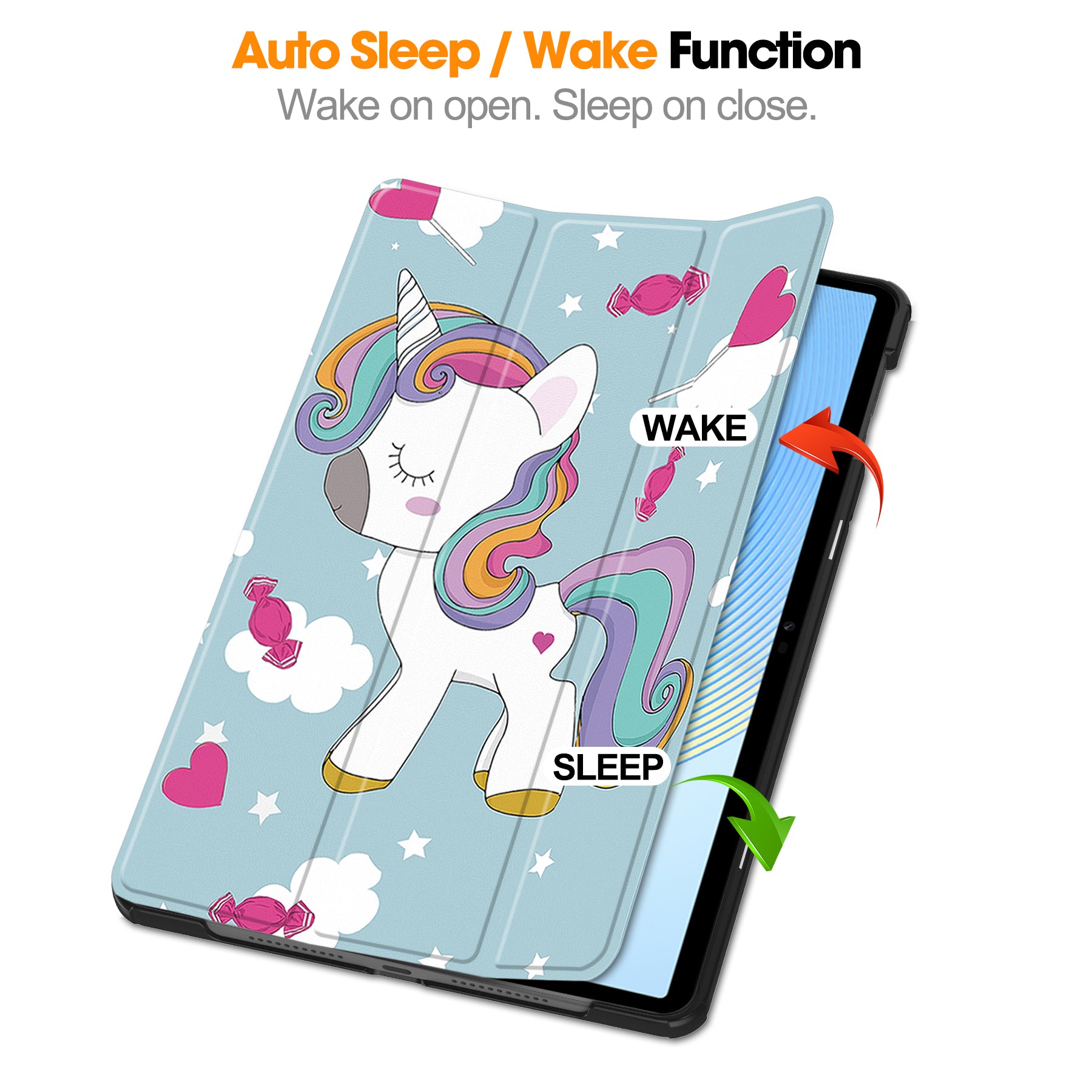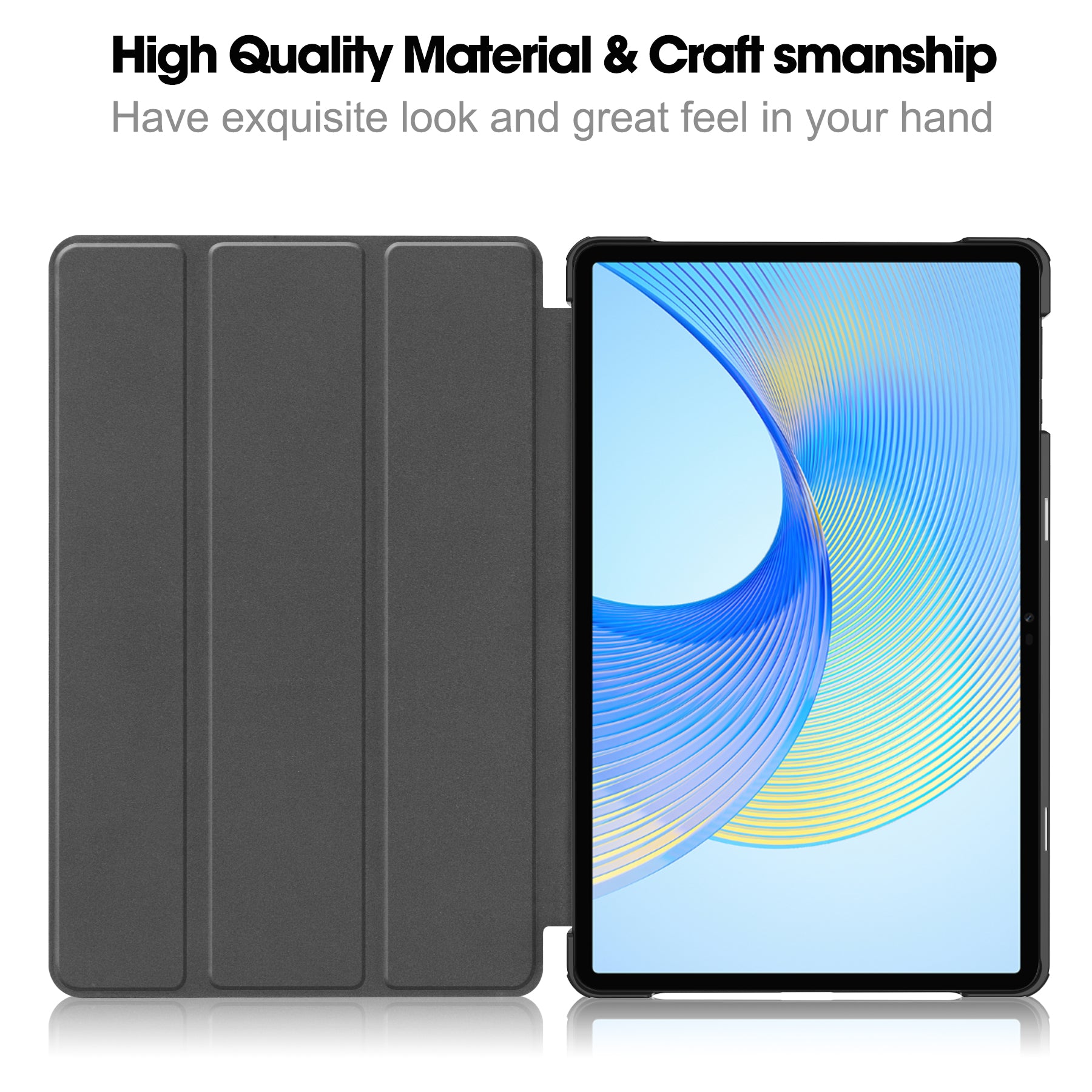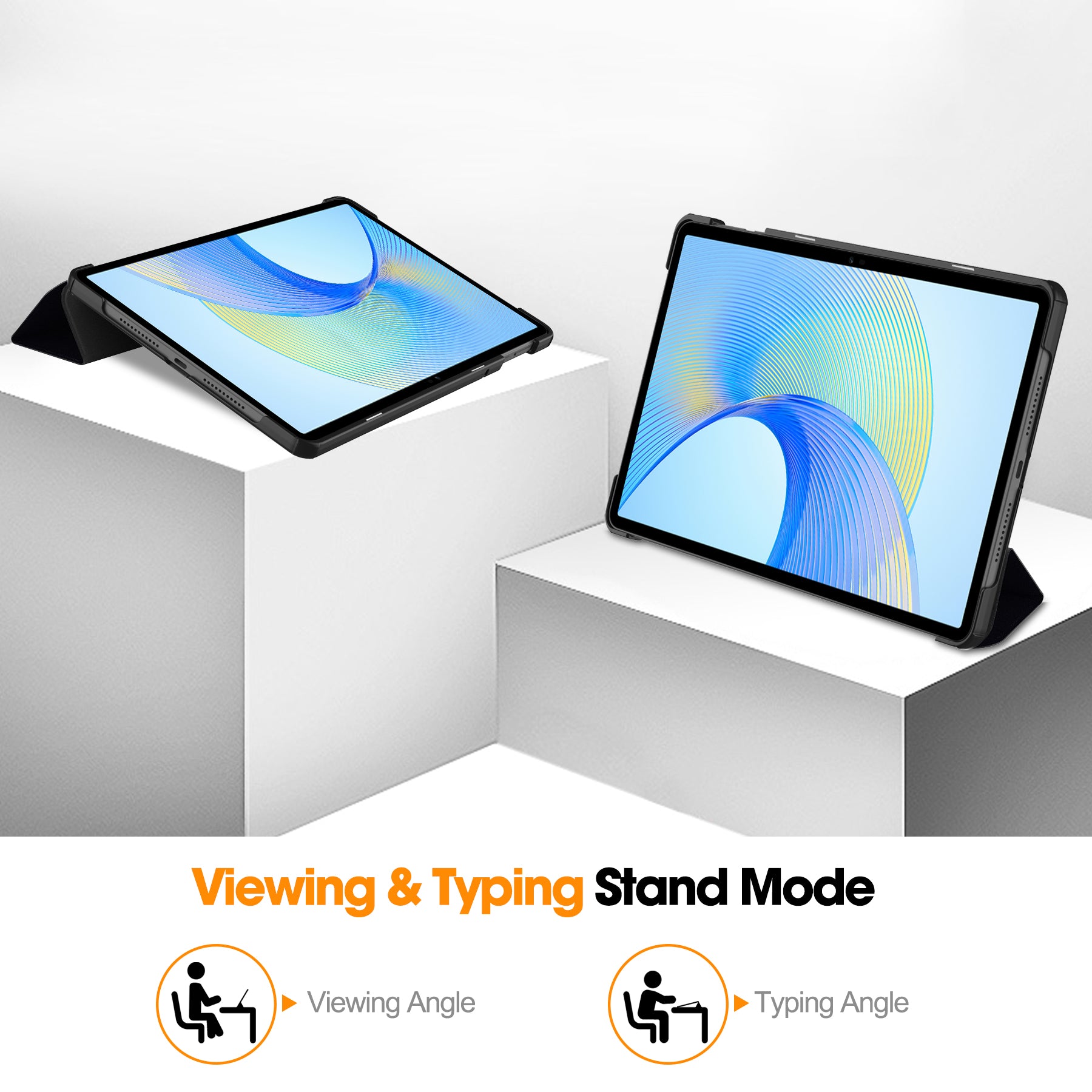 This tablet case adopts high-quality PU leather + PC with fine details, making it feel soft and delicate to the touch. The tri-fold cover with dual angles support offers a sturdy and versatile stand for viewing and typing.