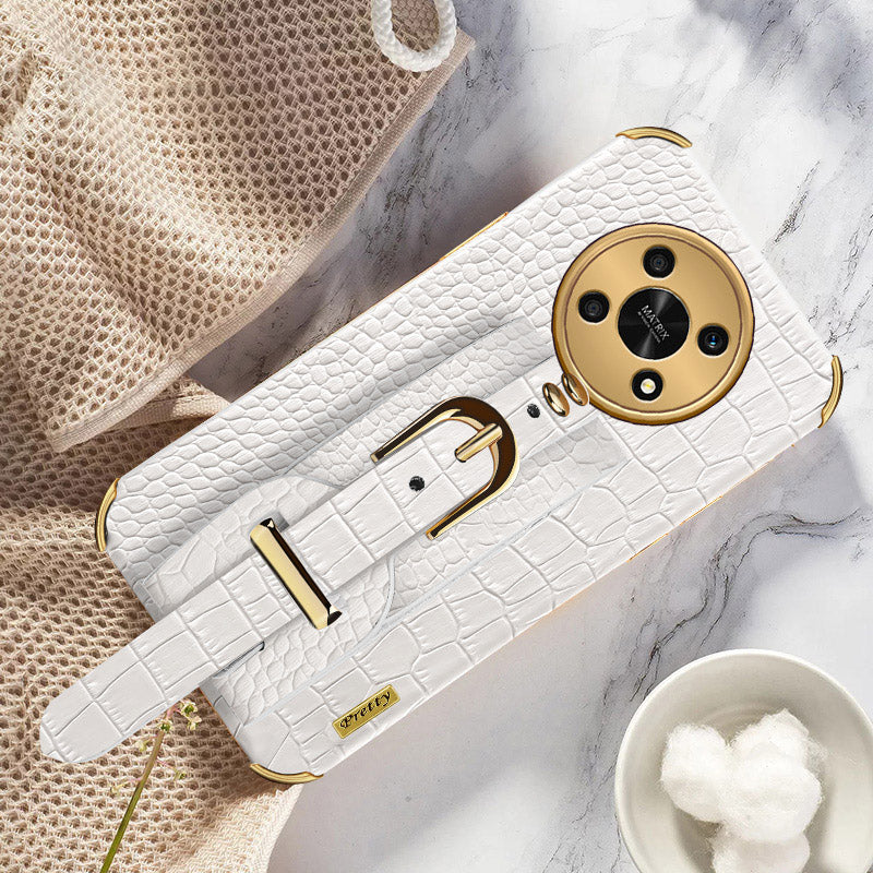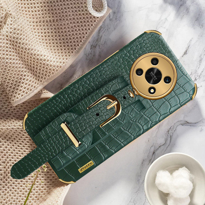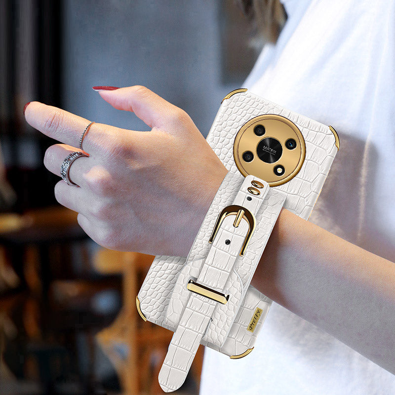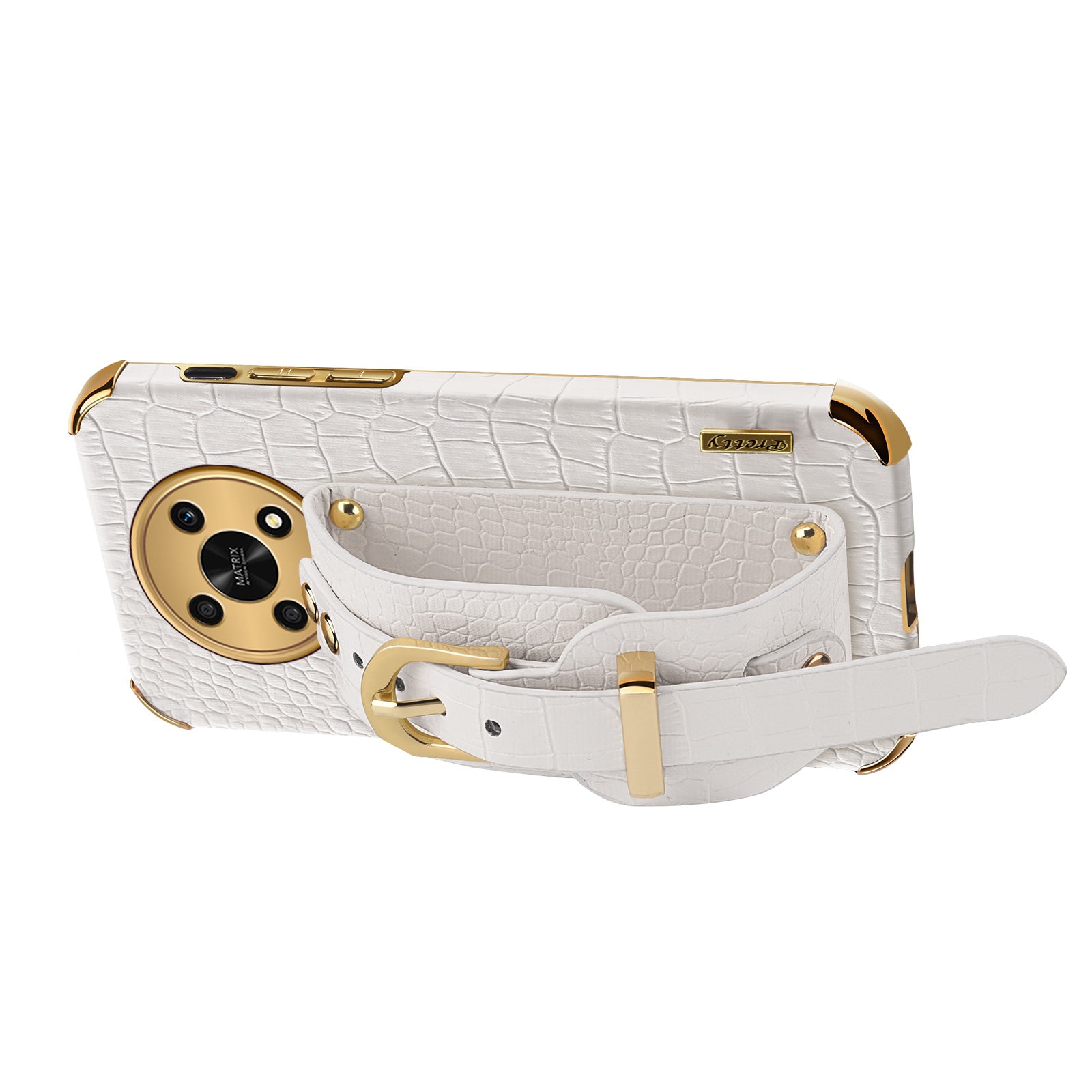 For Honor X30 5G Crocodile Texture Phone Cover 6D Electroplated Leather Coated TPU Anti-drop Case with Hand Strap