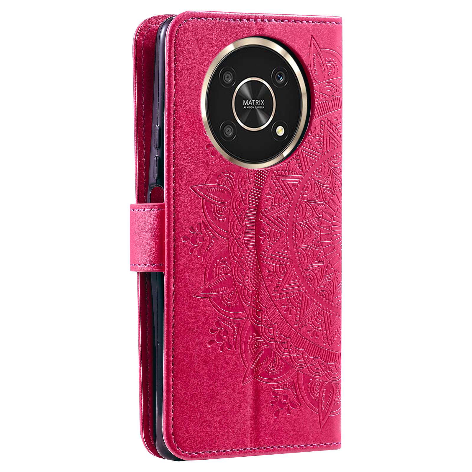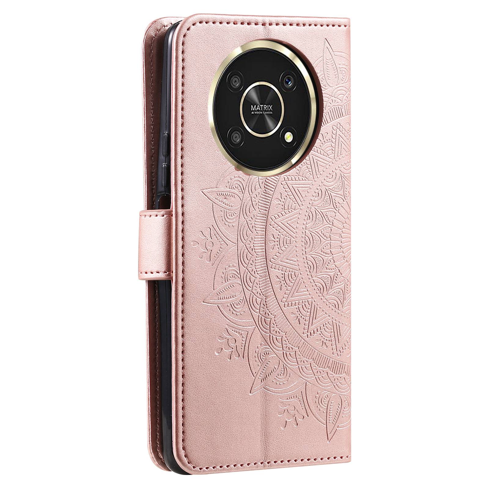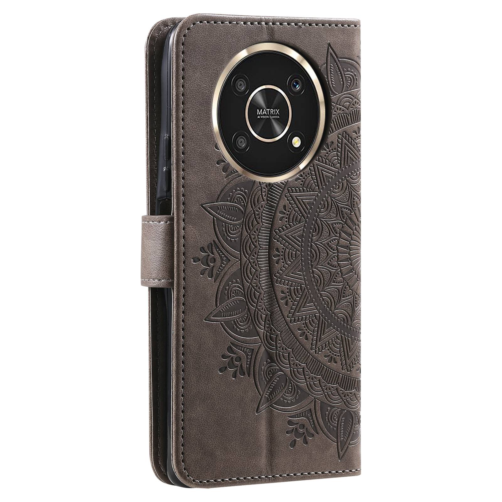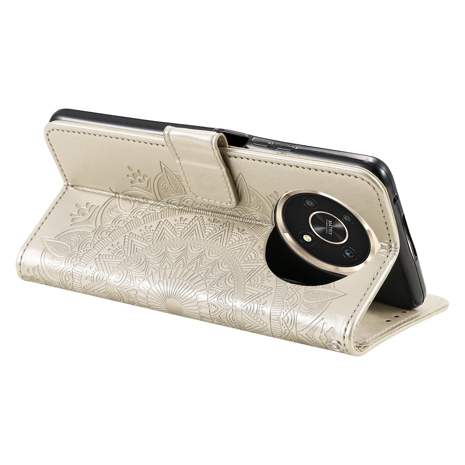 For Honor X30/X9 4G/5G Imprinted Mandala Flower Pattern Wrist Strap Wallet Case PU Leather Stand Feature Flip Cover