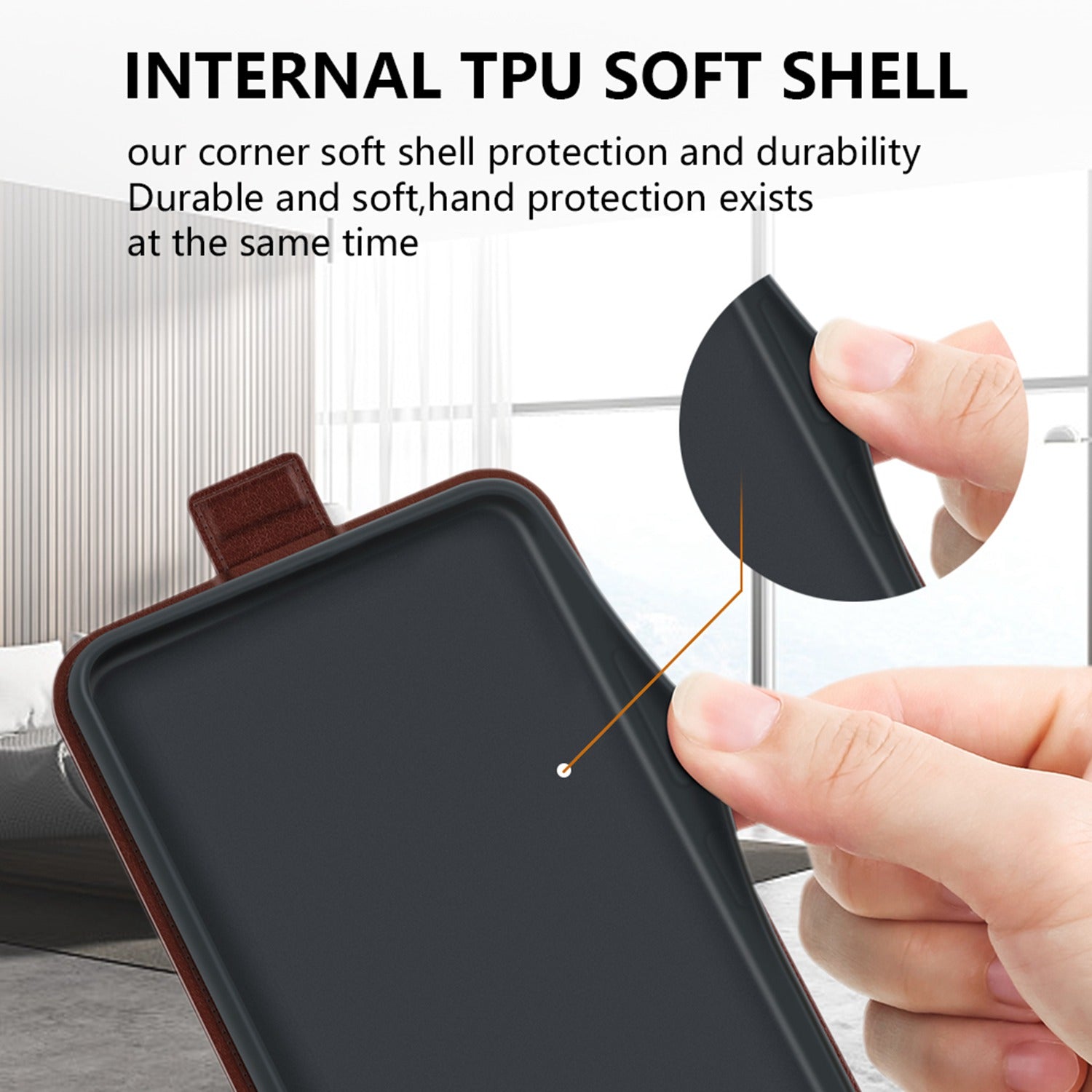 - Vertical-flip type crazy horse texture leather case, opens down for easy operation with one hand