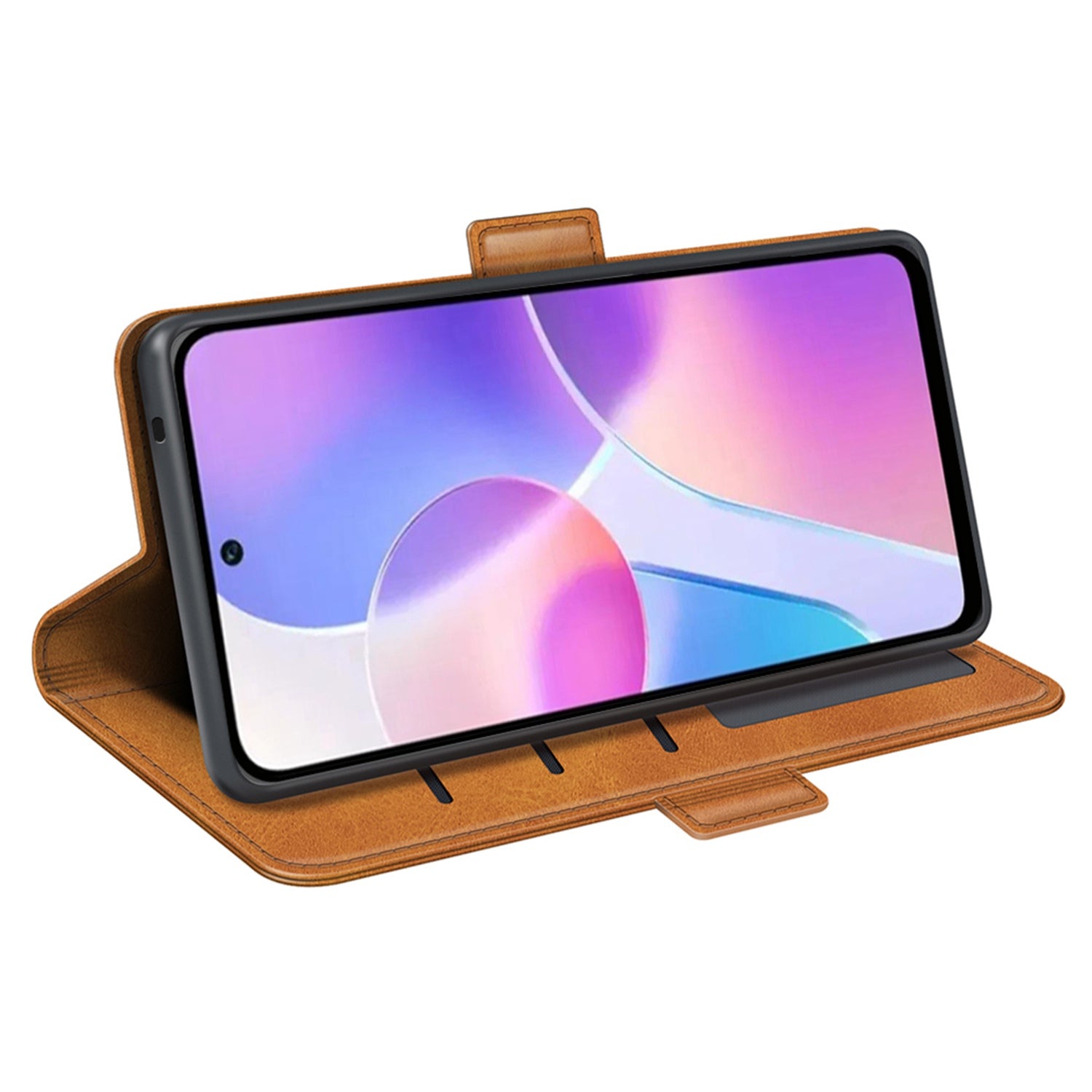 For Honor X40i 5G Shockproof Double Magnetic Clasp Phone Cover Anti-drop Textured PU Leather TPU Case with Wallet Stand