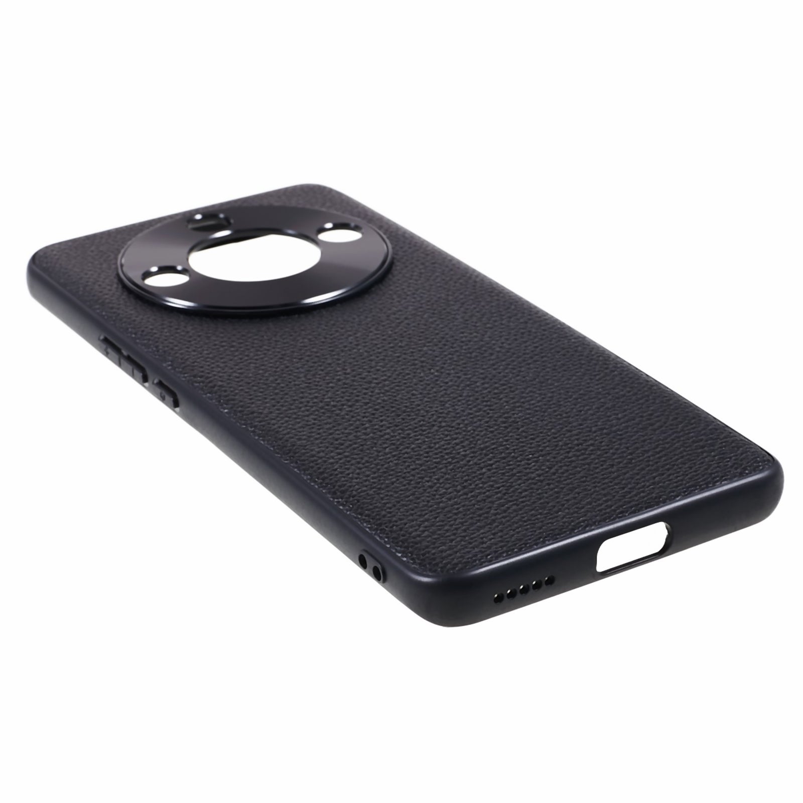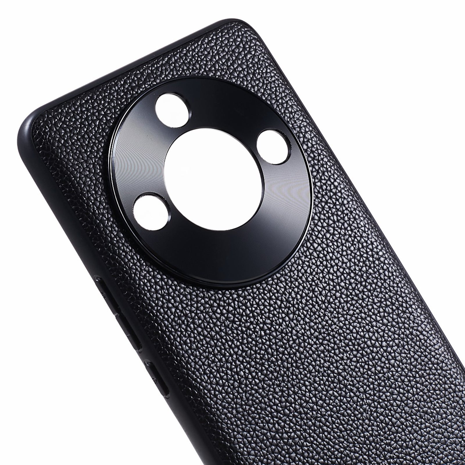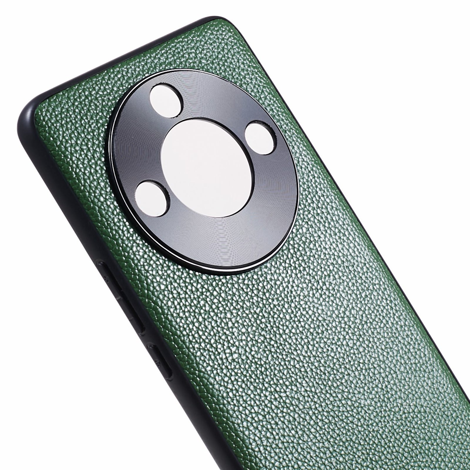 For Honor X50 Genuine Cow Leather Coated PC+TPU Case Metal Camera Frame Litchi Texture Phone Cover