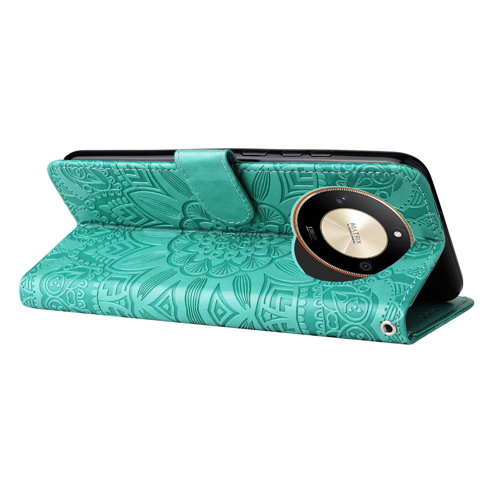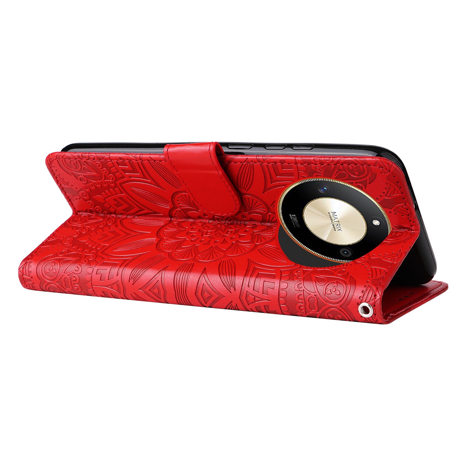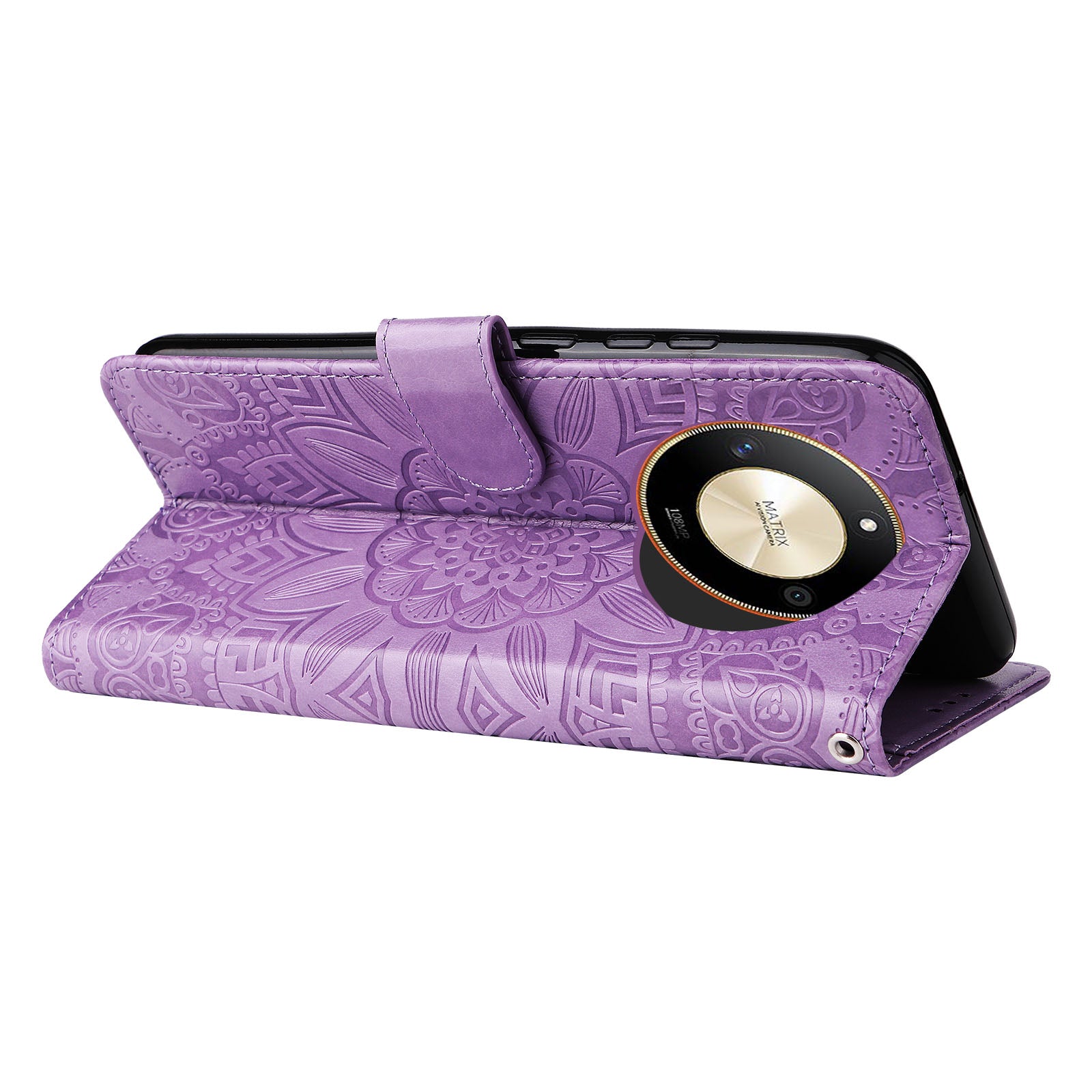 For Honor X50 PU Leather Wallet Stand Case Sunflower Imprinted Shockproof Phone Cover