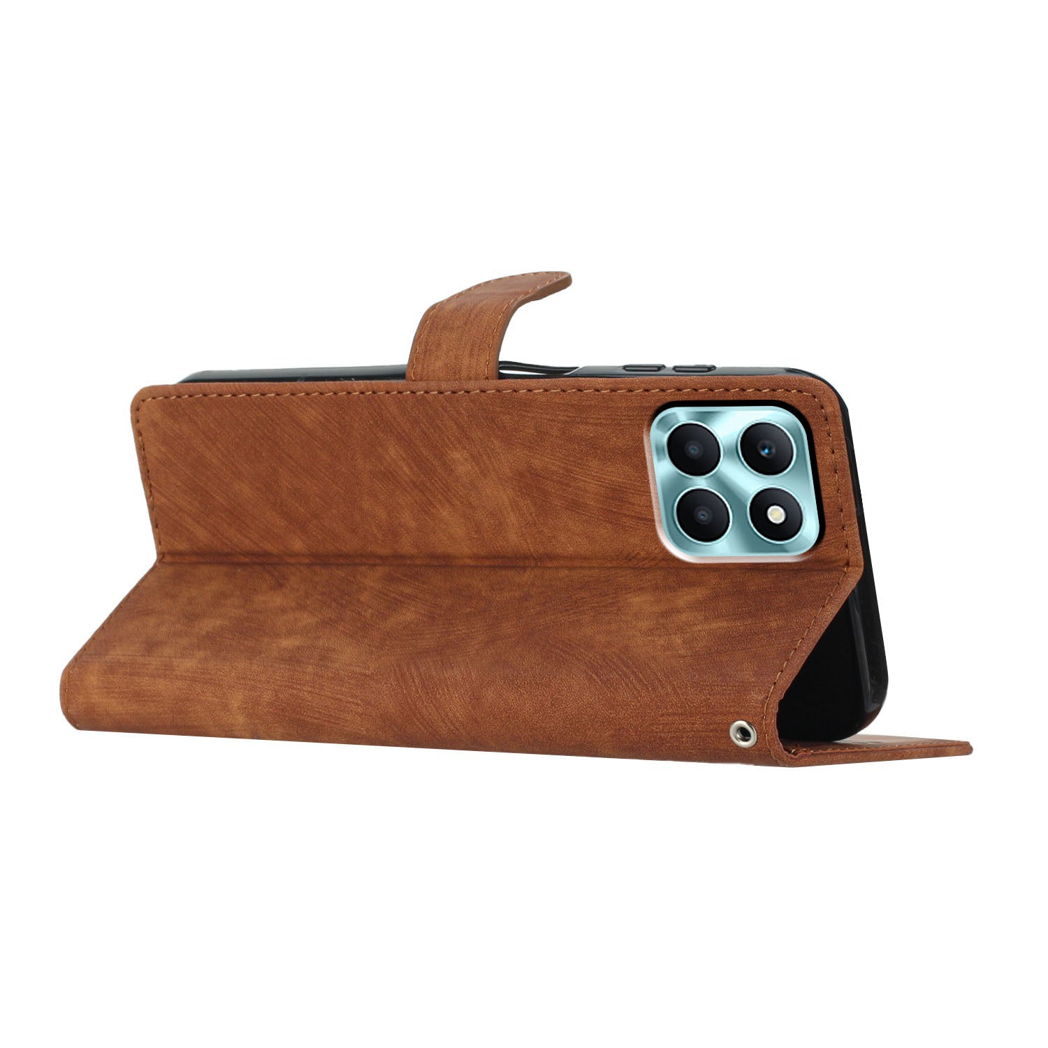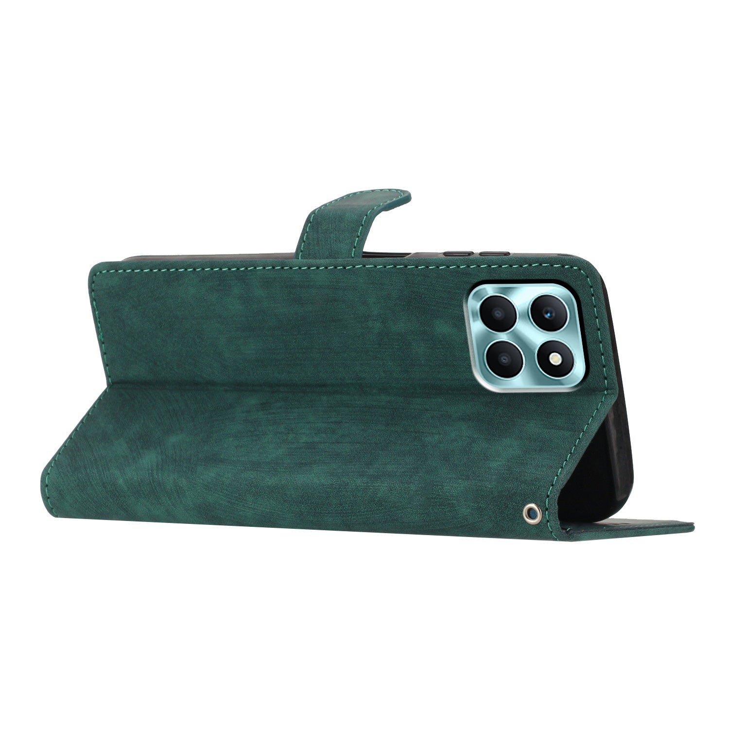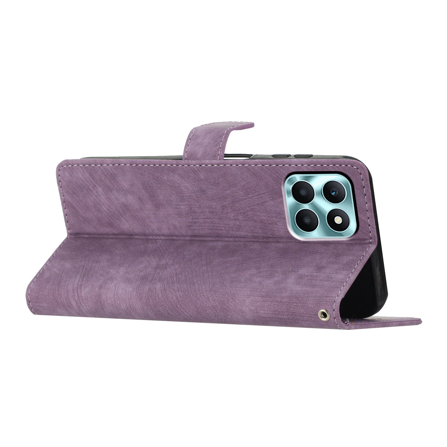 For Honor X6a 4G Case Skin-touch Leather Cover Wallet Stand Solid Color Phone Shell