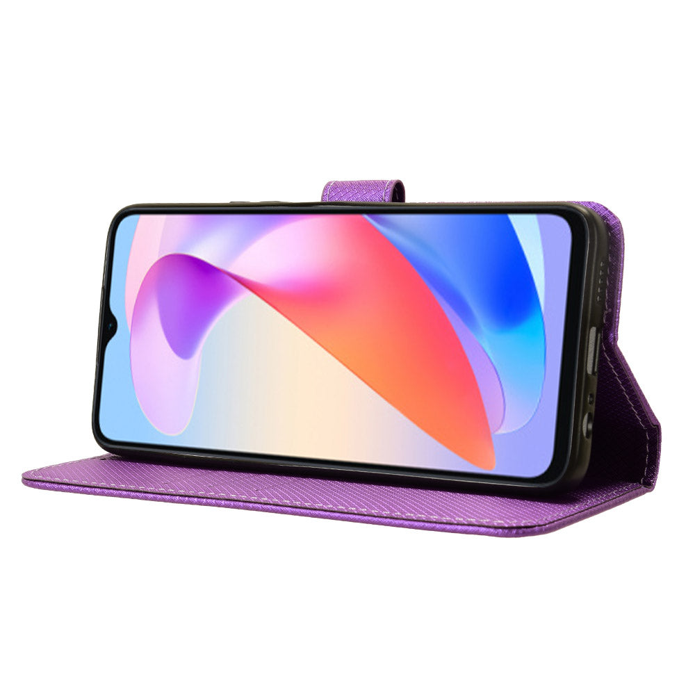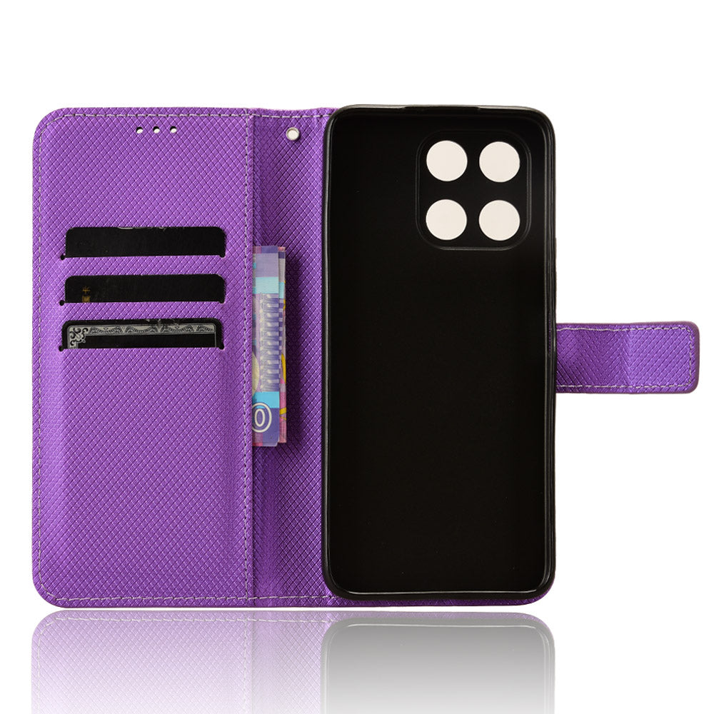 For Honor X6a 4G PU Leather Phone Case Diamond Texture Stand Protective Cell Phone Cover