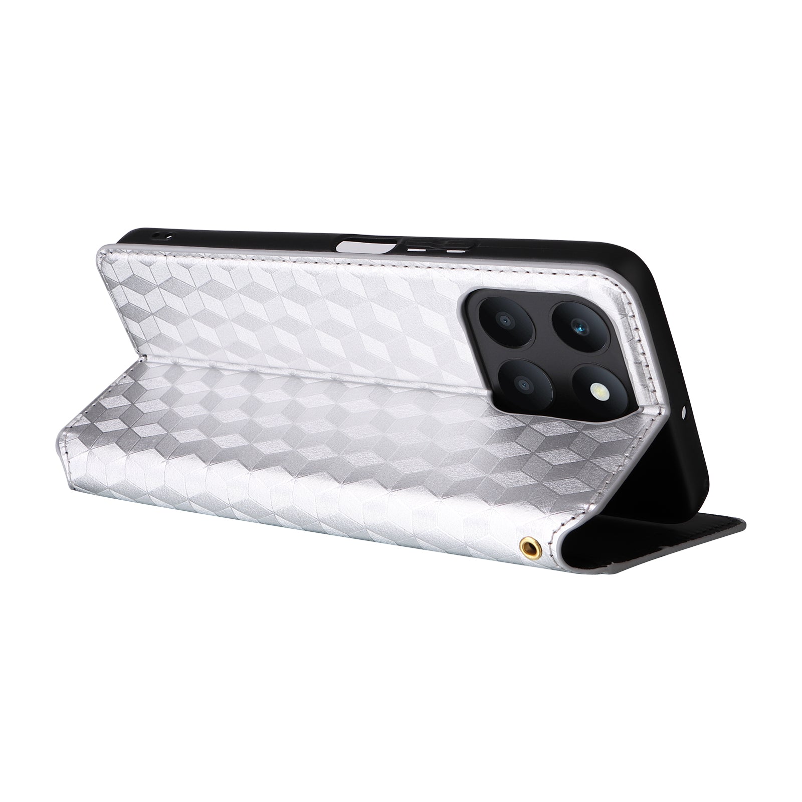 For Honor X6a 4G Slim-Fit PU Leather Stand Cover Rhombus Imprinted Wallet Phone Case Shell