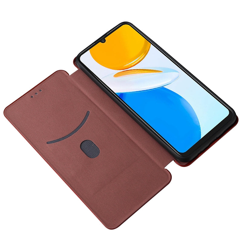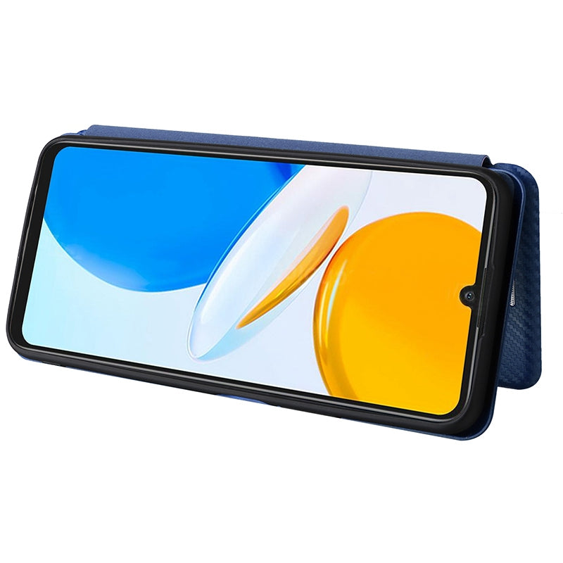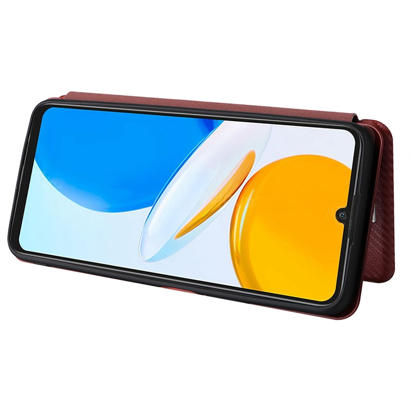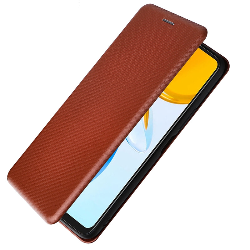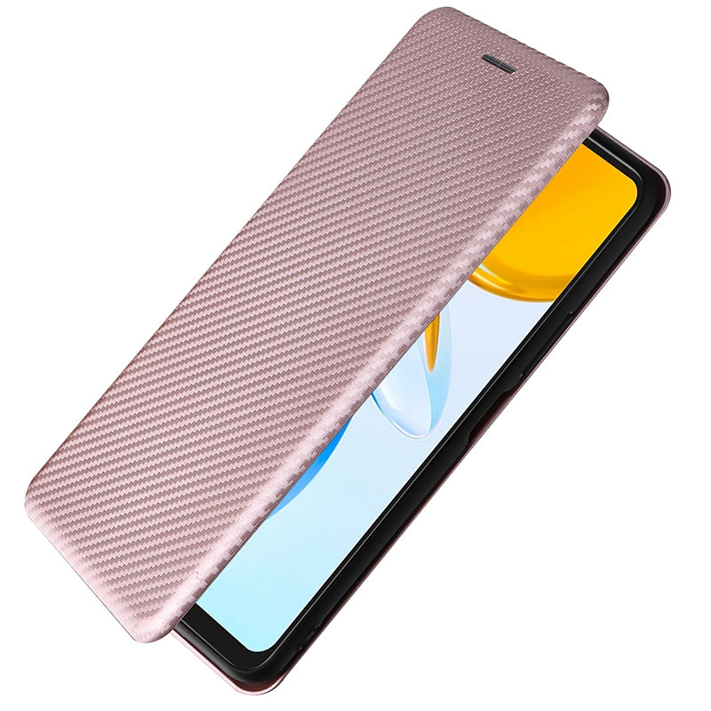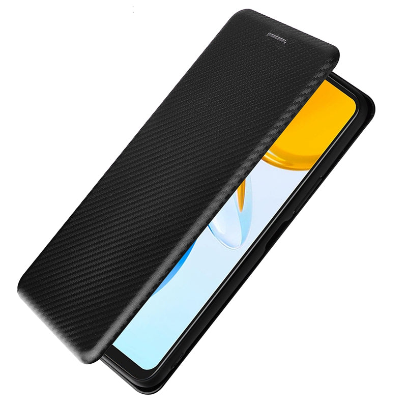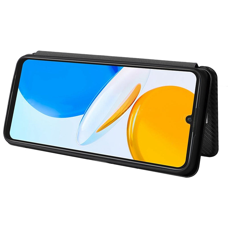 For Honor X7 Carbon Fiber Texture Folio Flip Anti-scratch PU Leather Case Magnetic Auto-absorbed Stand Phone Cover