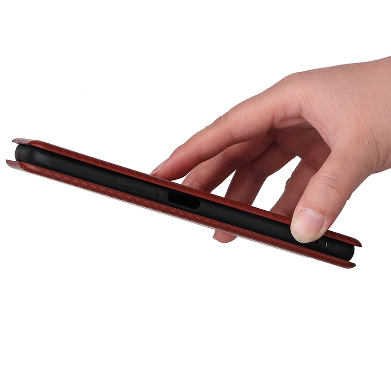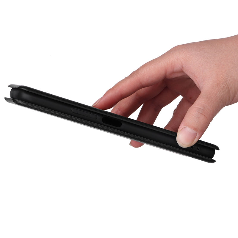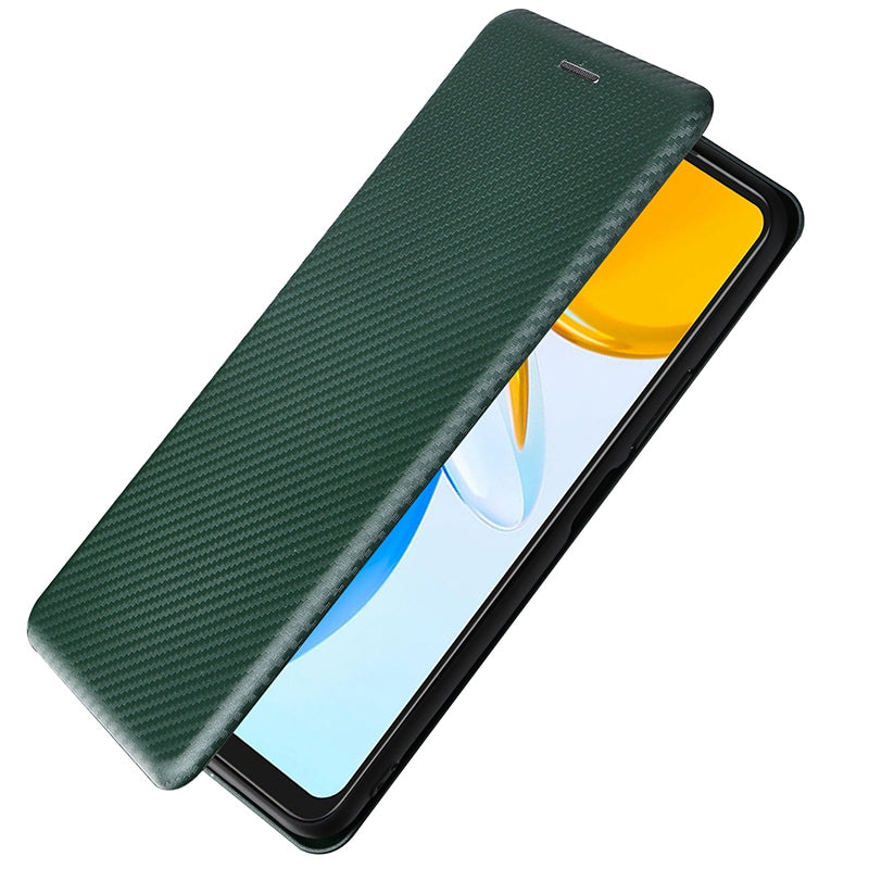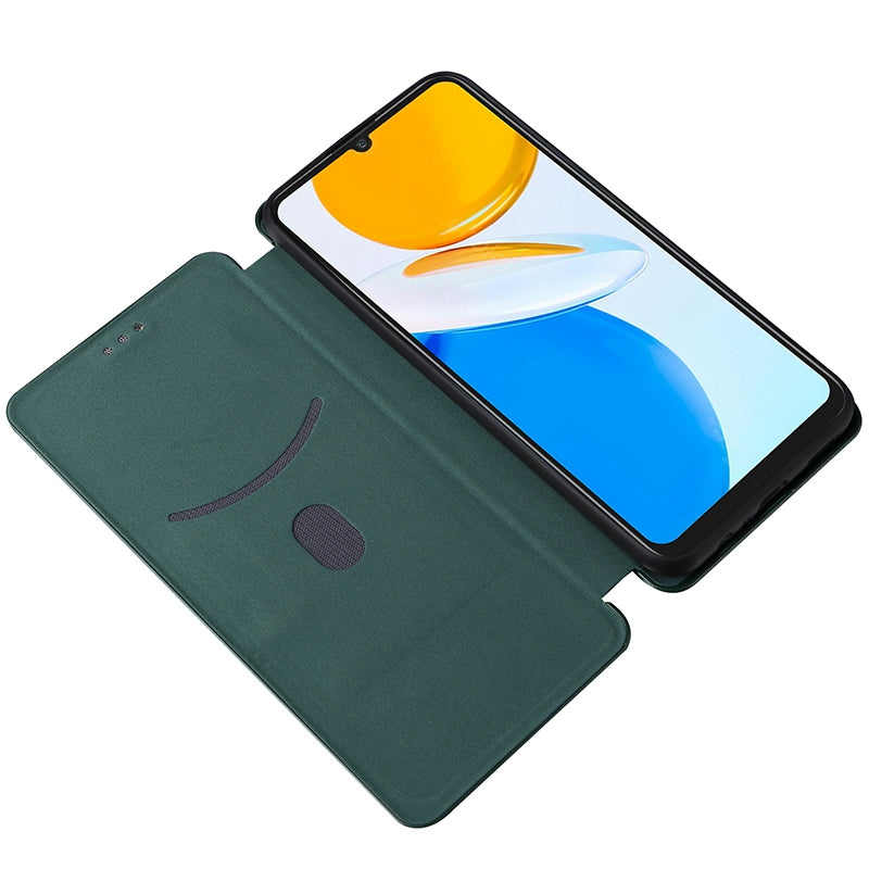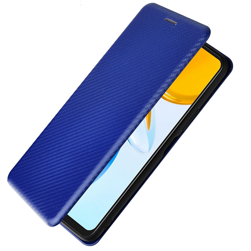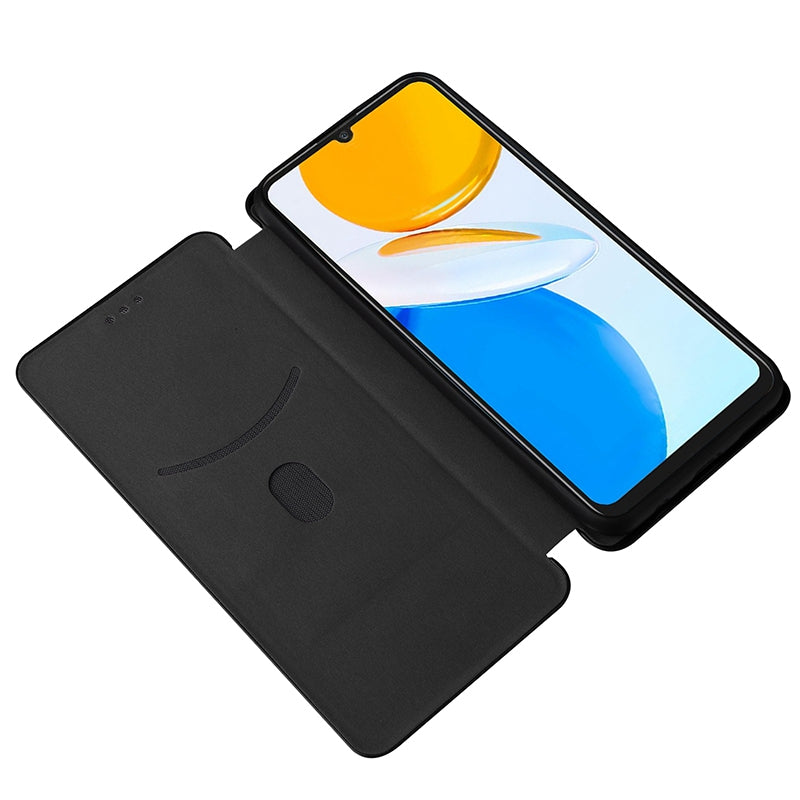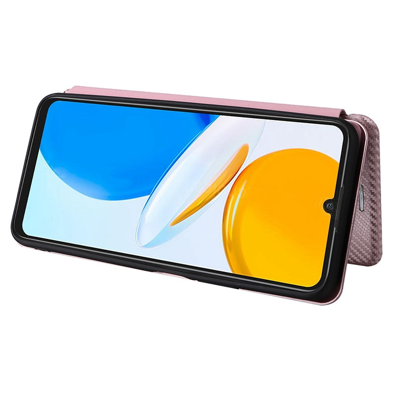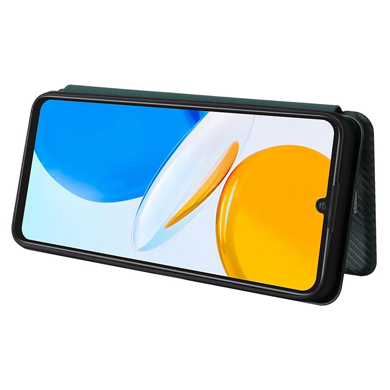 For Honor X7 Carbon Fiber Texture Folio Flip Anti-scratch PU Leather Case Magnetic Auto-absorbed Stand Phone Cover