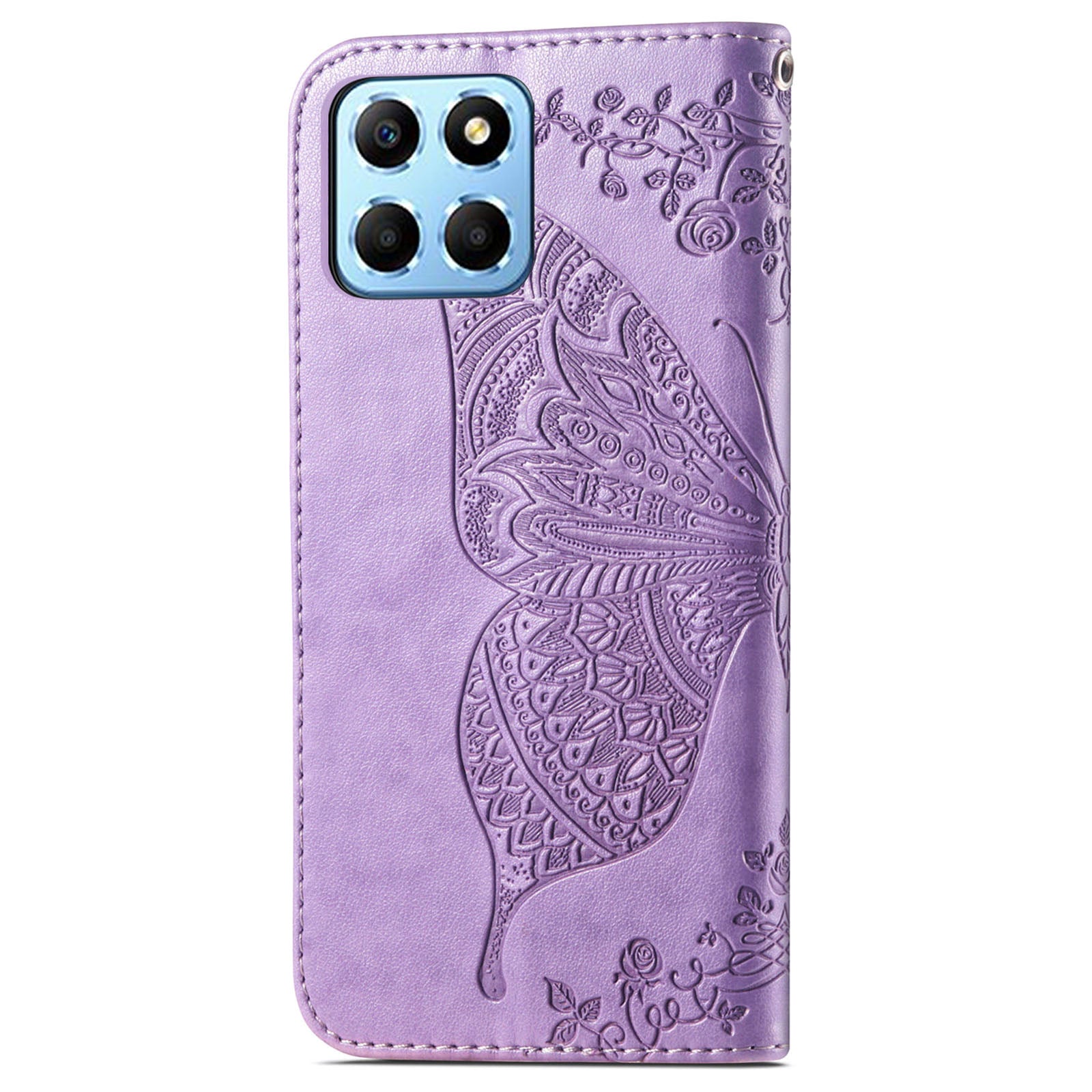 For Honor X8 5G PU Leather Protective Phone Case Imprinted Butterfly Pattern Shockproof Flip Phone Cover with Stand Wallet