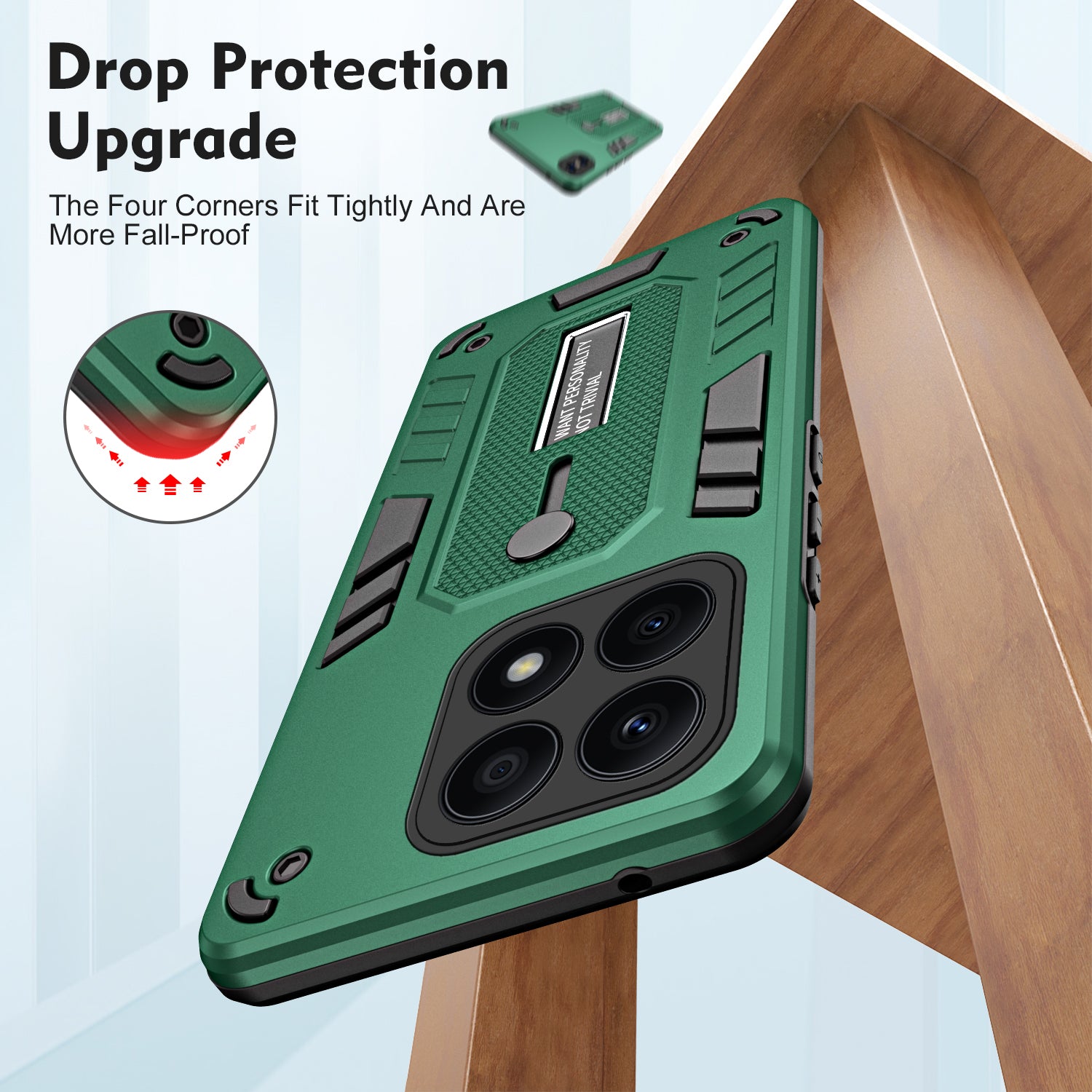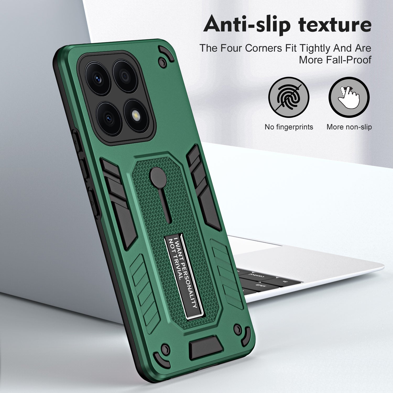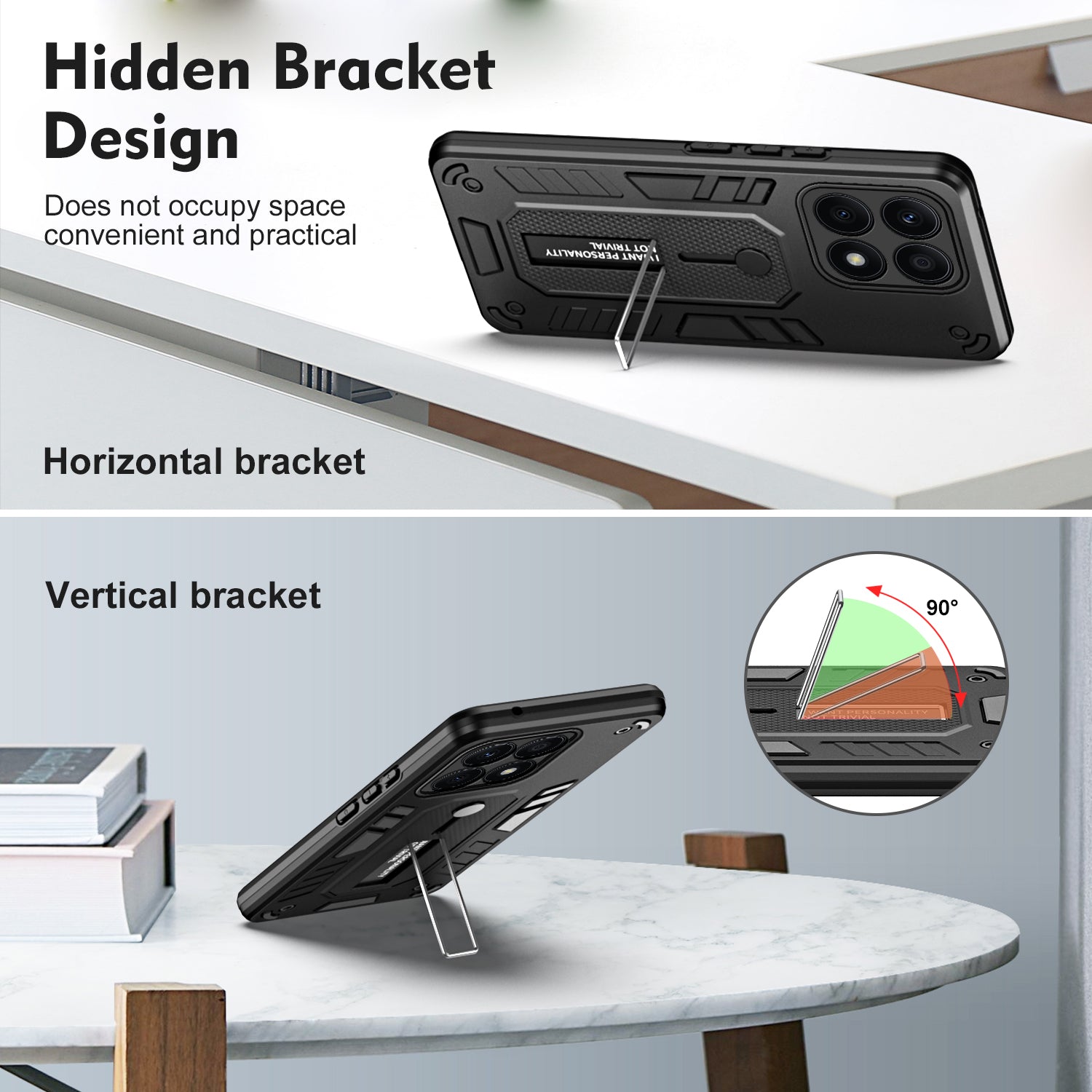 For Honor X8a 4G Hidden Kickstand Phone Case TPU+PC Back Cover with Silicone Ring Strap