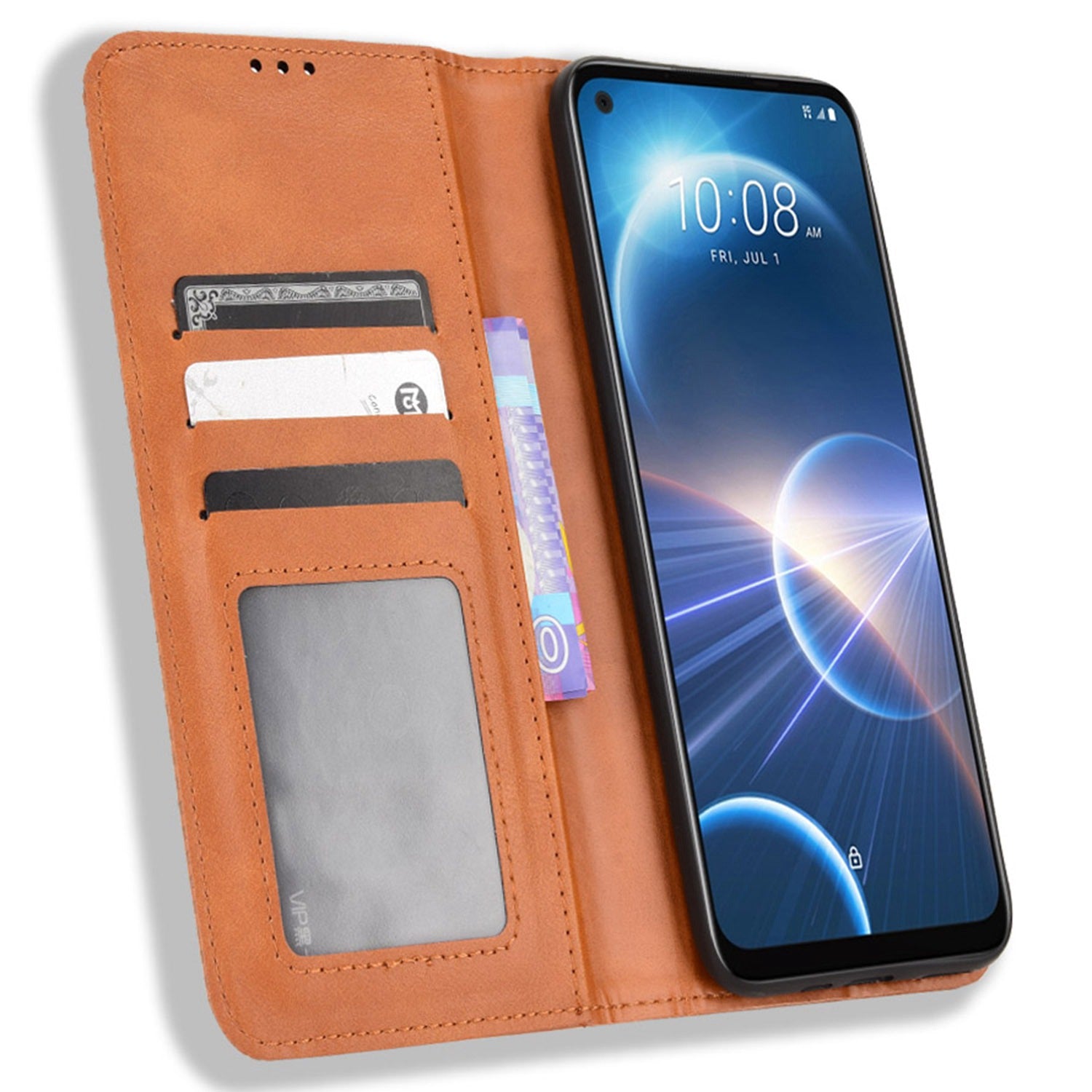 For HTC Desire 22 Pro 5G Auto Closing Magnetic Retro PU Leather Wallet Design Case Stand Function Phone Shell Cover